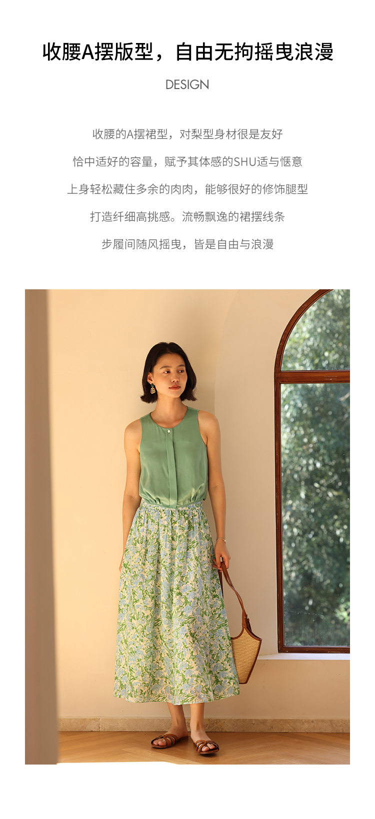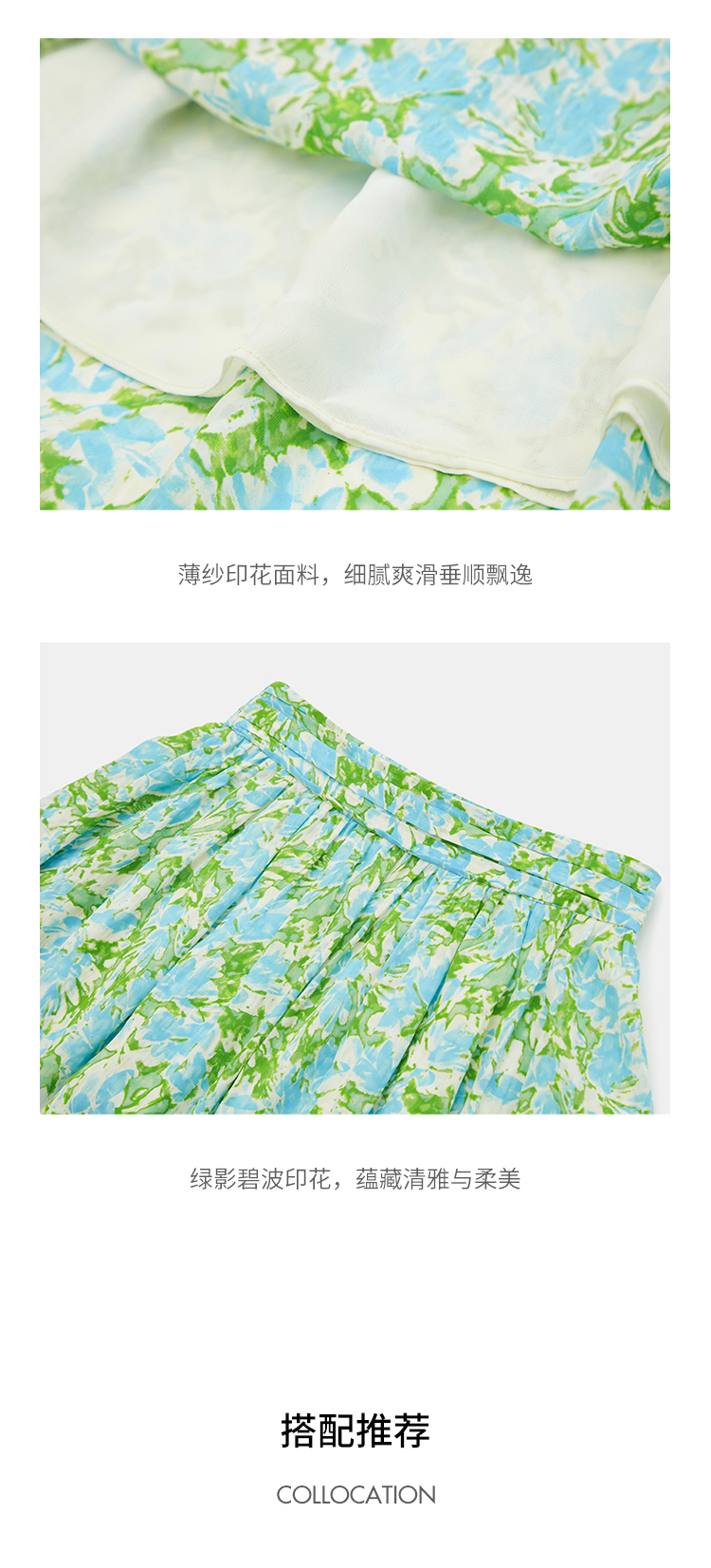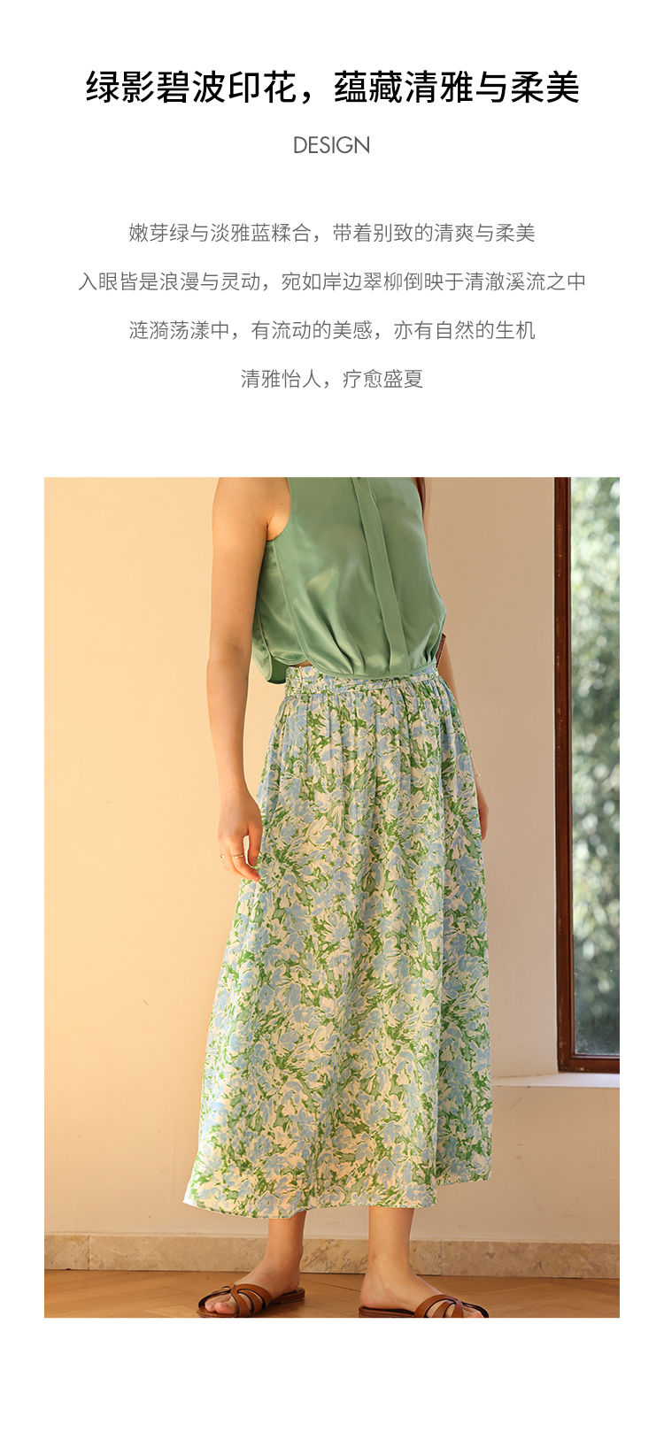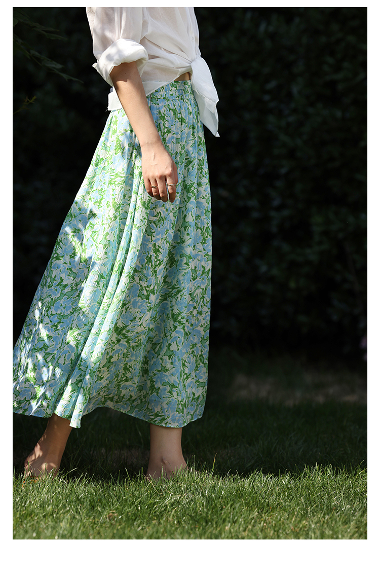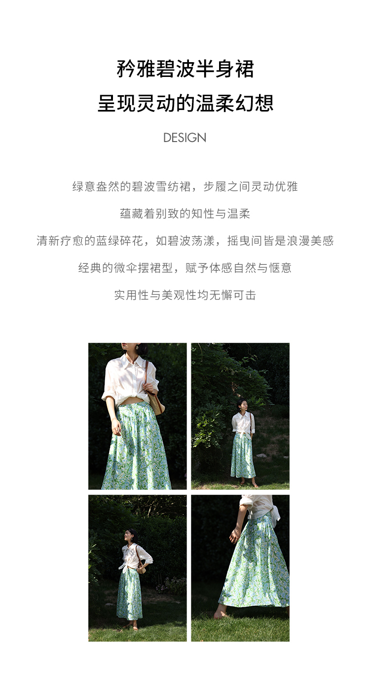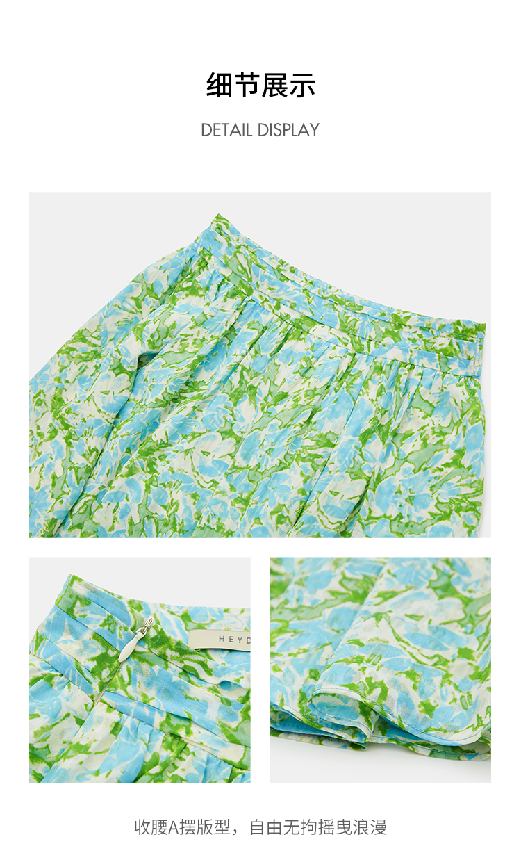 HeyDress法式碎花半身裙女夏季高腰显瘦伞摆半裙绿色印花浪漫裙子