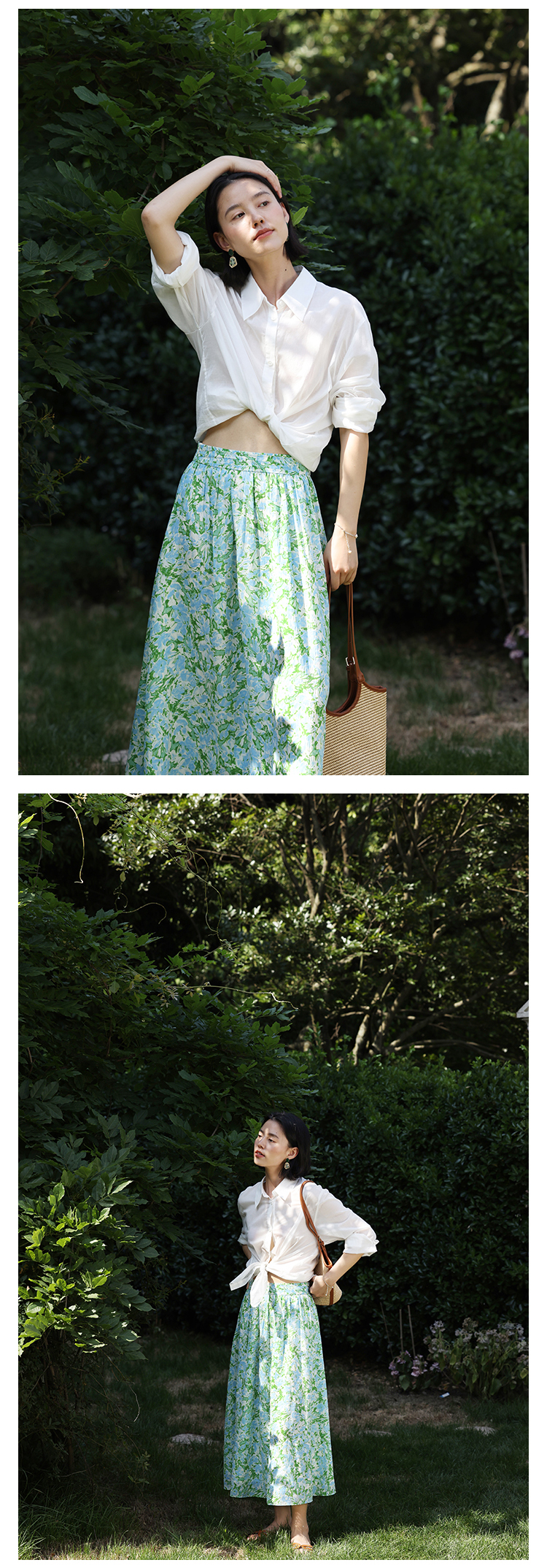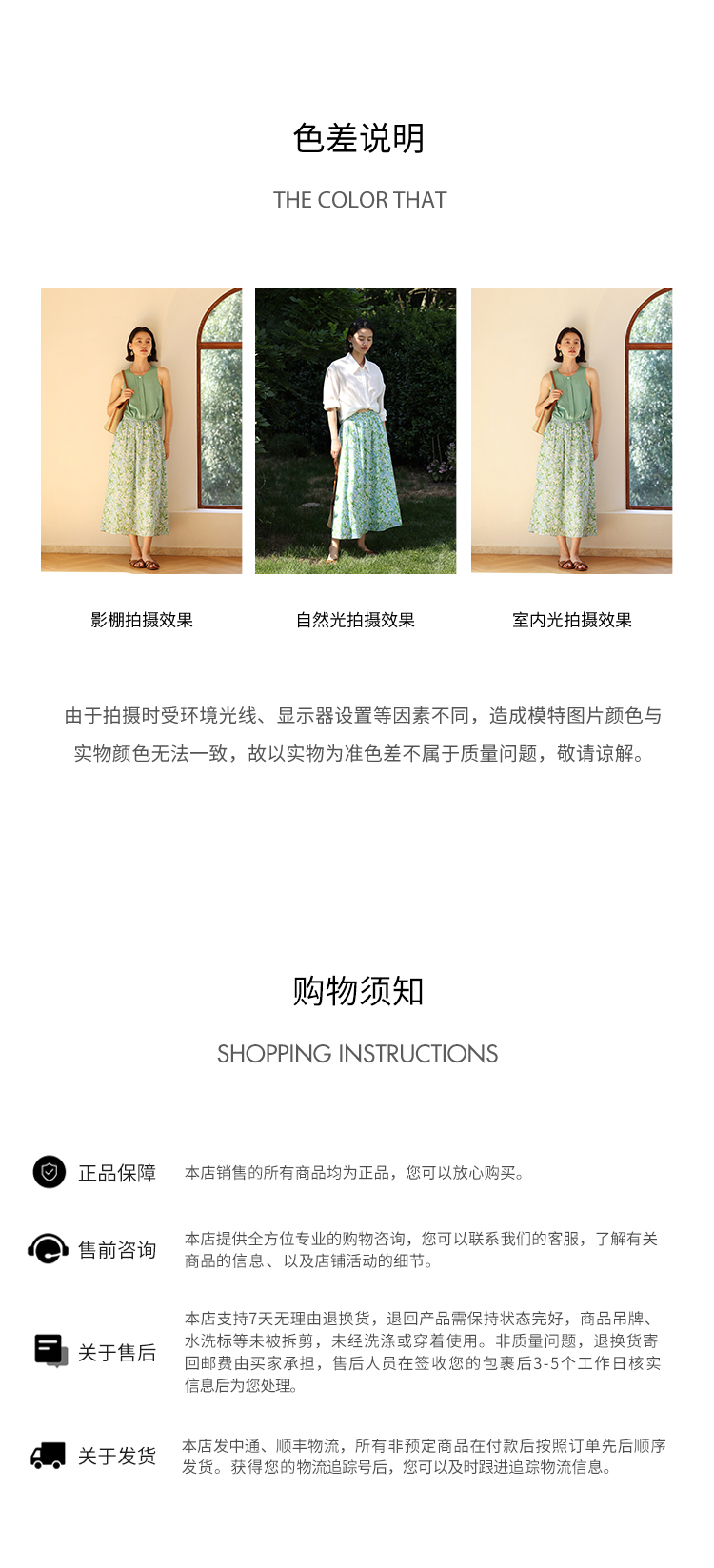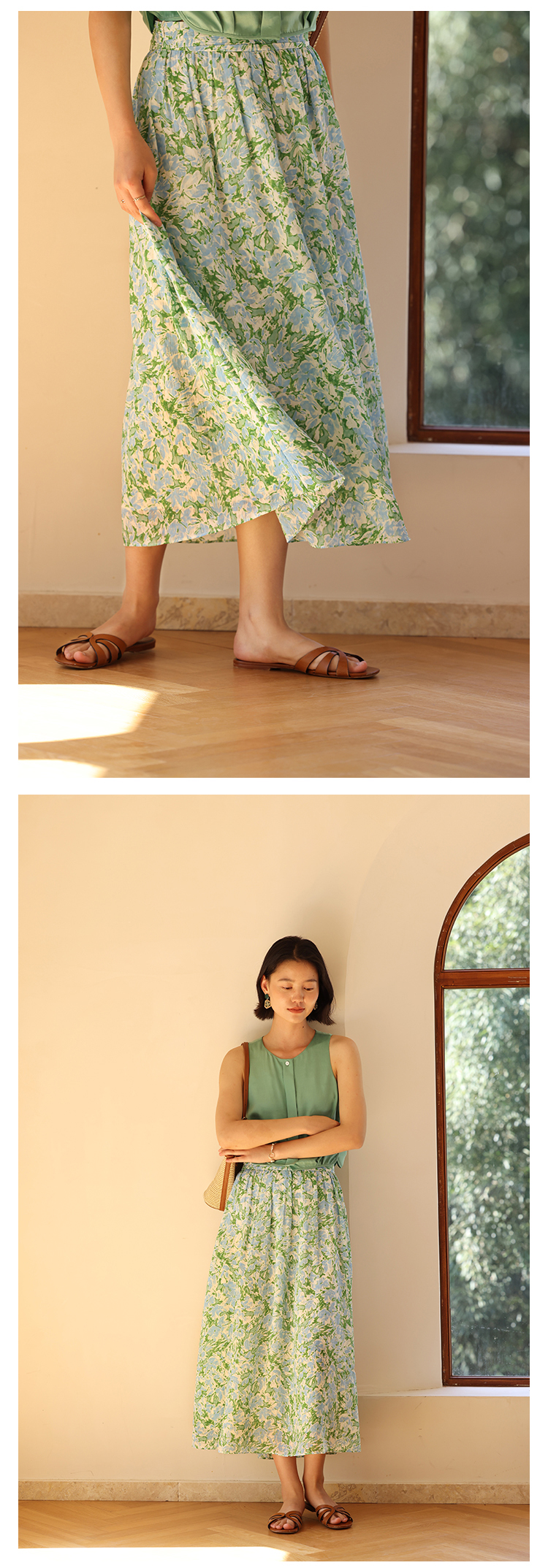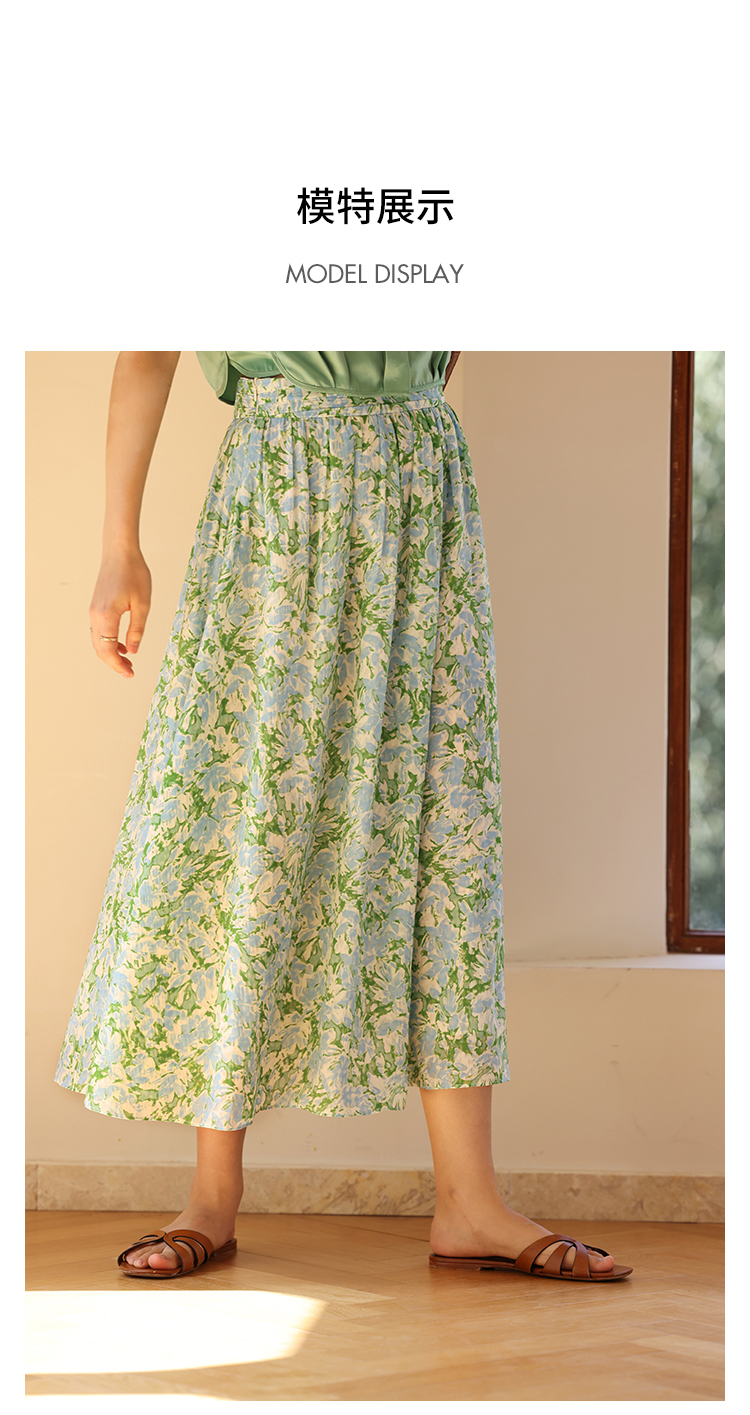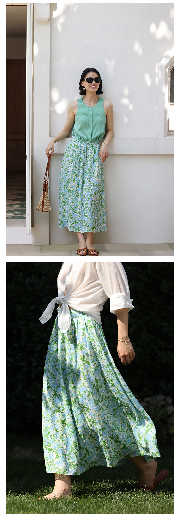 HeyDress法式碎花半身裙女夏季高腰显瘦伞摆半裙绿色印花浪漫裙子