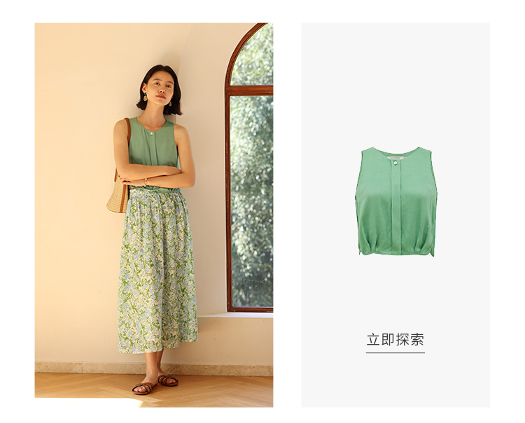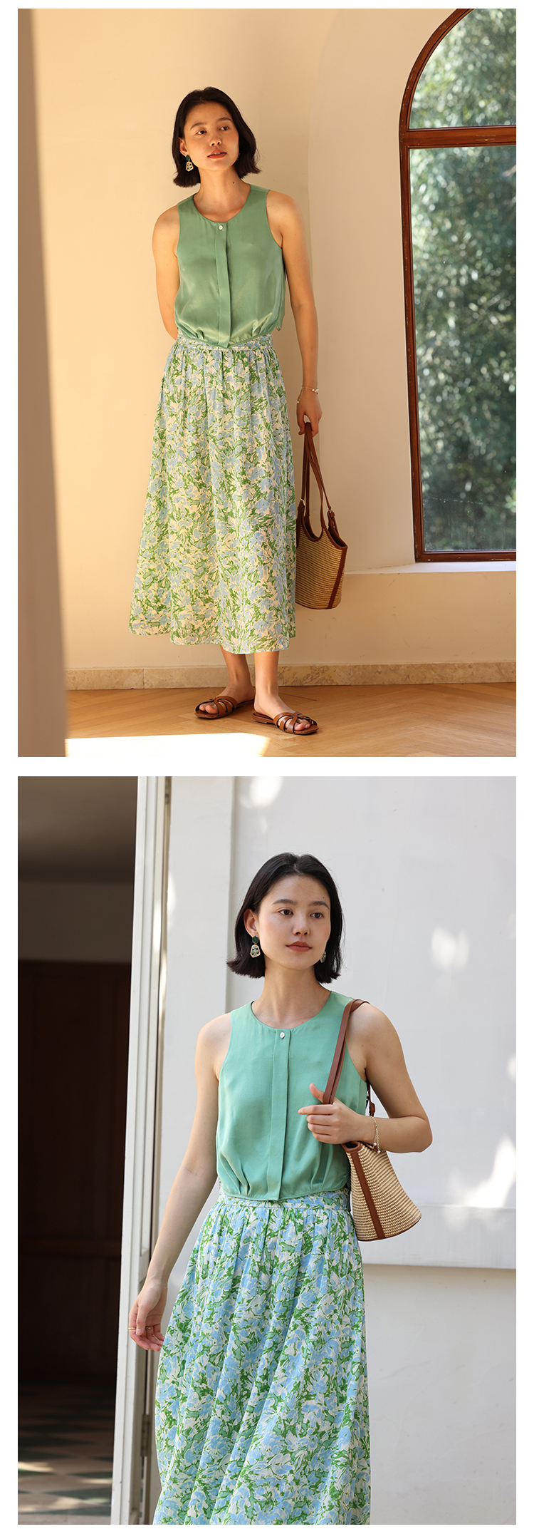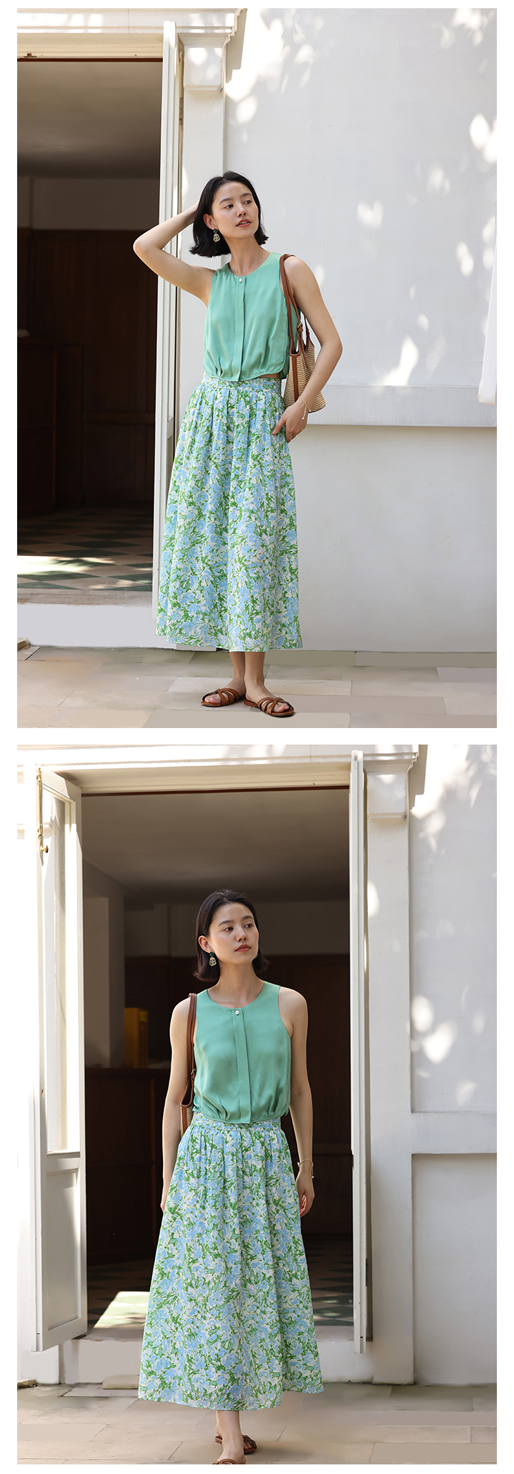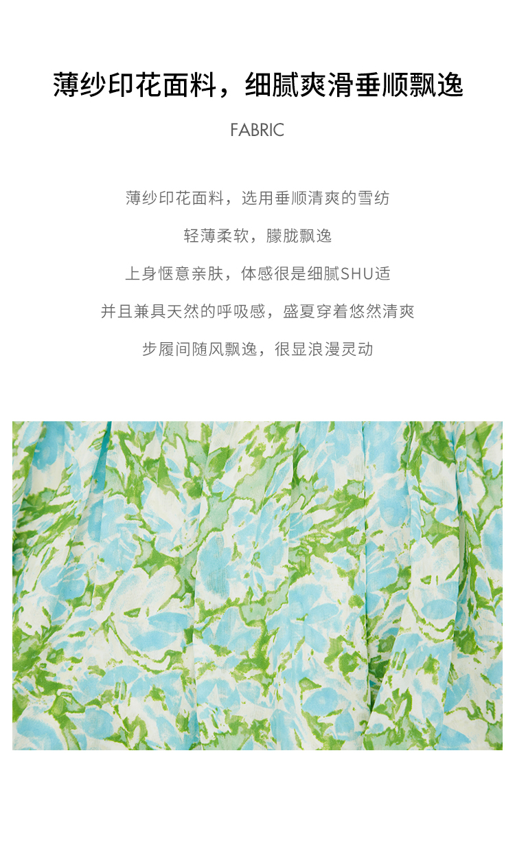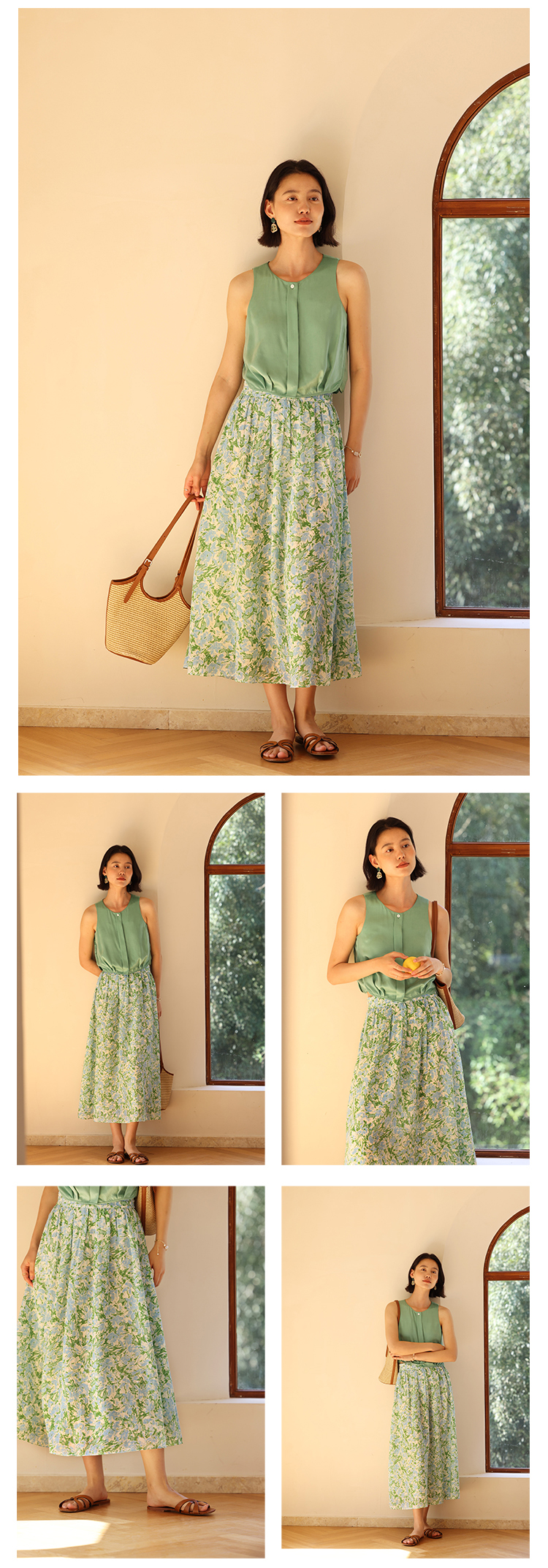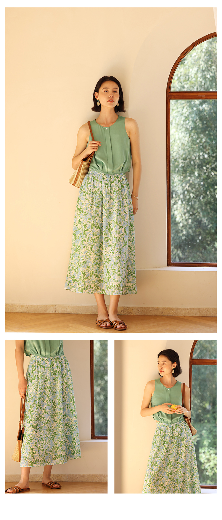 HeyDress法式碎花半身裙女夏季高腰显瘦伞摆半裙绿色印花浪漫裙子