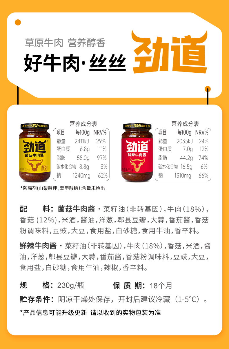 【供】劲道鲜辣牛肉酱230g*2瓶