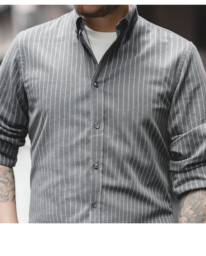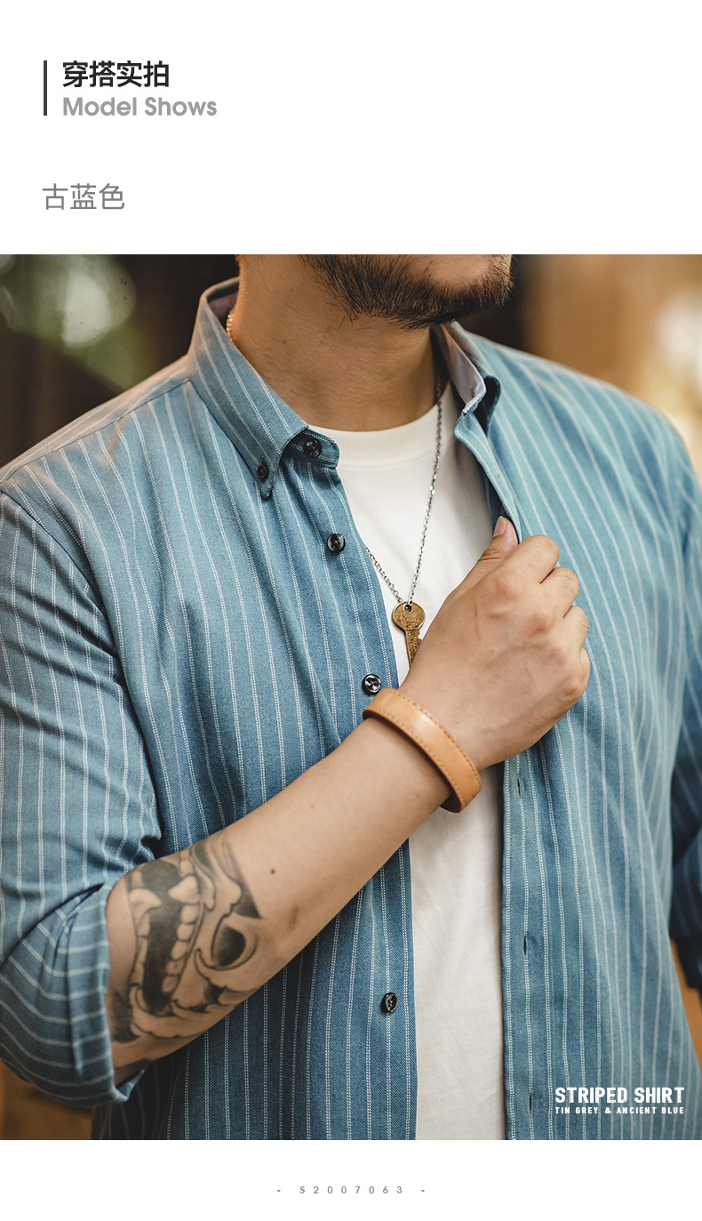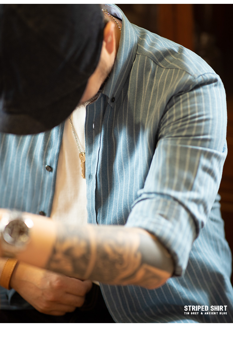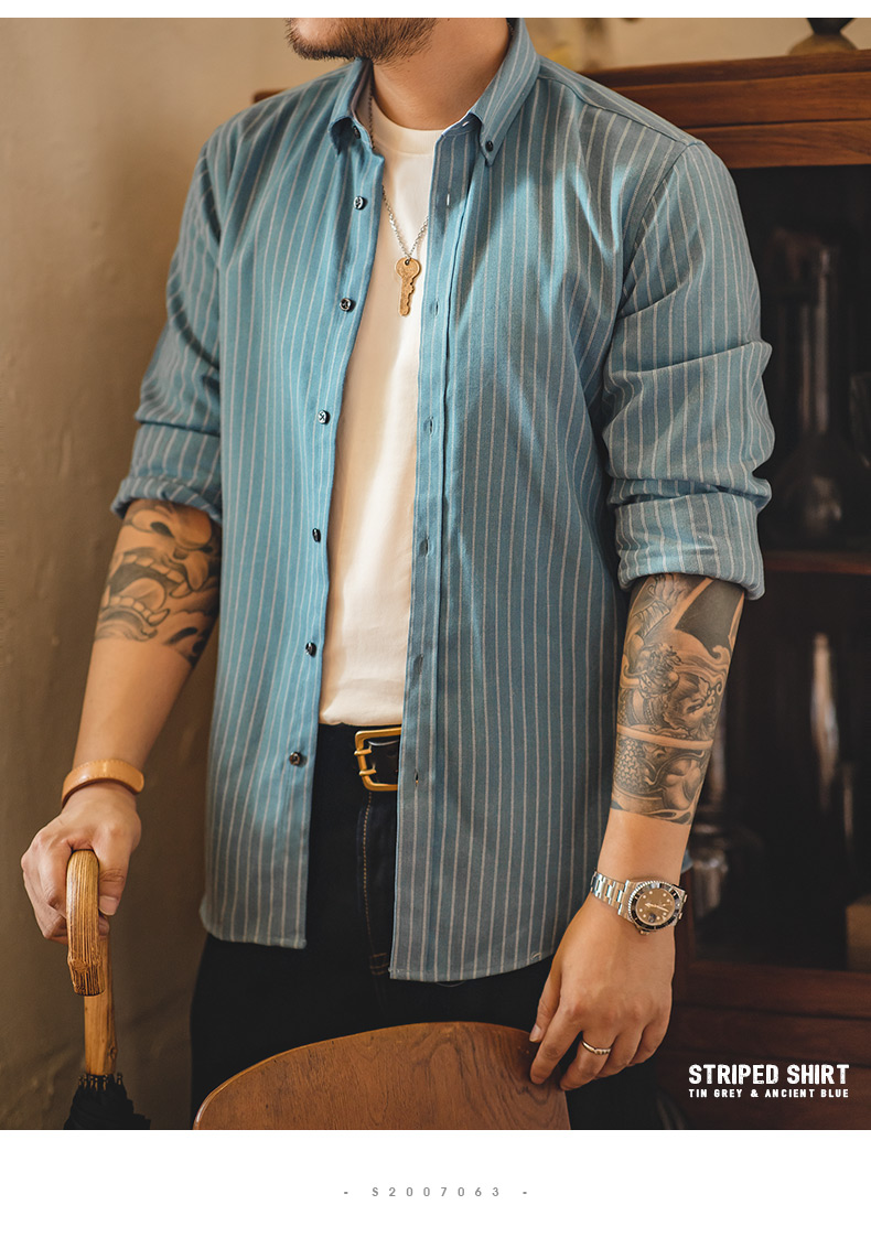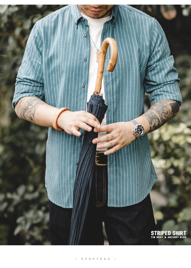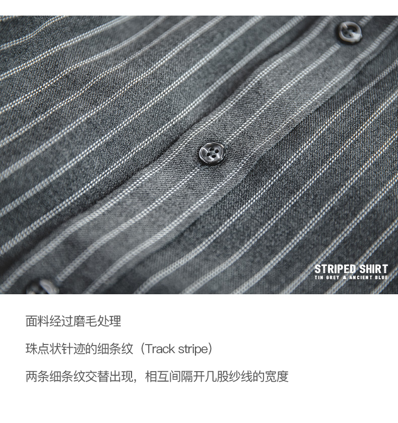 【磨毛双股细条纹】蓝色竖条纹长袖衬衫