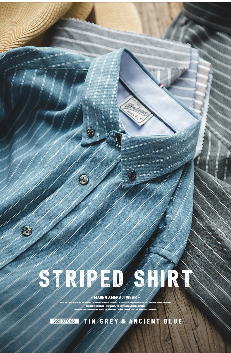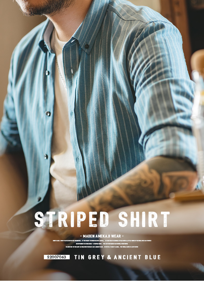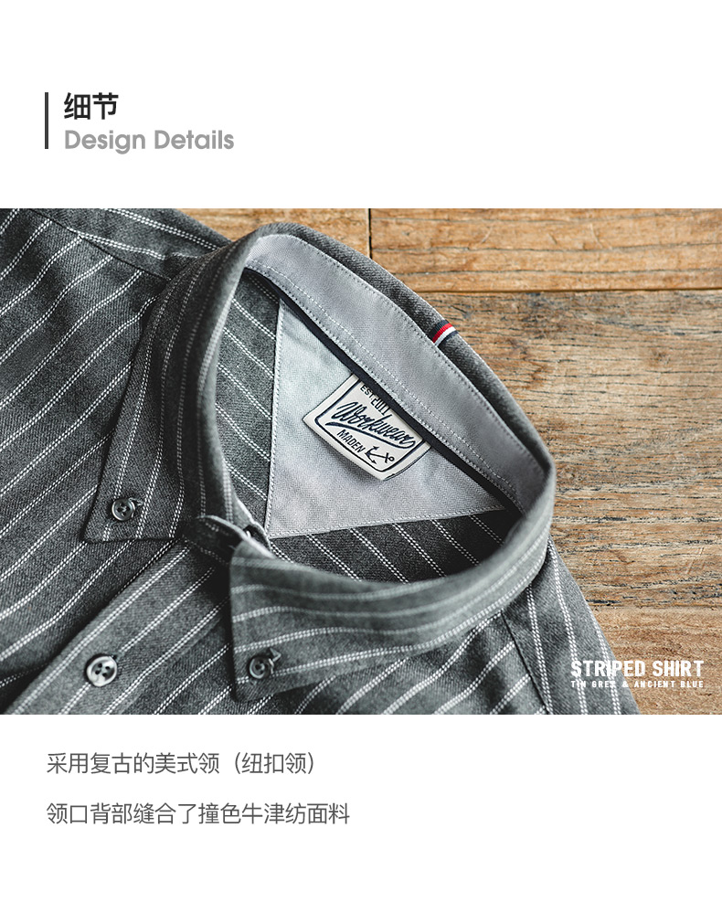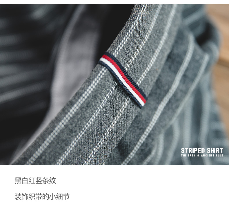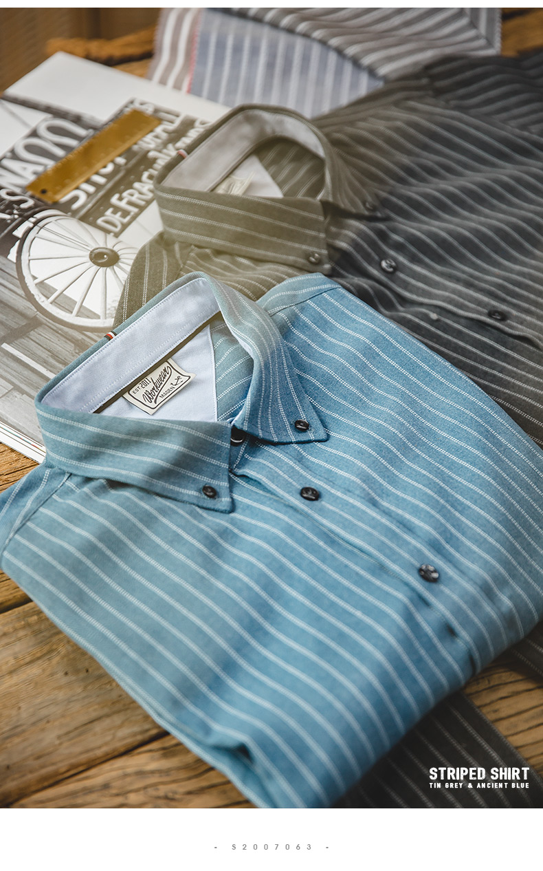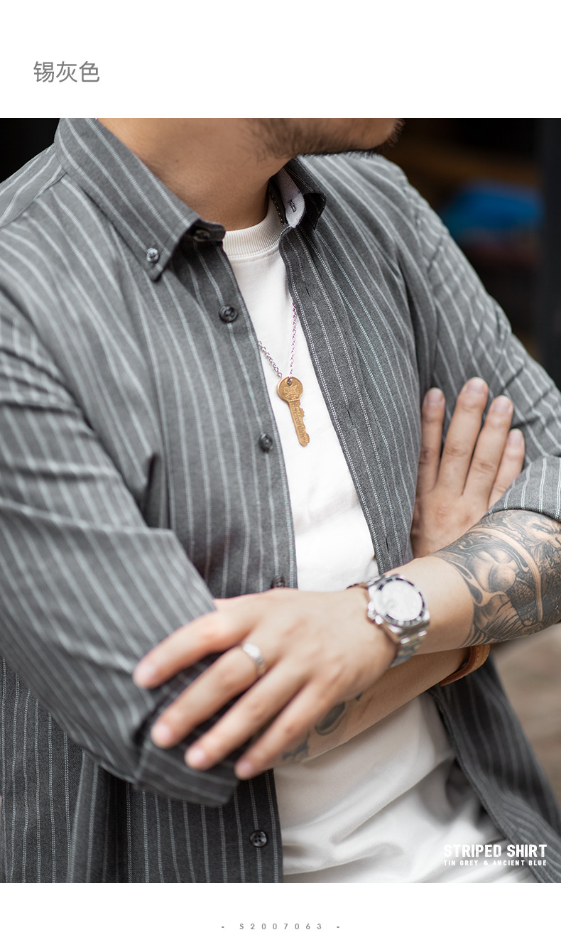 【磨毛双股细条纹】蓝色竖条纹长袖衬衫