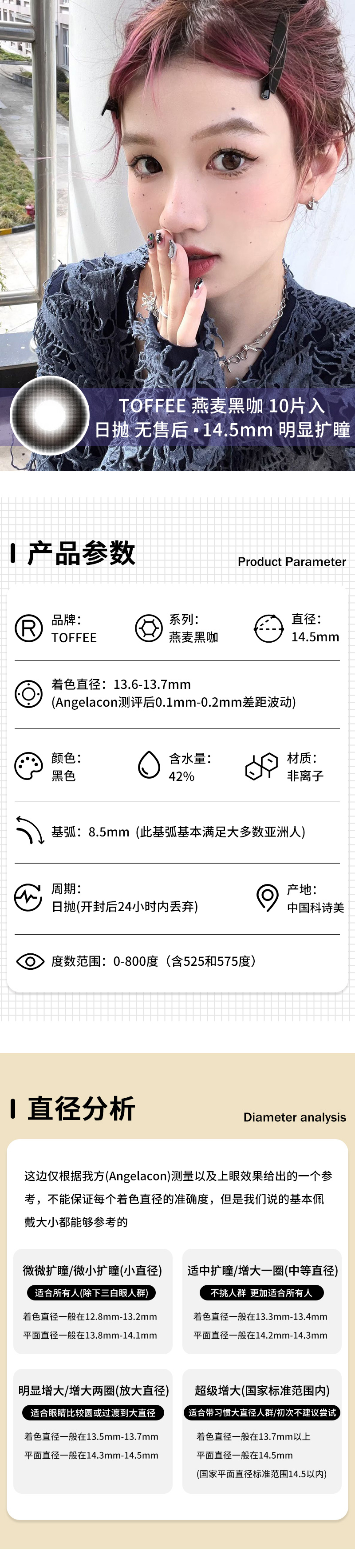TOFFEE / 燕麦黑咖 / 美瞳日抛 / 10片入 / 无售后 / 14.5mm / 明显扩瞳深色自然提神款