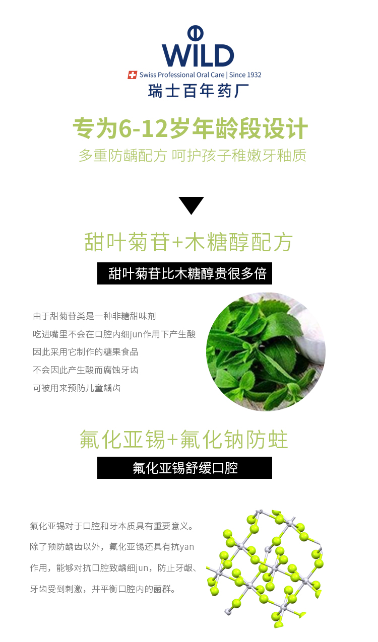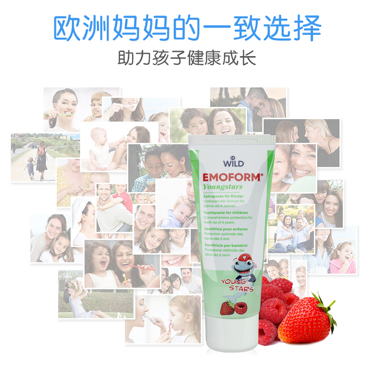 瑞士Dr.Wild怀尔德原装进口 6-12岁含氟量1000ppmF 防蛀儿童牙膏覆盆子口味不辣口