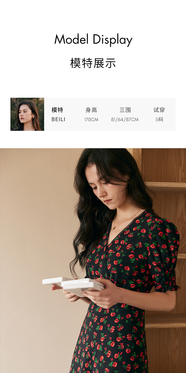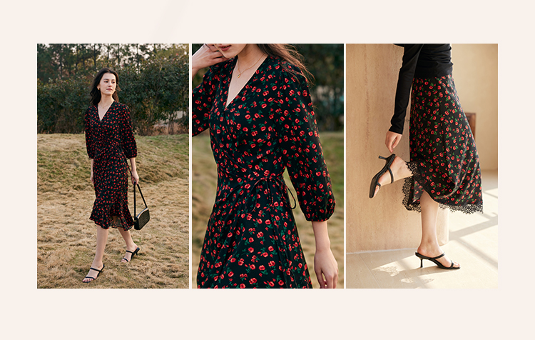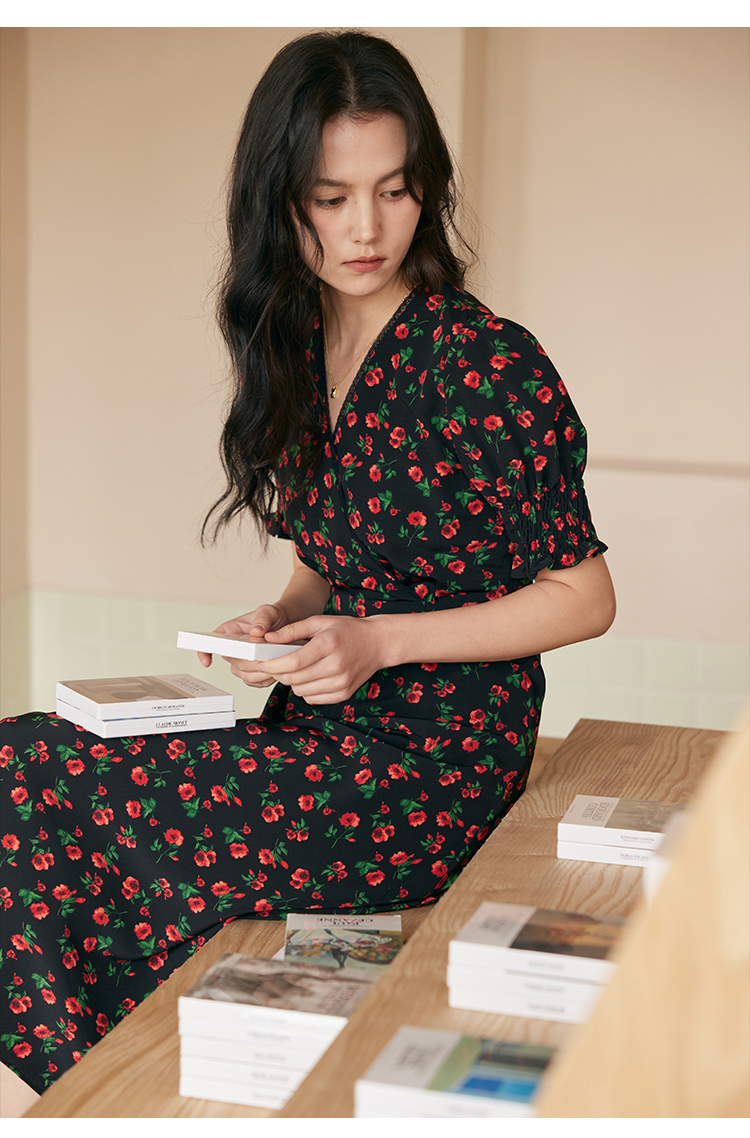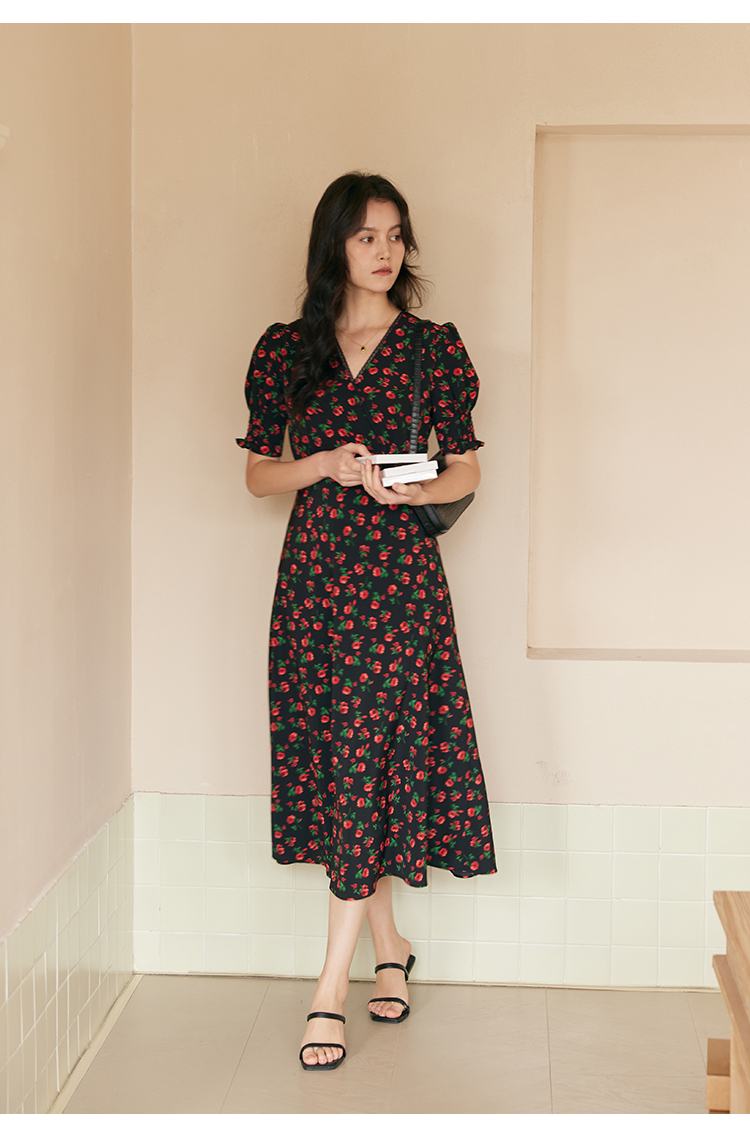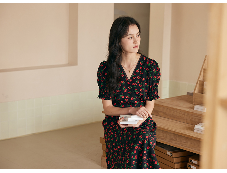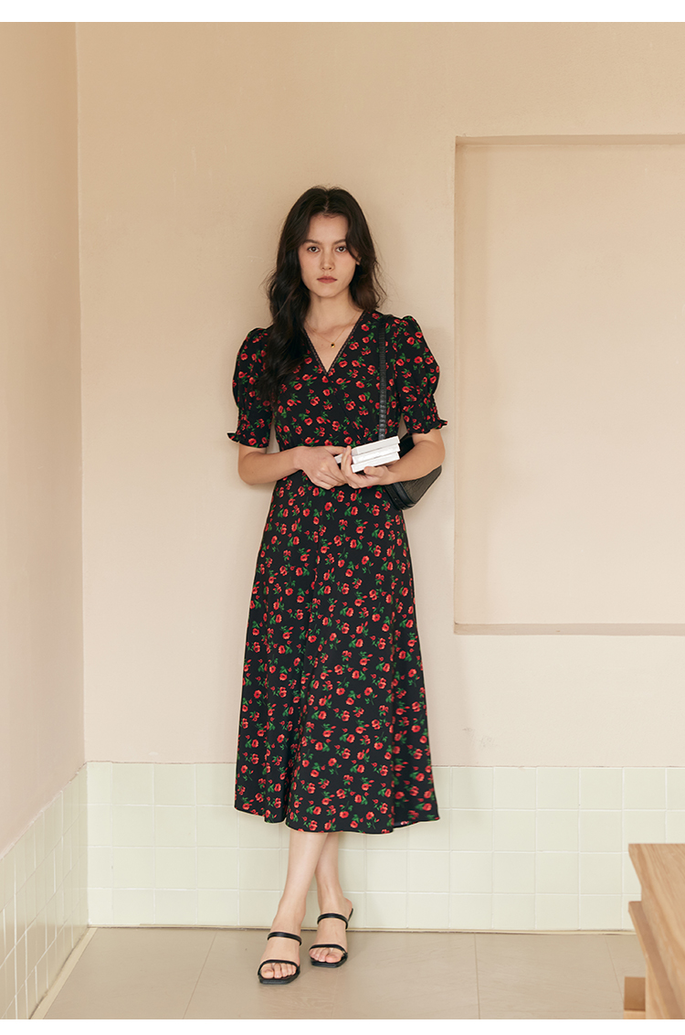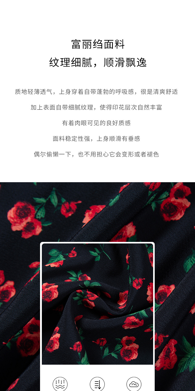 HeyDress原创玫瑰印花连衣裙女夏季法式收腰修身浪漫气质度假裙子