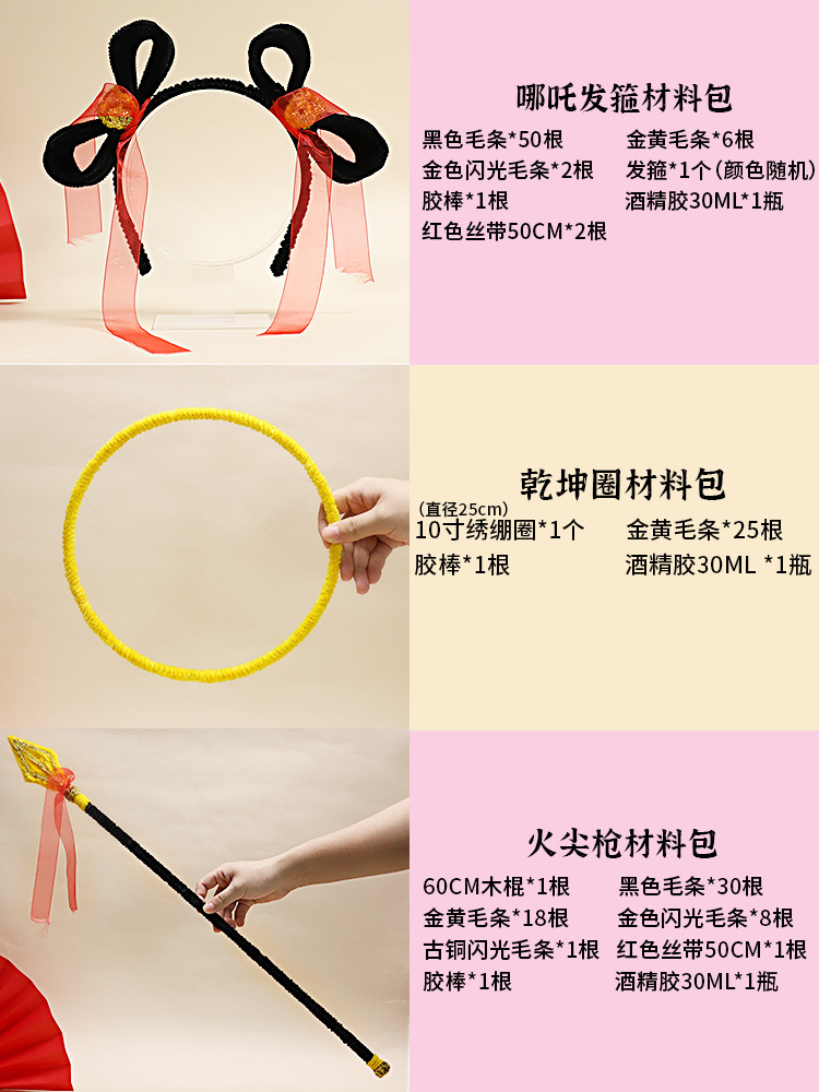 哪吒DIY扭扭棒发箍乾坤圈火尖枪孙悟空手工制作材料包玩具
