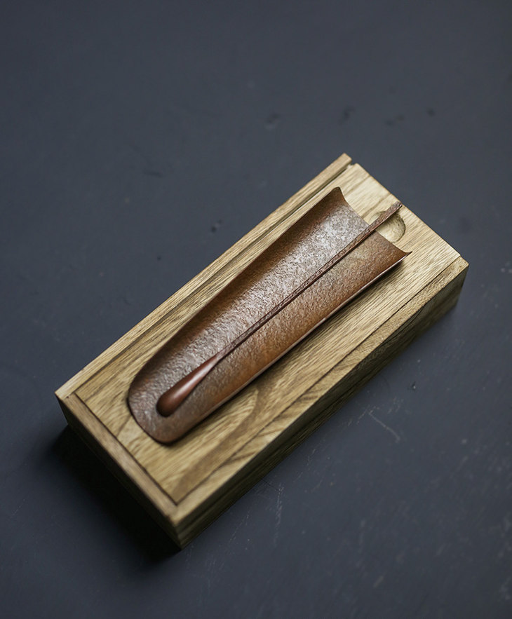 【用途】 茶叶鉴赏、展示、储存、拨茶、摆放。民族传统工艺,自然朴拙。全手工捶打制作而成,红铜材质,简约低调精致,传统自然生活。
