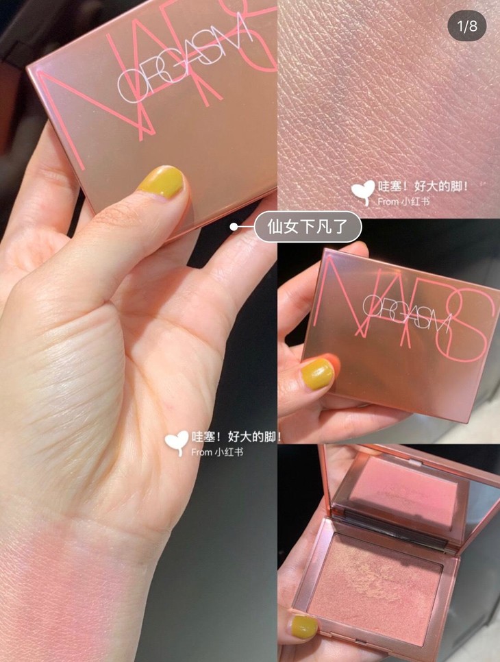 NARS腮紅#ORGASM(高潮)👍NARS家的腮红主打的就是自然健康✅,orgasm高潮是珊瑚色有点偏橘调🍊,带金闪,上妆后就blingbling✨的,简直就是自带高光了🙆,不用担心很夸张,因为NARS腮红打造的就是自然,就像是从皮肤中透出来的一样🙃