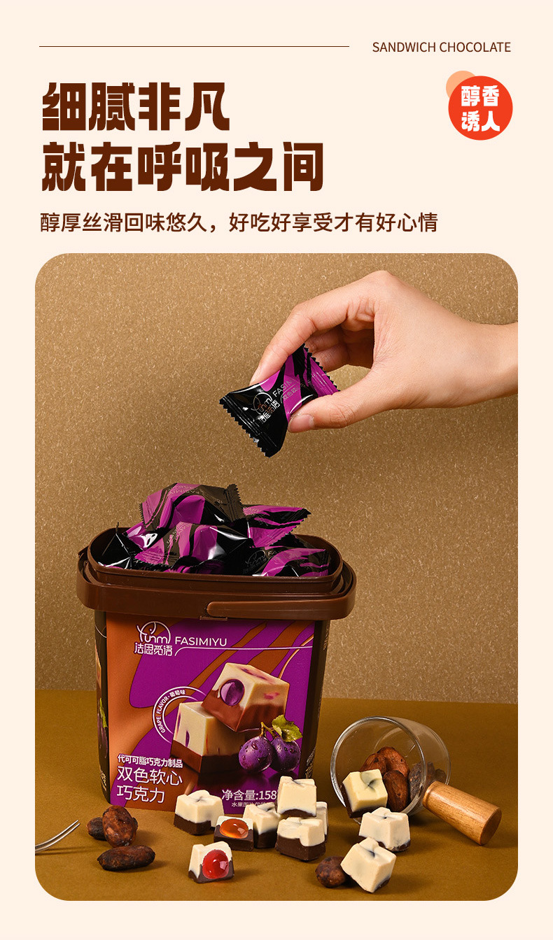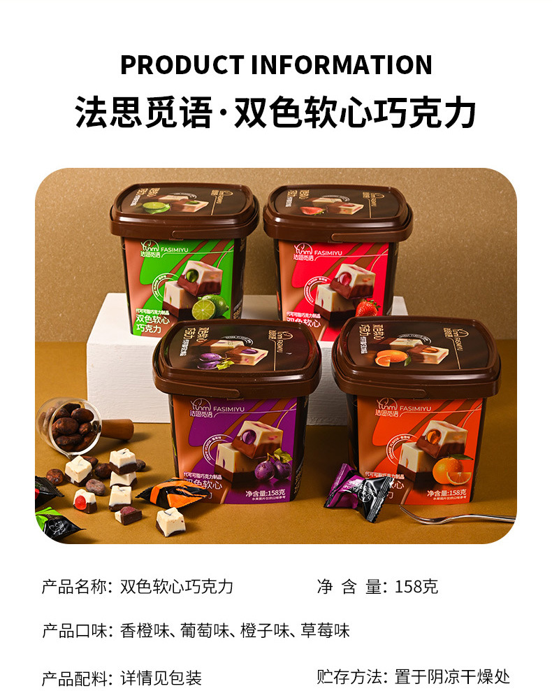 【颗颗浓醇 ,细腻回甘,全家齐分享】双色软心巧克力松露 婚庆结婚喜糖 年货送礼零食桶装158g 独立包装 四种口味 双重口感 纵享丝滑-QQ