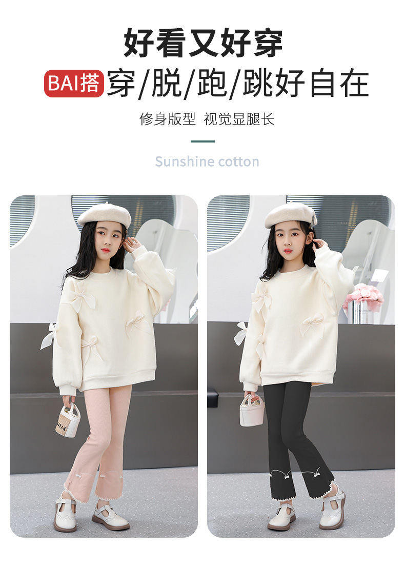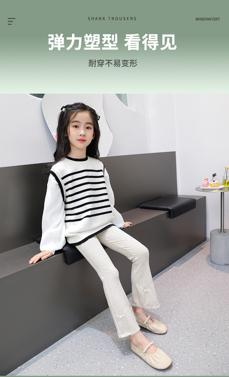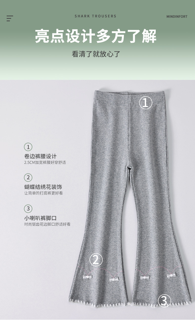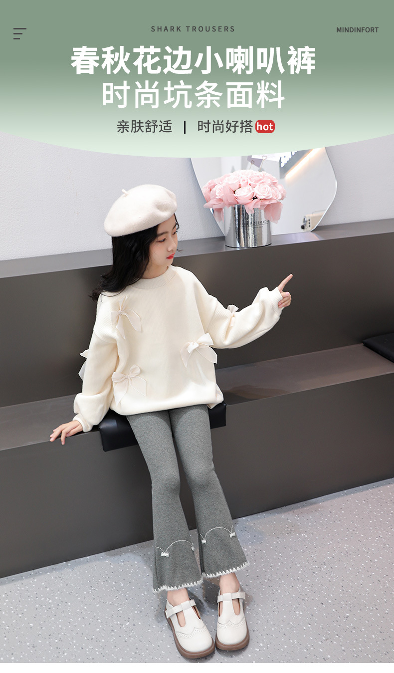 【春秋花边小喇叭裤,时尚坑条面料】女童微喇叭裤春秋款 坑条洋气中大儿童休闲裤子 小女孩薄款外穿长裤-QQ