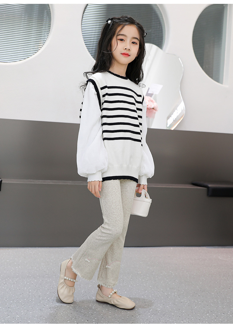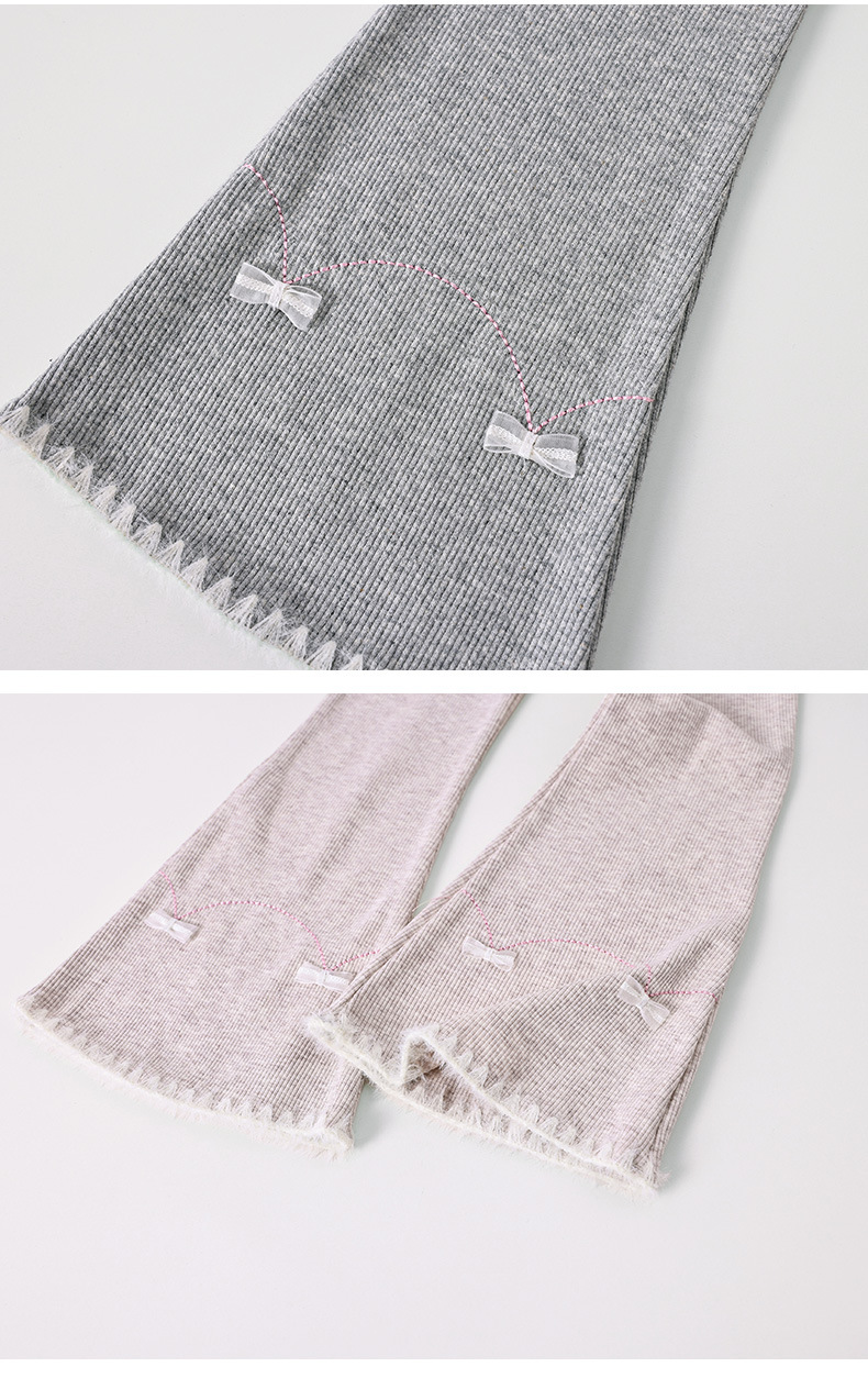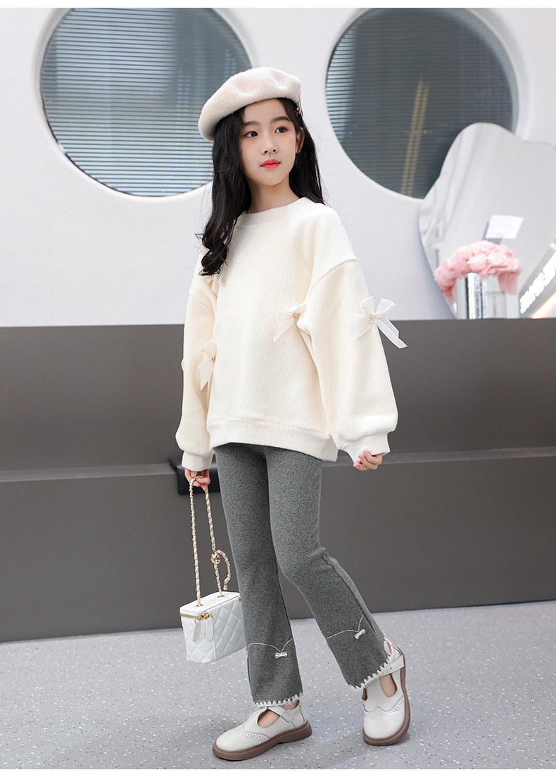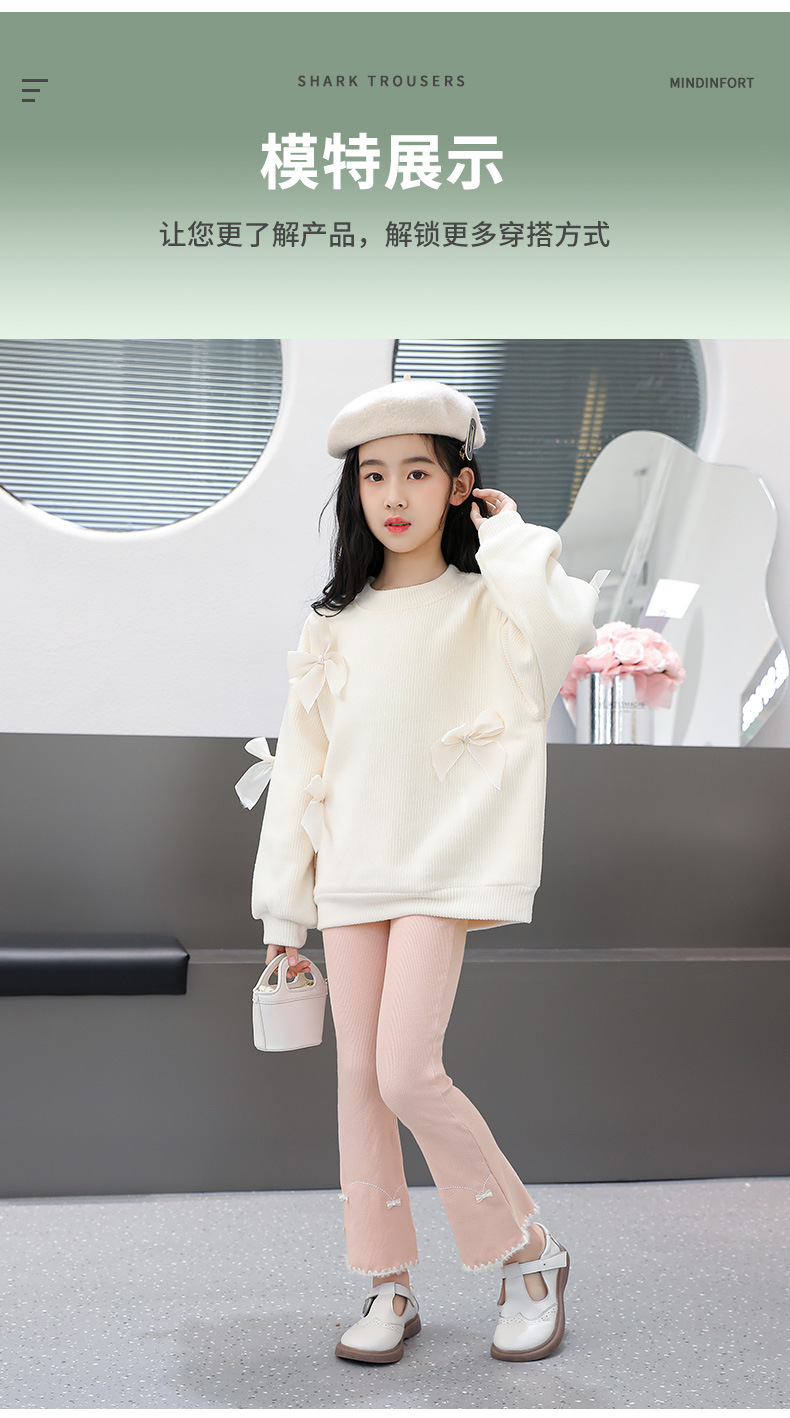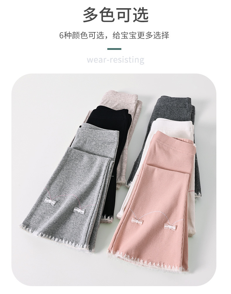 【春秋花边小喇叭裤,时尚坑条面料】女童微喇叭裤春秋款 坑条洋气中大儿童休闲裤子 小女孩薄款外穿长裤-QQ