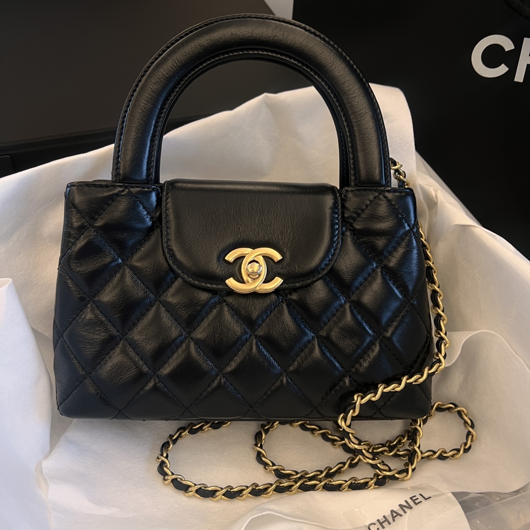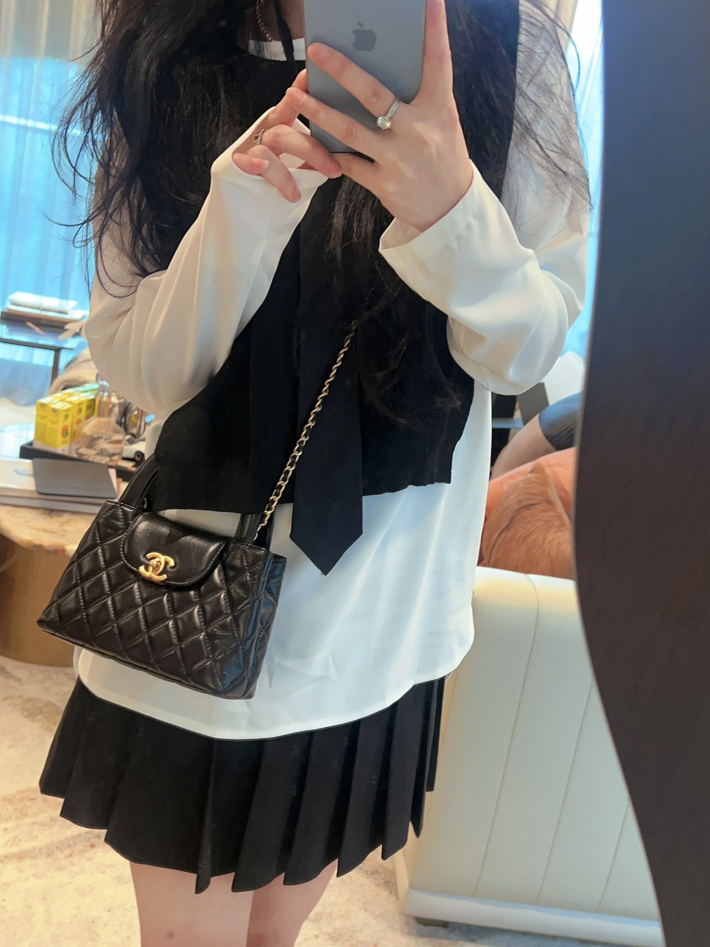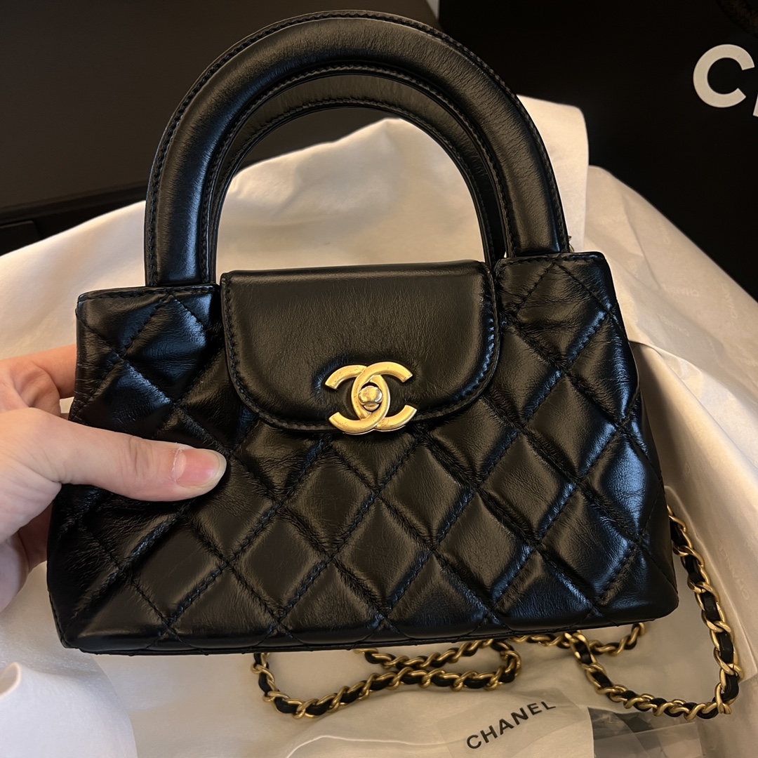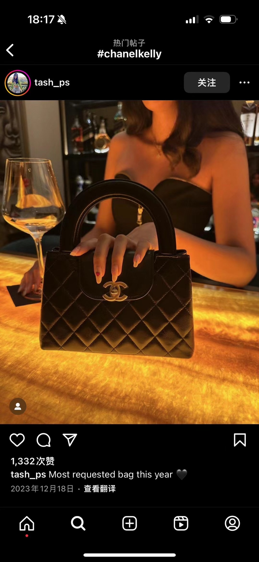 香23k Kelly nano,柜子主打款,一包难求,古金色链条加手柄,黑金配色有经典又复古,菱格的包面设计,油亮面看起来超高级,可手提可斜挎,非常方便 颜值超高容量也可观,19×13×7cm,放的下max