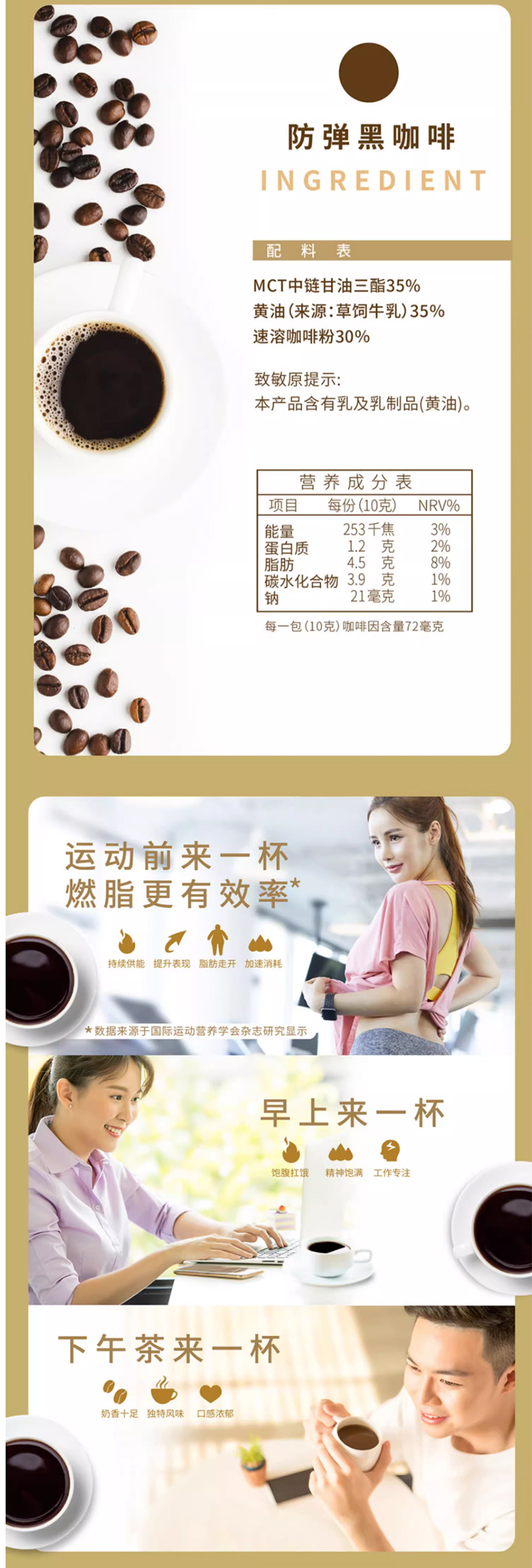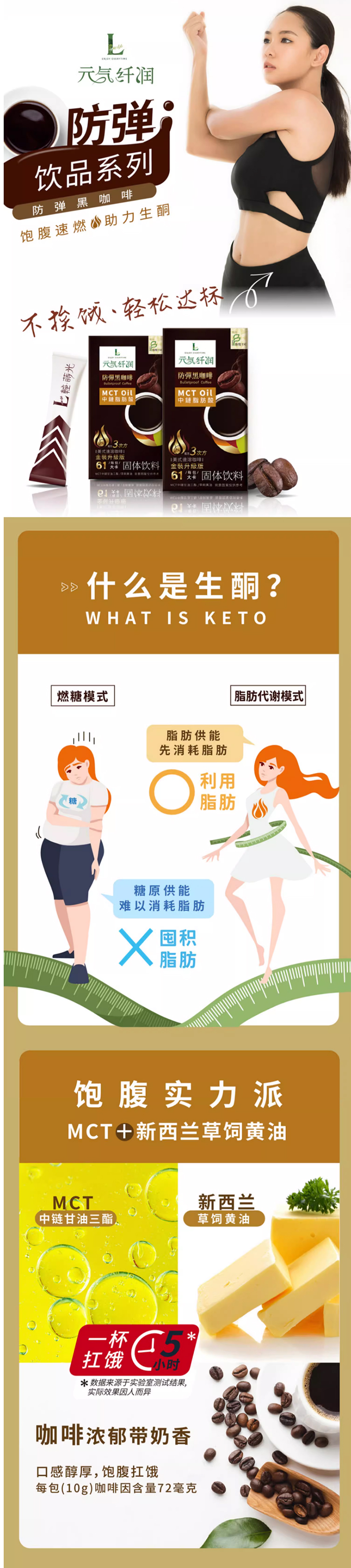 元气纤润进口生酮防弹黑咖啡MCT黄油速溶美式70克/盒(7条)