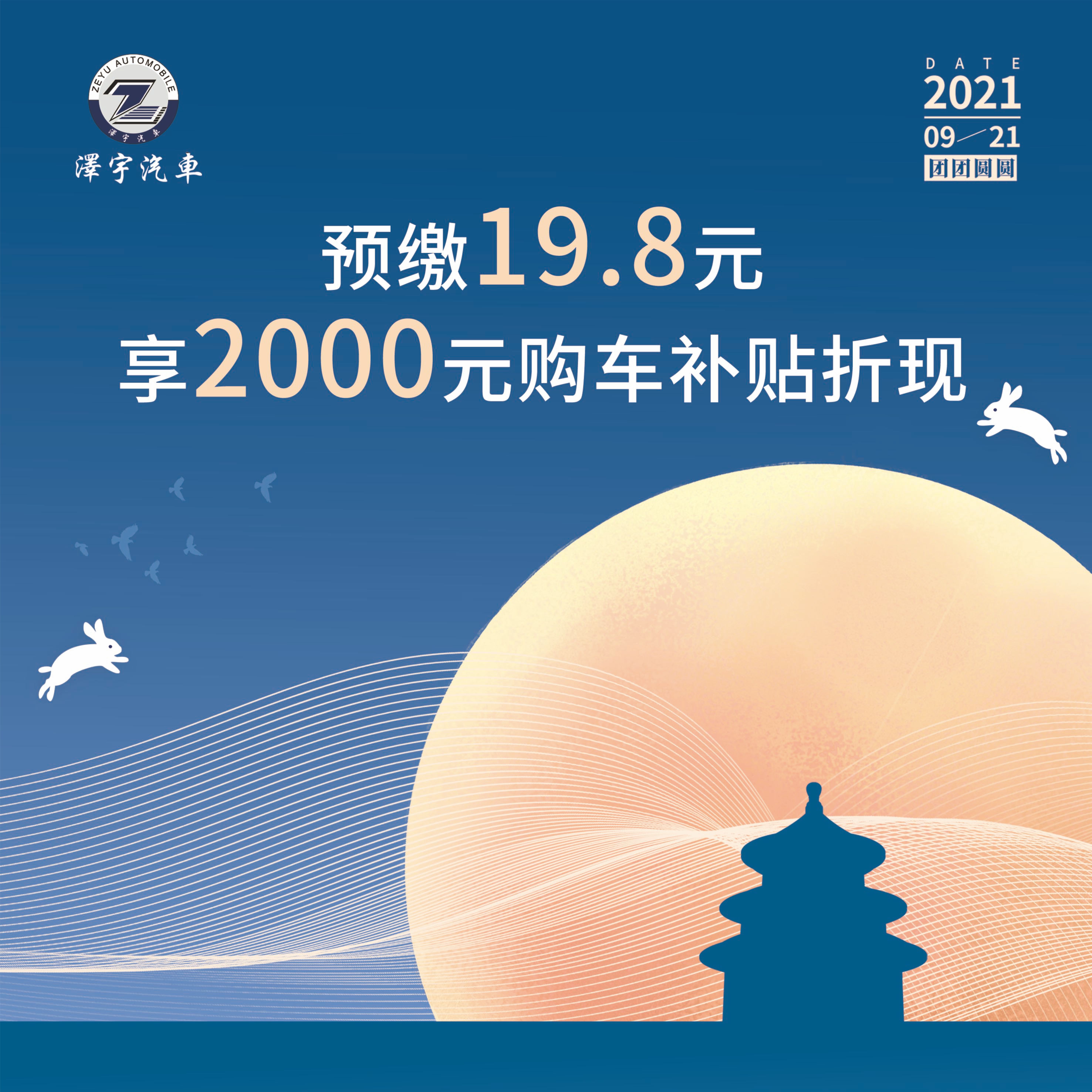 月满中秋,礼献全城 — 购19.8元诚意金抵2000元购车补贴