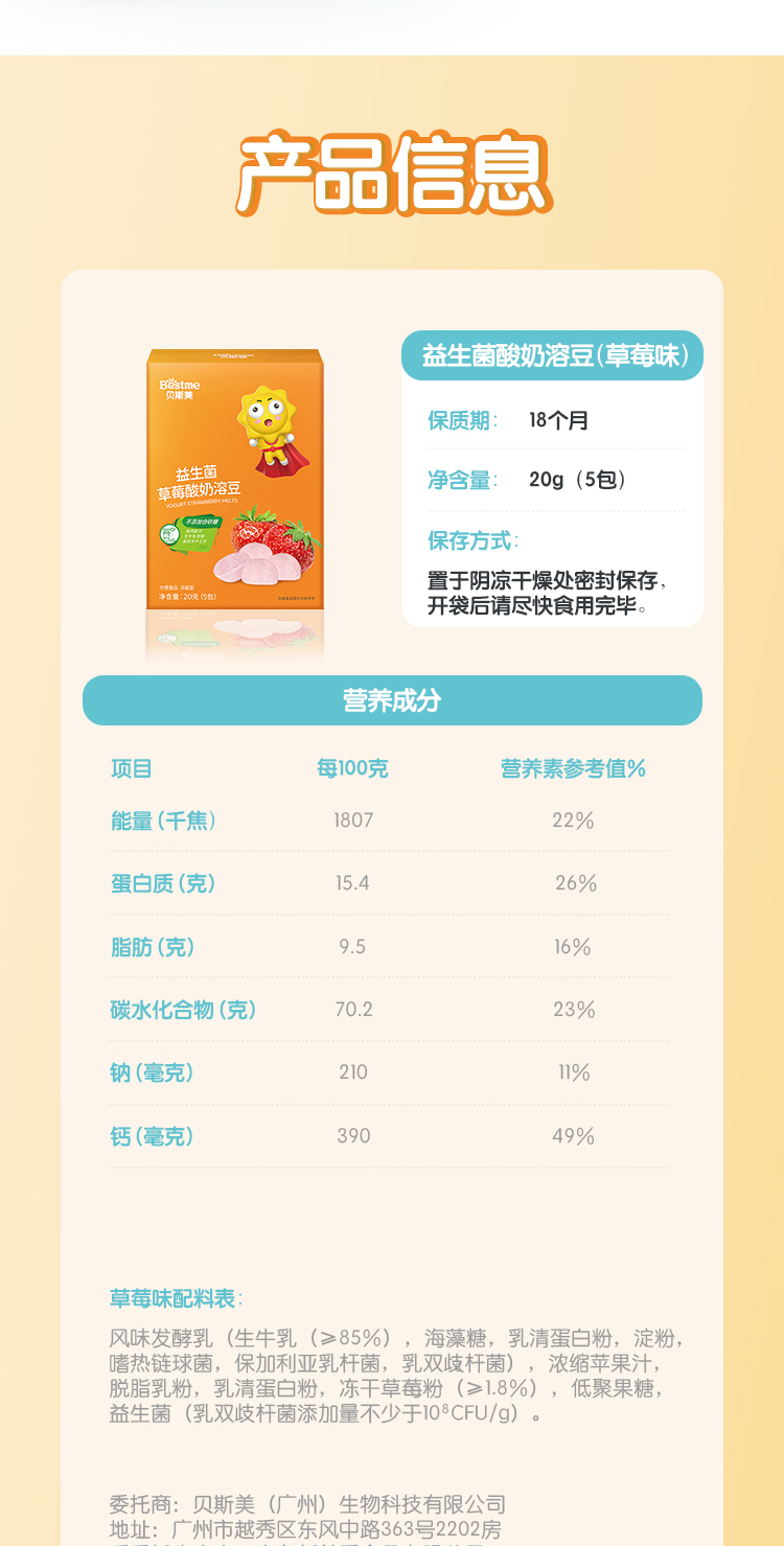 贝斯美益生菌酸奶溶豆20g(草莓味)