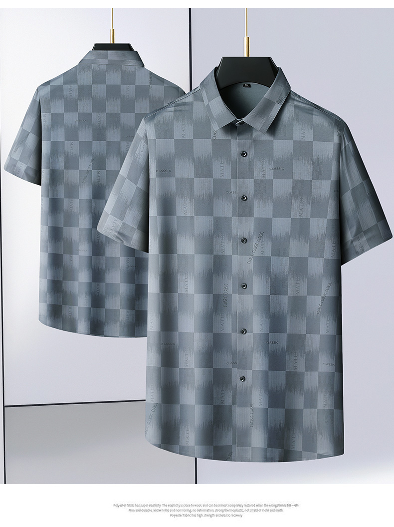 【冰丝高弹】【新款DWP】大依优型大码短袖衬衫加肥加大男士大号弹力透气舒适夏季半袖