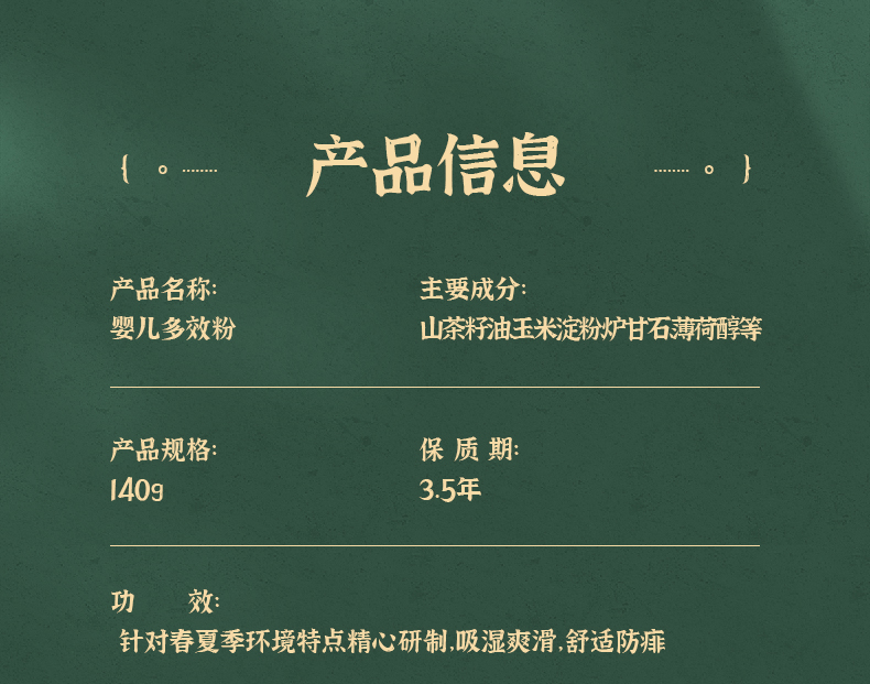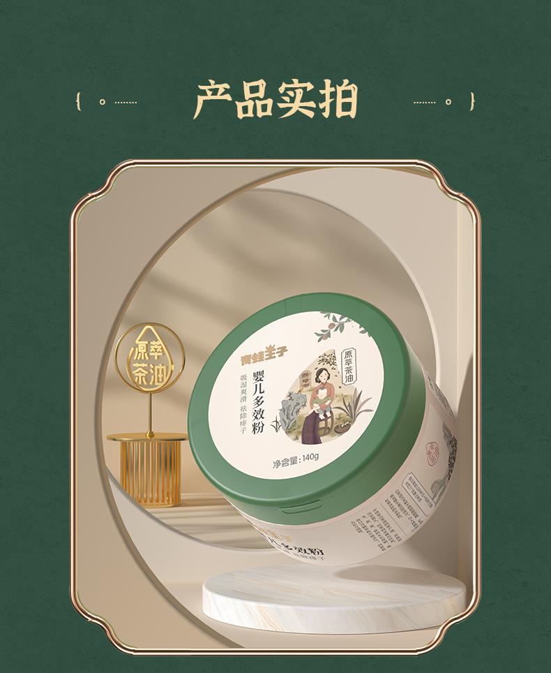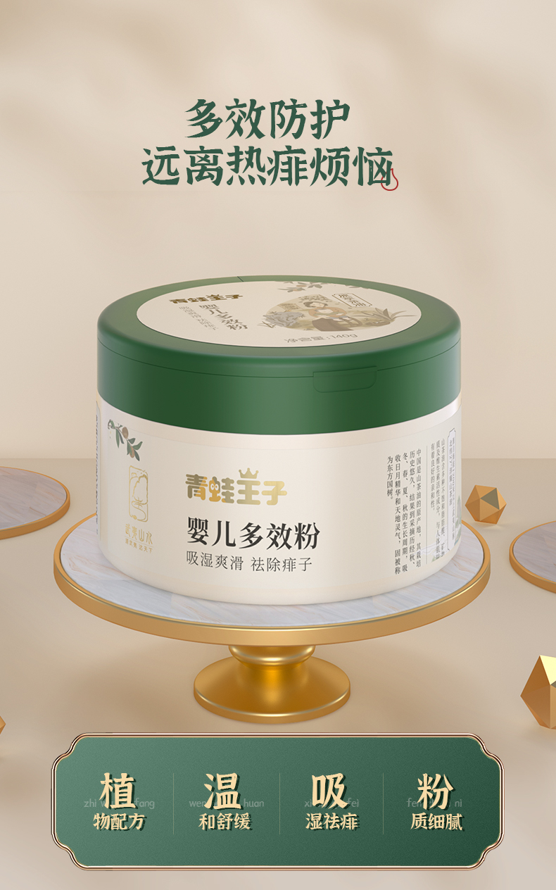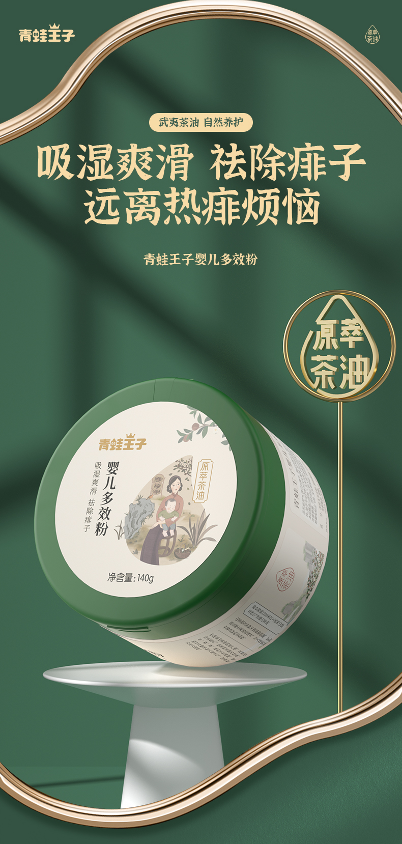 青蛙王子 婴儿山茶油多效粉140g 吸湿爽滑防痱 爽身粉 痱子粉