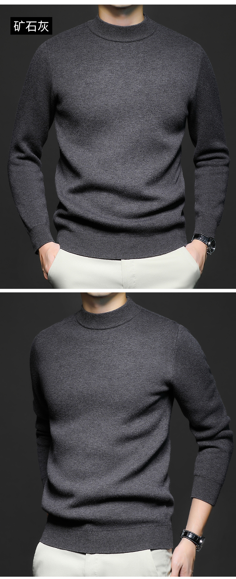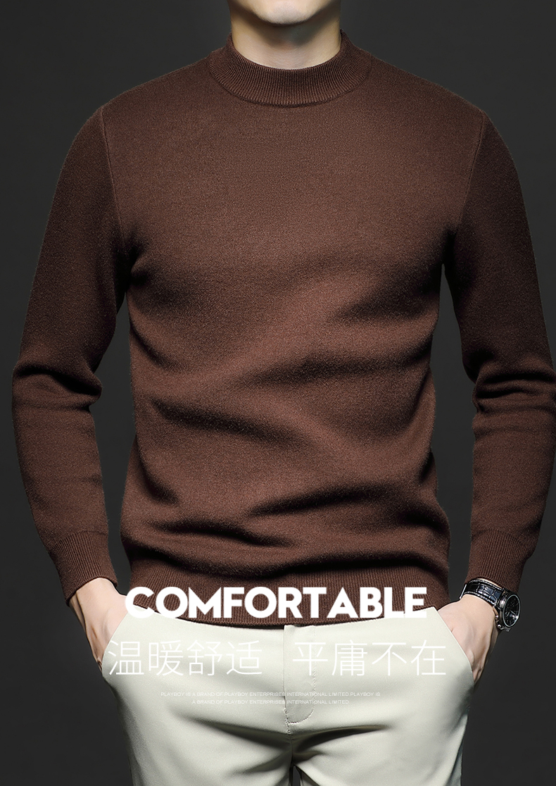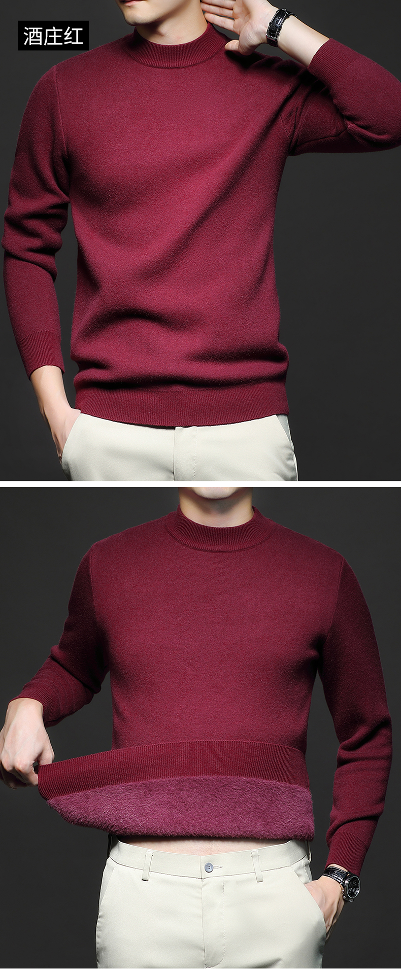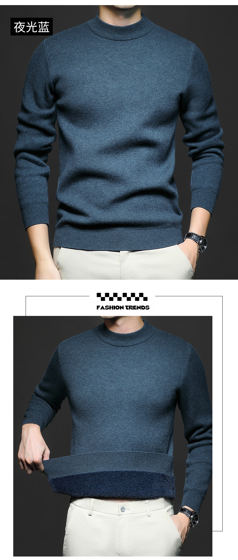 岸纾 羊毛混纺加绒保暖内搭针织衫(多色) 羊绒加厚一体绒百搭款毛衣男防寒