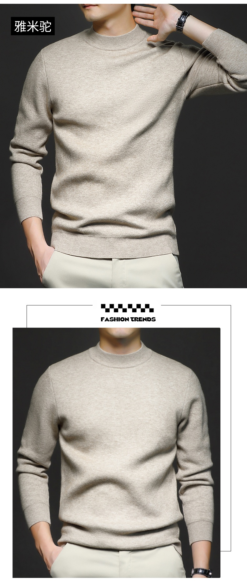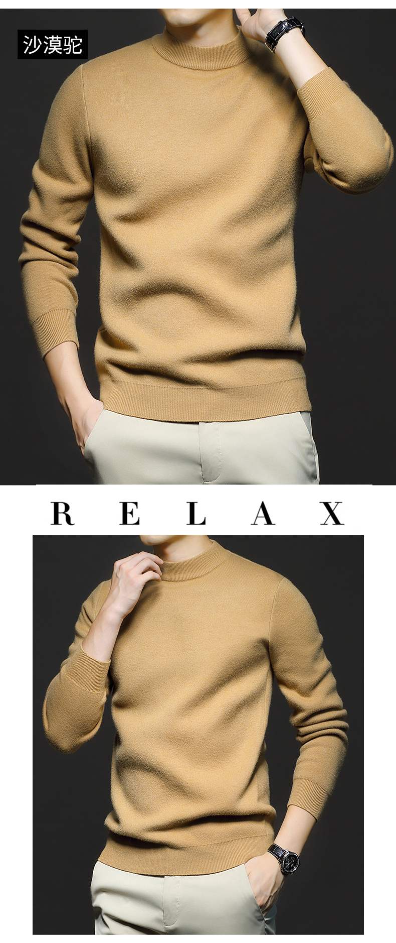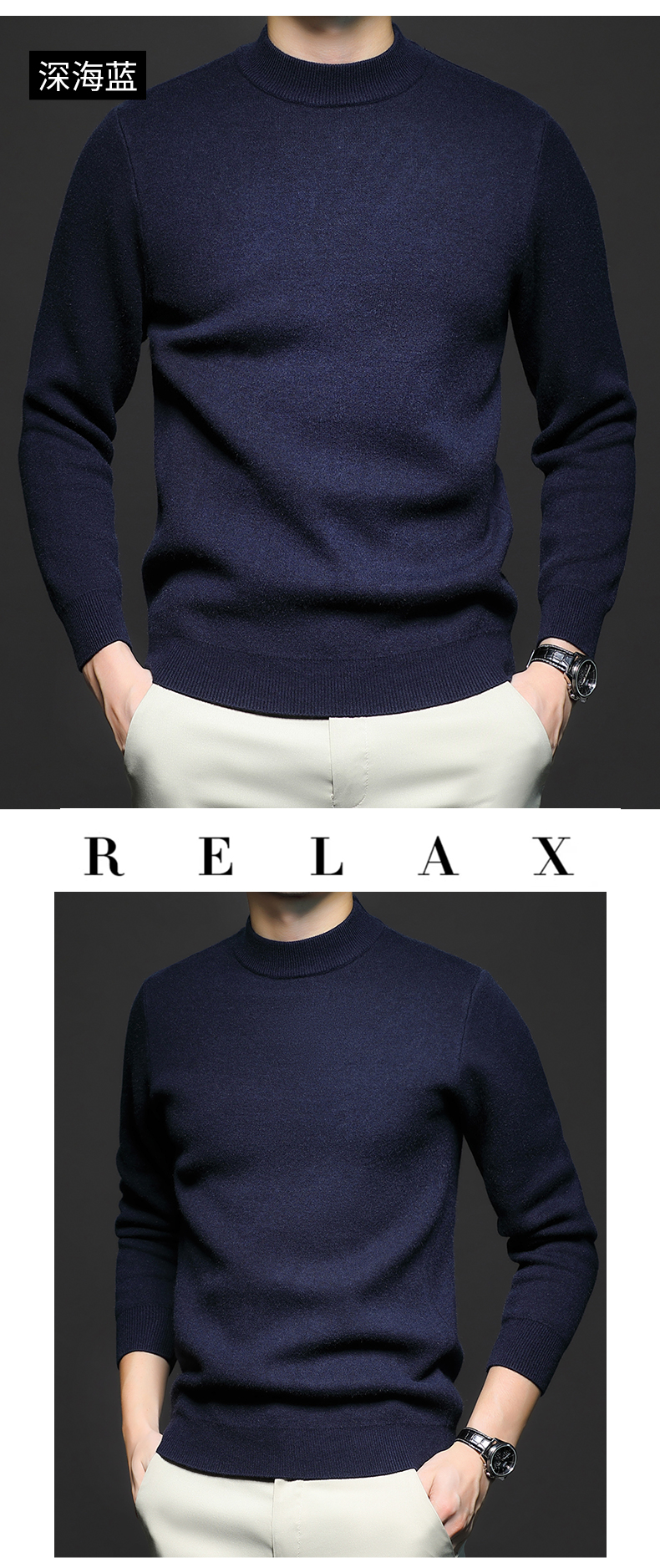 岸纾 羊毛混纺加绒保暖内搭针织衫(多色) 羊绒加厚一体绒百搭款毛衣男防寒