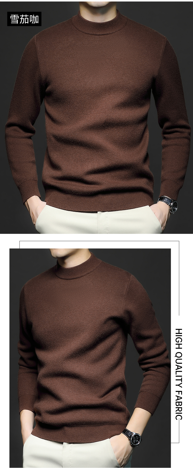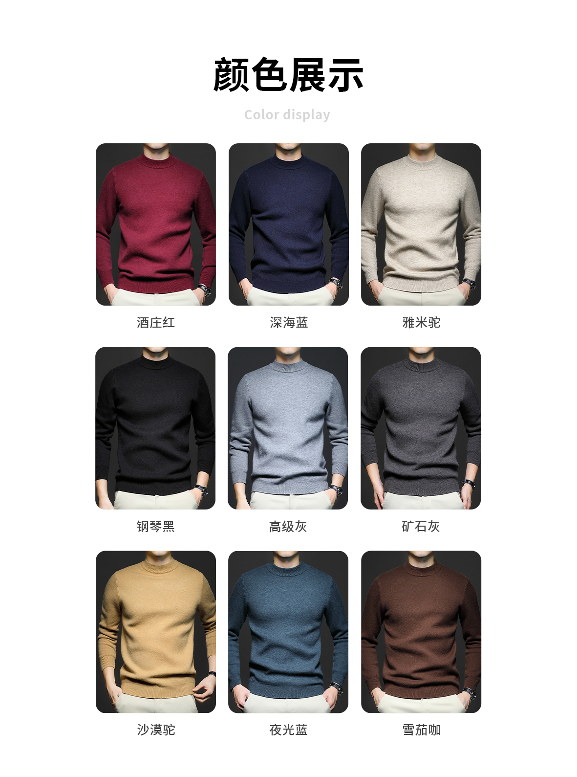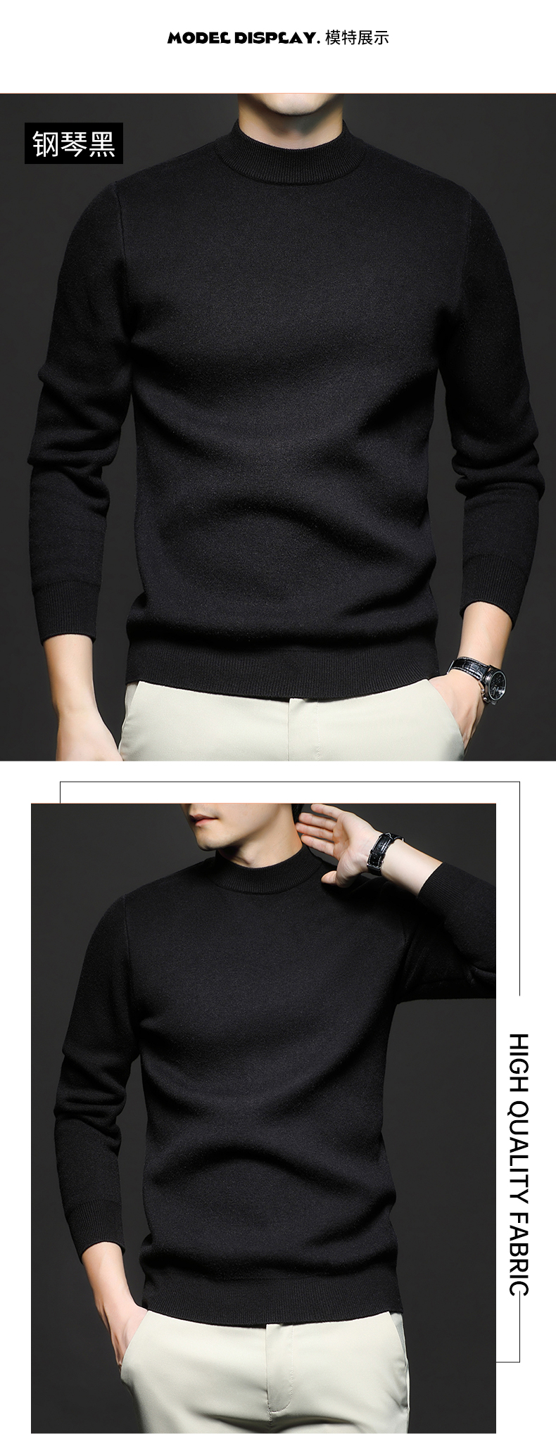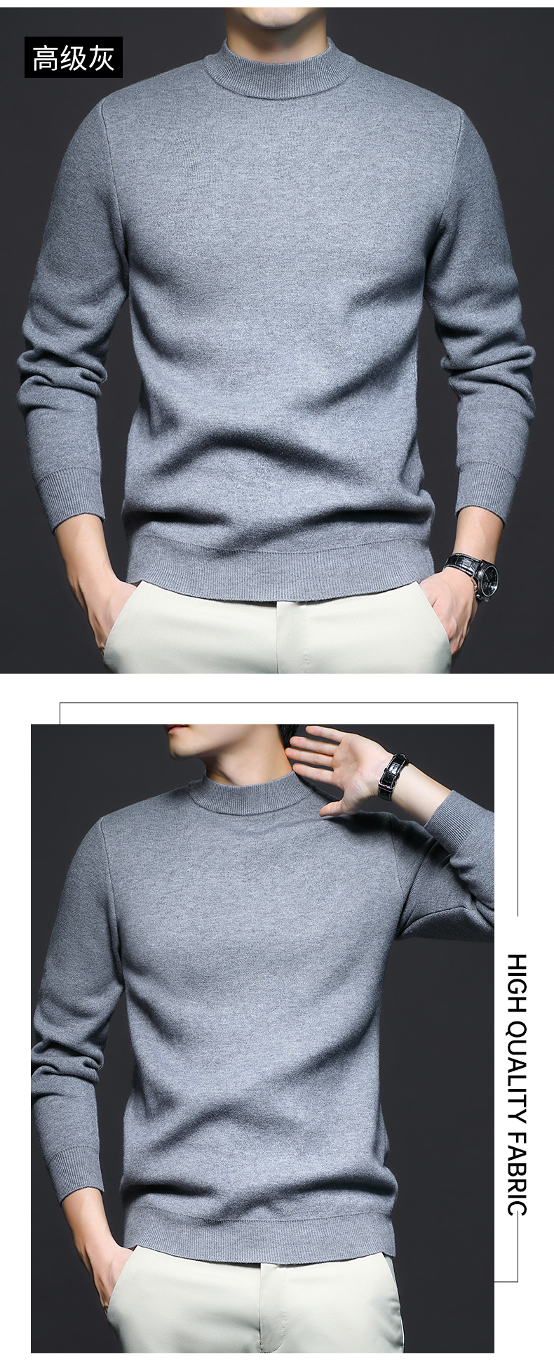 岸纾 羊毛混纺加绒保暖内搭针织衫(多色) 羊绒加厚一体绒百搭款毛衣男防寒