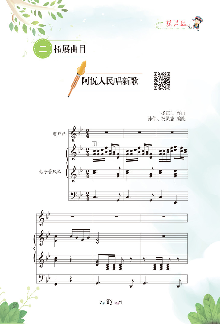 器乐教学是义务教育阶段音乐课程“表现”领域“演奏”中必不可少的重要内容,但在许多地方的音乐课堂中因多种原因没能顺利开展。究其原因,有的缺少灵活有效的教学方法,有的有可供借鉴的器乐教学经验,但又难以达到理想的教学效果,从而导致地方音乐课堂中的器乐教学这一块相对比较薄弱。值得可喜的是,近年由于国家对中小学课堂器乐教学的重视,加上课堂器乐里用到的乐器价格不高,易学易带,同时还能丰富课堂教学,陶冶学生的情操,提升学生对音乐的审美能力,现很多地方的中小学都已对器乐教学逐步开展起来。 本套书为“小学课堂乐器丛书”,具体乐器有口风琴、竖笛、葫芦丝3种,每一种乐器的编写内容,都是编者依据长期实践和调研中的实际而整合,其中的乐曲都是经过改编的配奏,以配合课堂教学,提高课堂效率,培养孩子的乐器演奏能力。 本书为“葫芦丝”,内容由葫芦丝基本演奏的知识简介、课堂曲目及拓展曲目两大部分构成。第一部分以图文并茂的形式,主要介绍了葫芦丝的由来及结构、葫芦丝的基本演奏要求及葫芦丝的保养,语言简洁,易学易懂。第二部分进入课堂曲目及拓展曲目的实际演练,为了增添学生的学习兴趣,提升学习效果,本部分选用的曲子都是朗朗上口的儿歌、经典的中外民歌,其中儿歌有《拉勾勾》《小小的船》《其多列》《大树妈妈》等,经典民歌有《沂蒙山小调》《星星索》《康定情歌》《北京的金山上》等;拓展曲目包括《阿瓦人民唱新歌》《月亮升起来》《月光下的凤尾竹》等。所有曲目都有重难点的分析解读,让学生轻松掌握演奏技巧,完整地呈现乐曲。