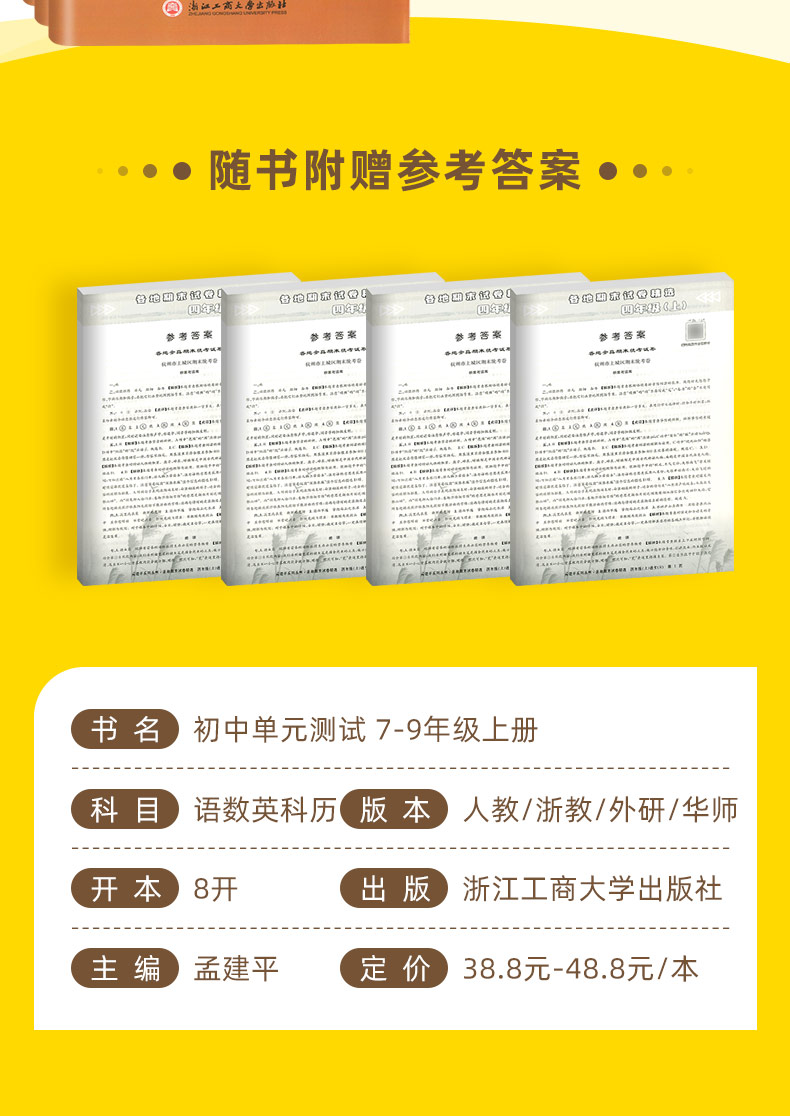 初中孟建平单元测试七八九年级上册语文数学英语科学同步练习册专项训练2024秋 新版