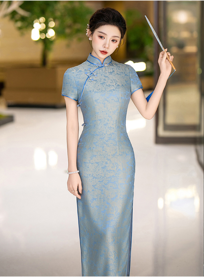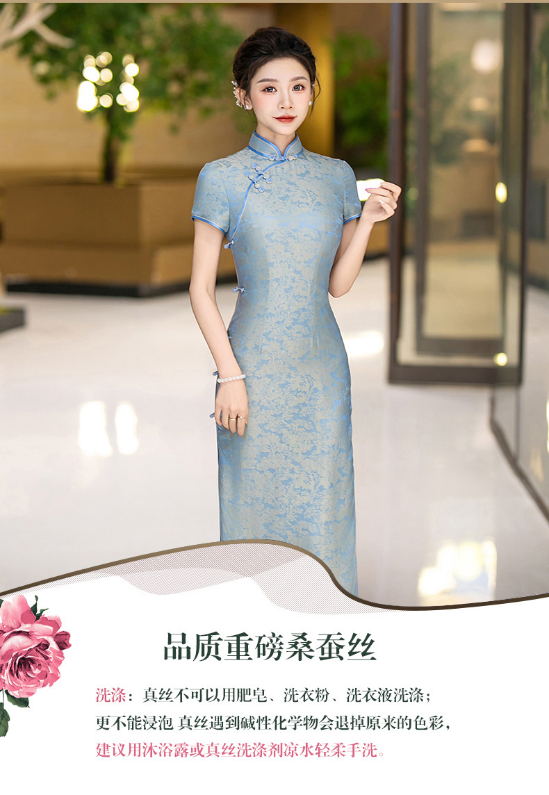 WX-2025春季新款真丝旗袍中式桑蚕丝连衣裙手工缝制送考宴席日常可穿