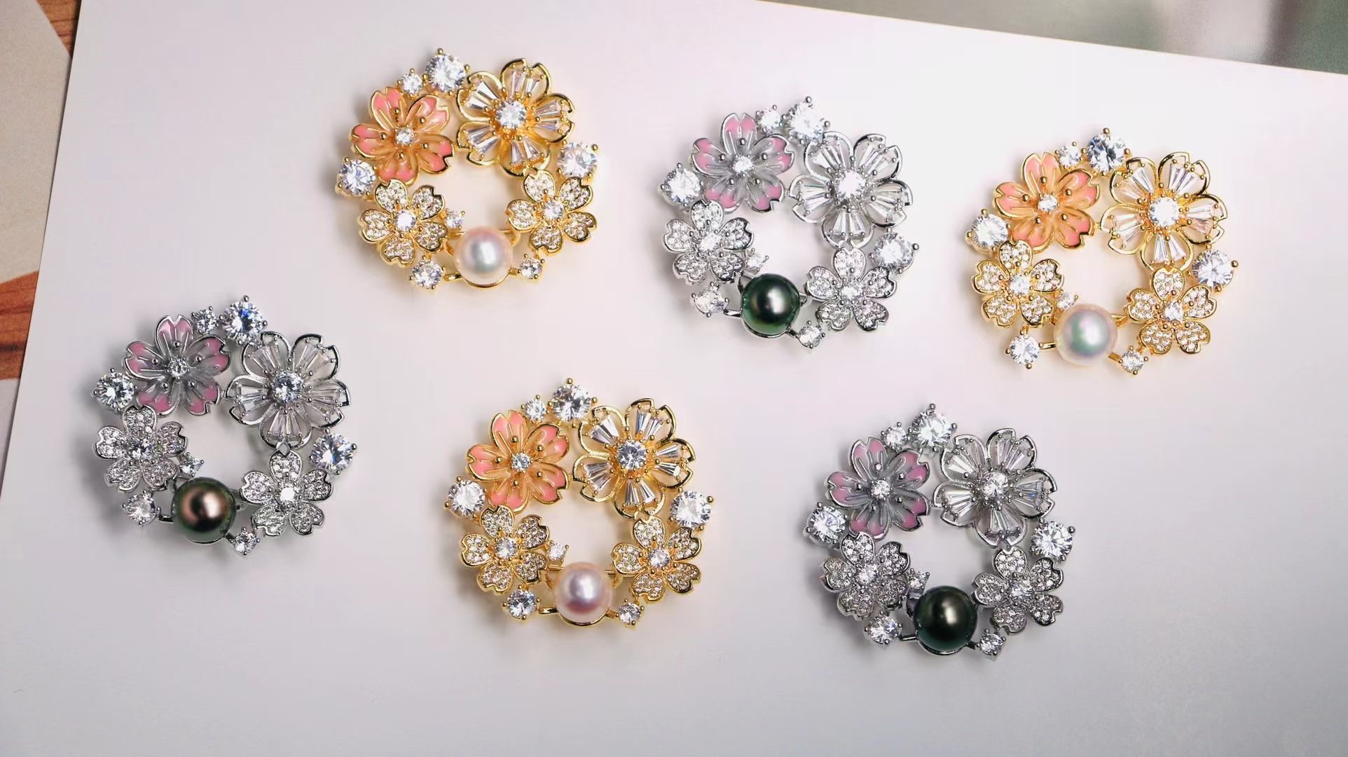 甄珠贝 春日限定 樱花胸针 基本无暇 天女珠光akoya/大溪地正圆珠