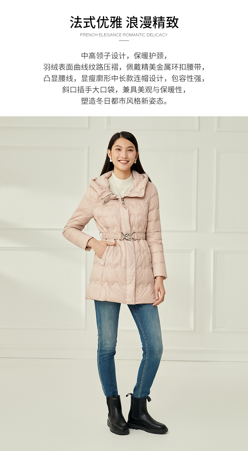 EITIE爱特爱冬季新款白鸭绒连帽女中保暖羽绒服6811510