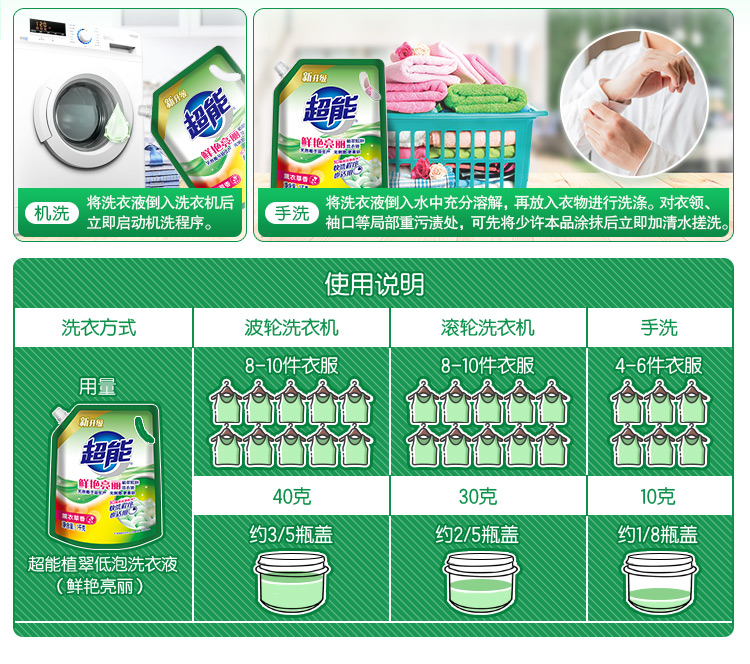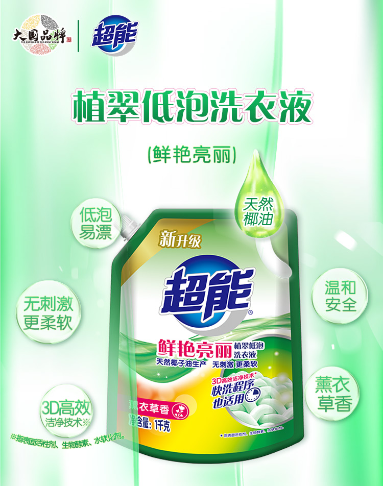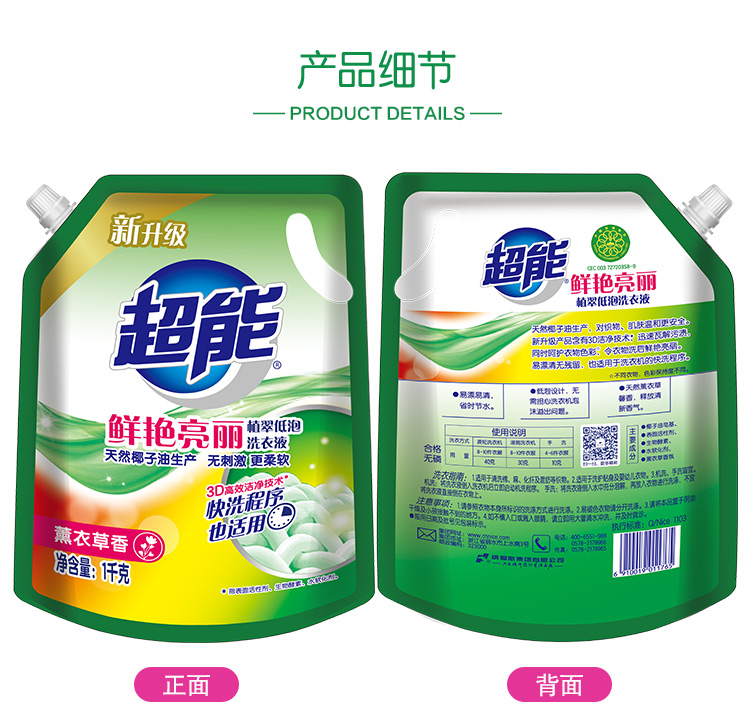 超能洗衣液1kg/袋 薰衣草 香鲜艳亮丽 天然 椰油 生产 洁净 家用实惠 包邮