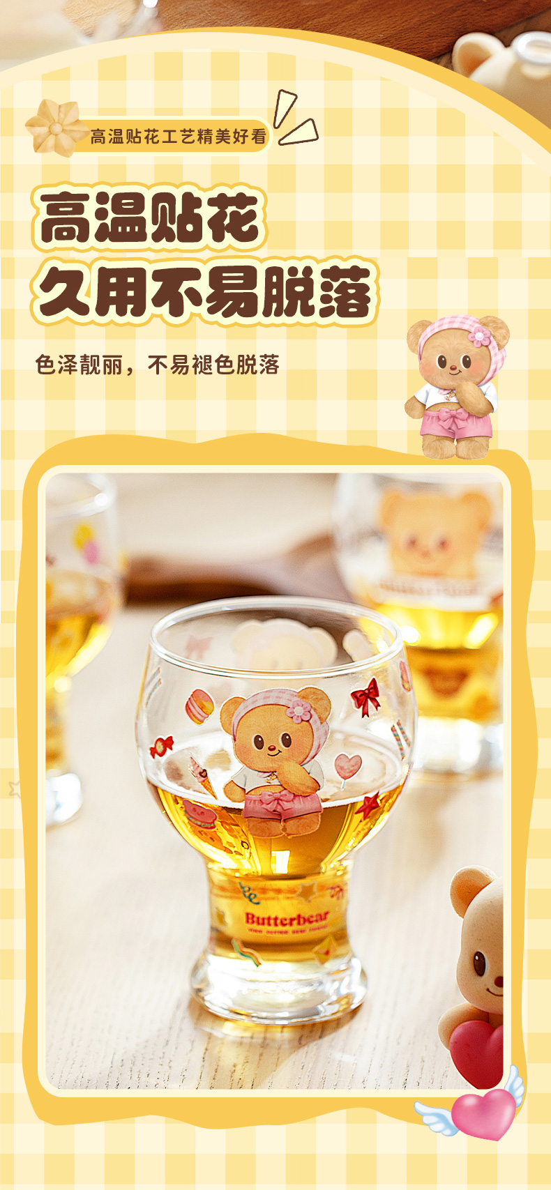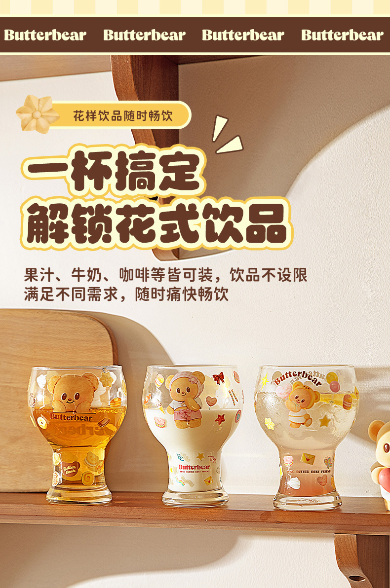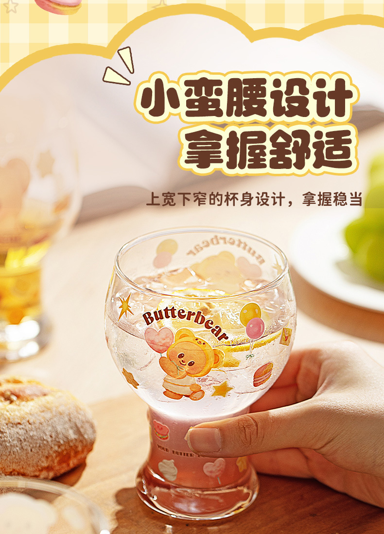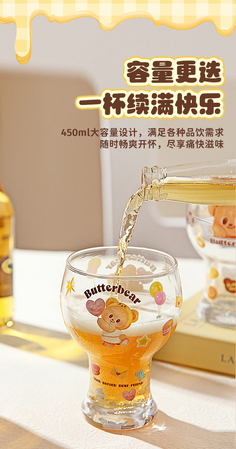 摩登主妇黄油小熊啤酒杯玻璃杯家用喝水杯高颜值杯子果汁杯