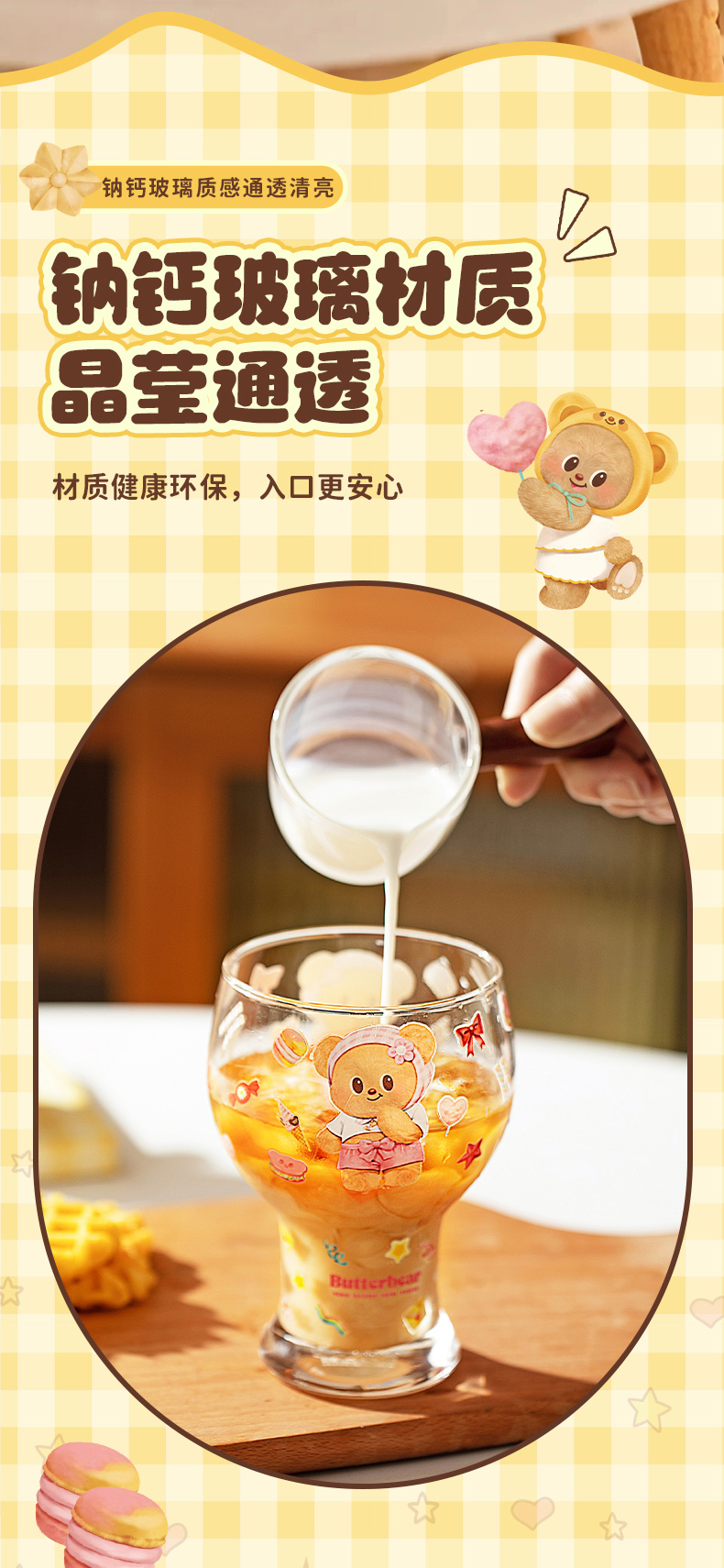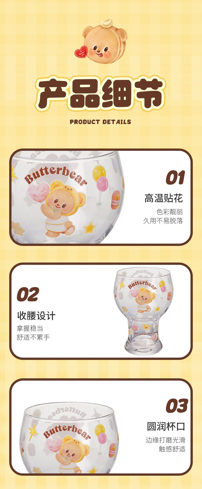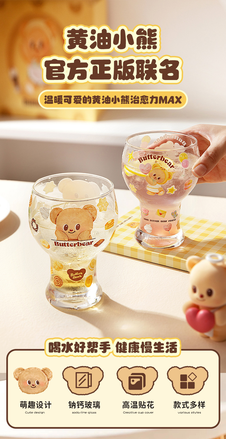 摩登主妇黄油小熊啤酒杯玻璃杯家用喝水杯高颜值杯子果汁杯