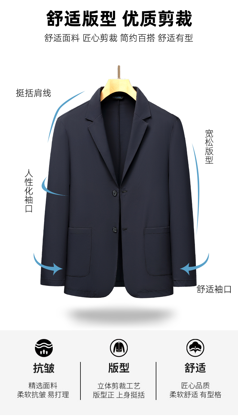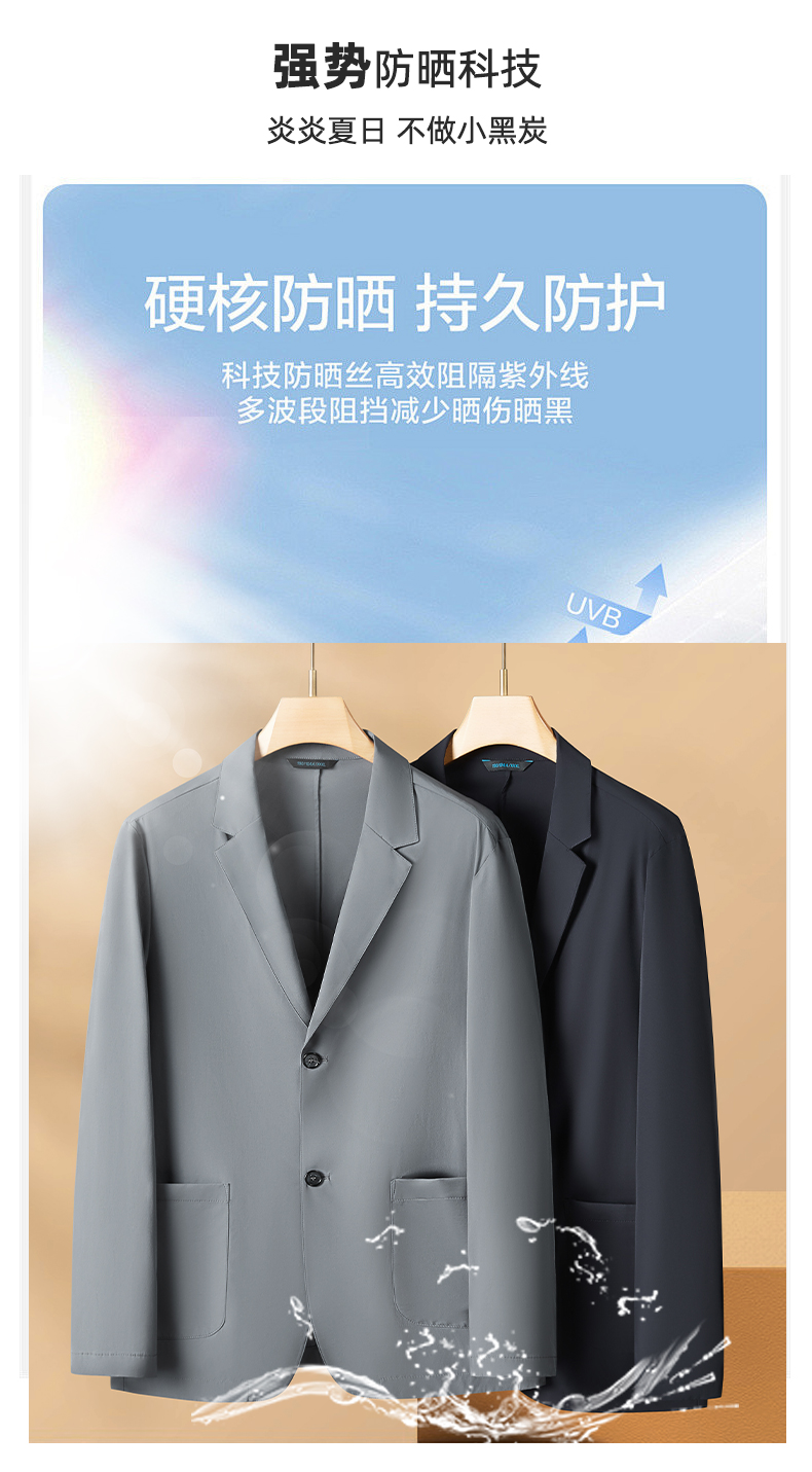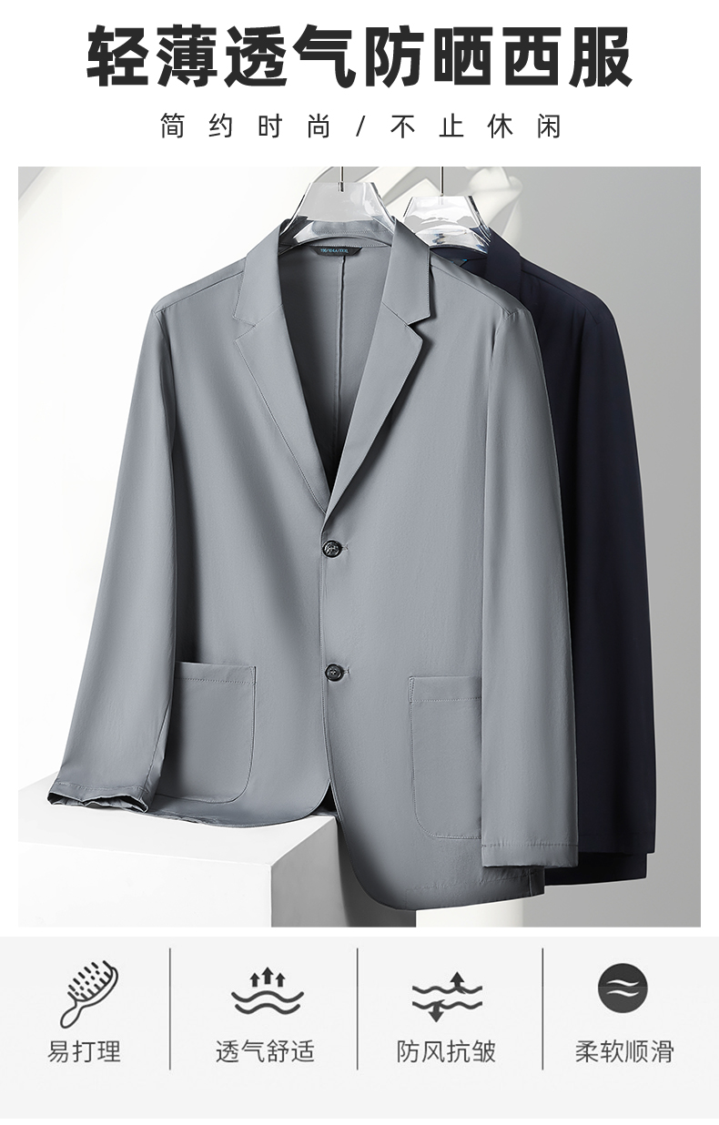 【防晒西服】【DWP】大依优型薄款西服外套休闲商务夹克男宽松加肥加大码上衣夏季