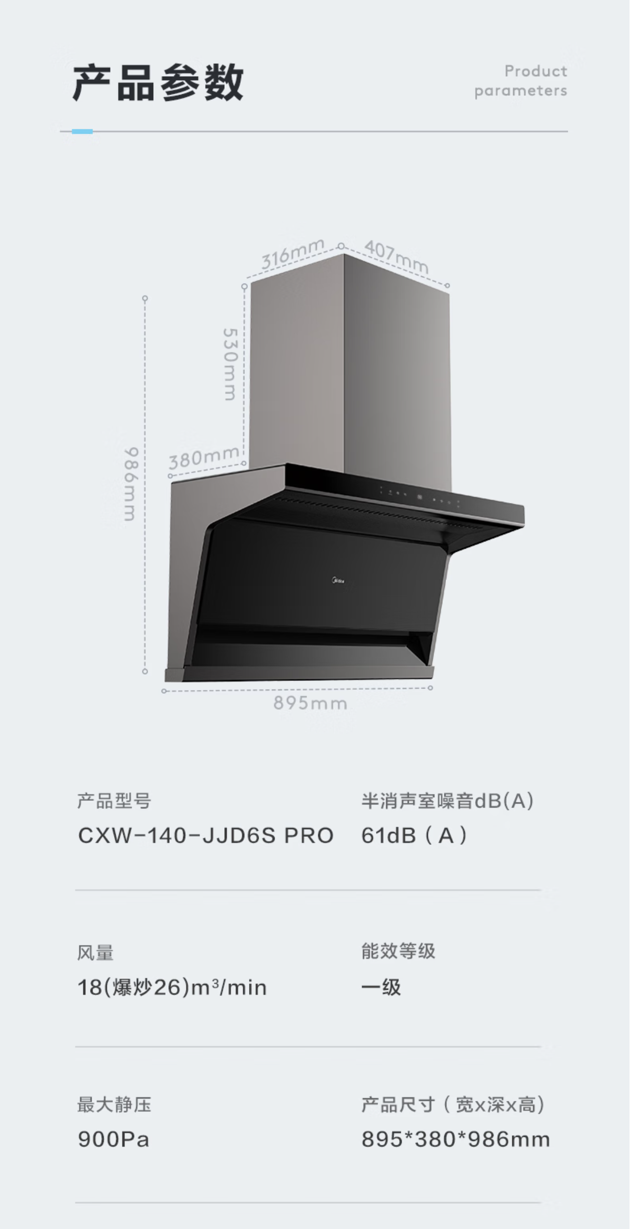 美的(Midea)油烟机 26立方爆炒大吸力 变频巡航 厨后自旋洗 手机控制家用抽油烟机CXW-140-JJD6S Pro*