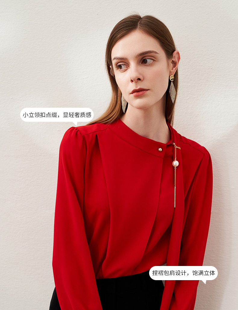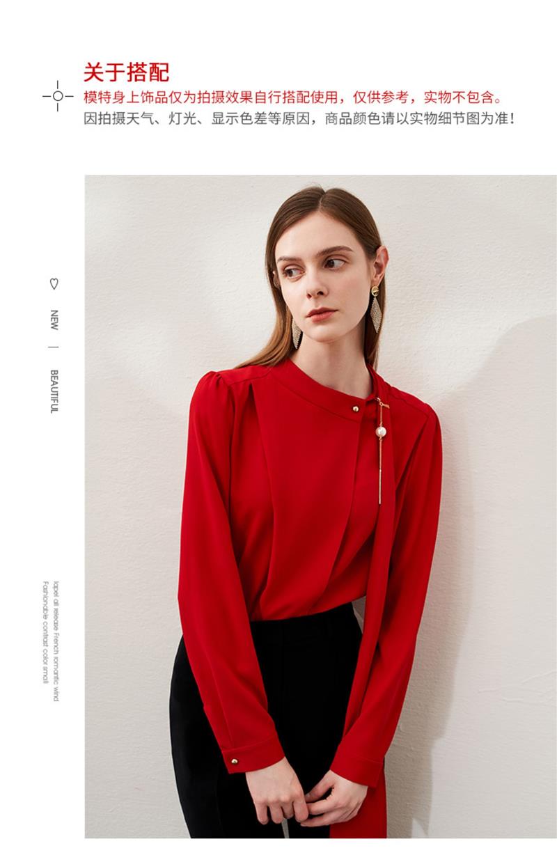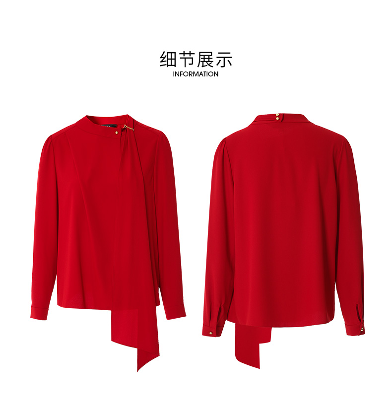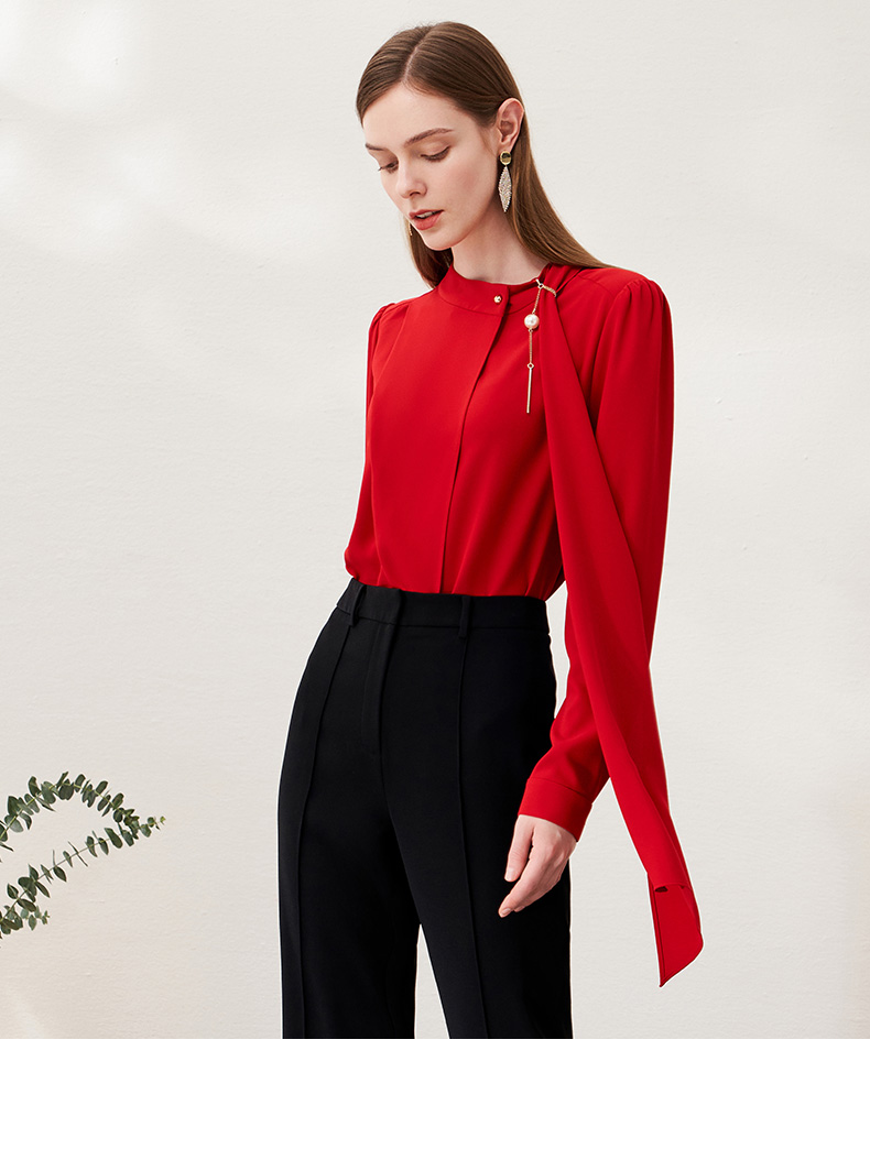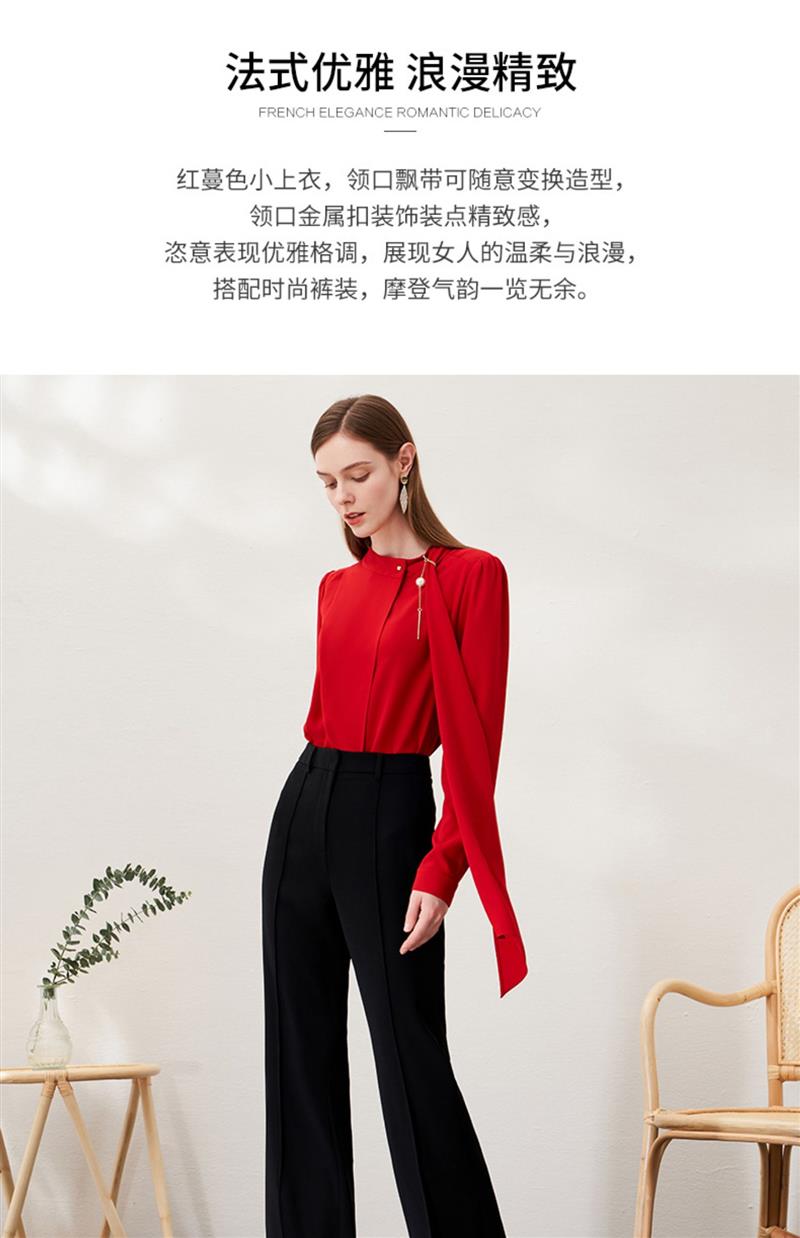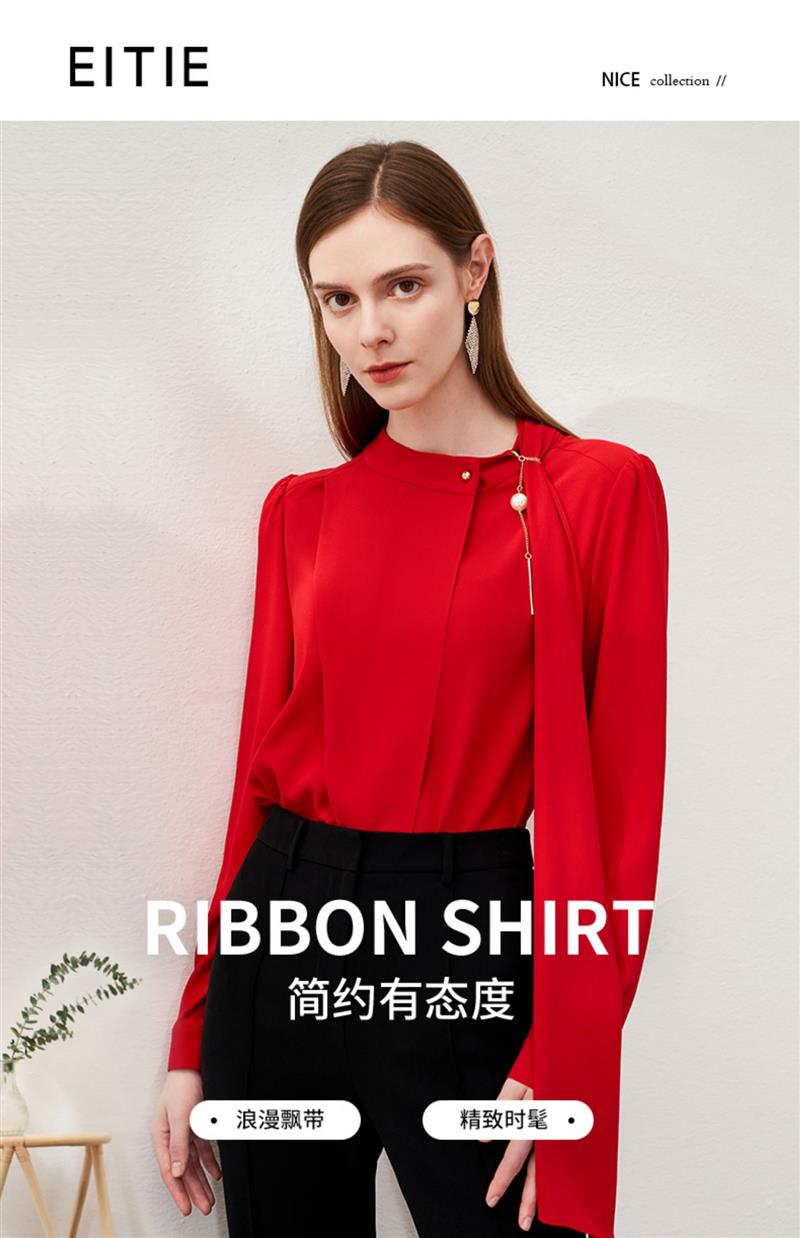 EITIE爱特爱春新款气质通勤复古直筒显瘦优雅飘带红色衫A2313101