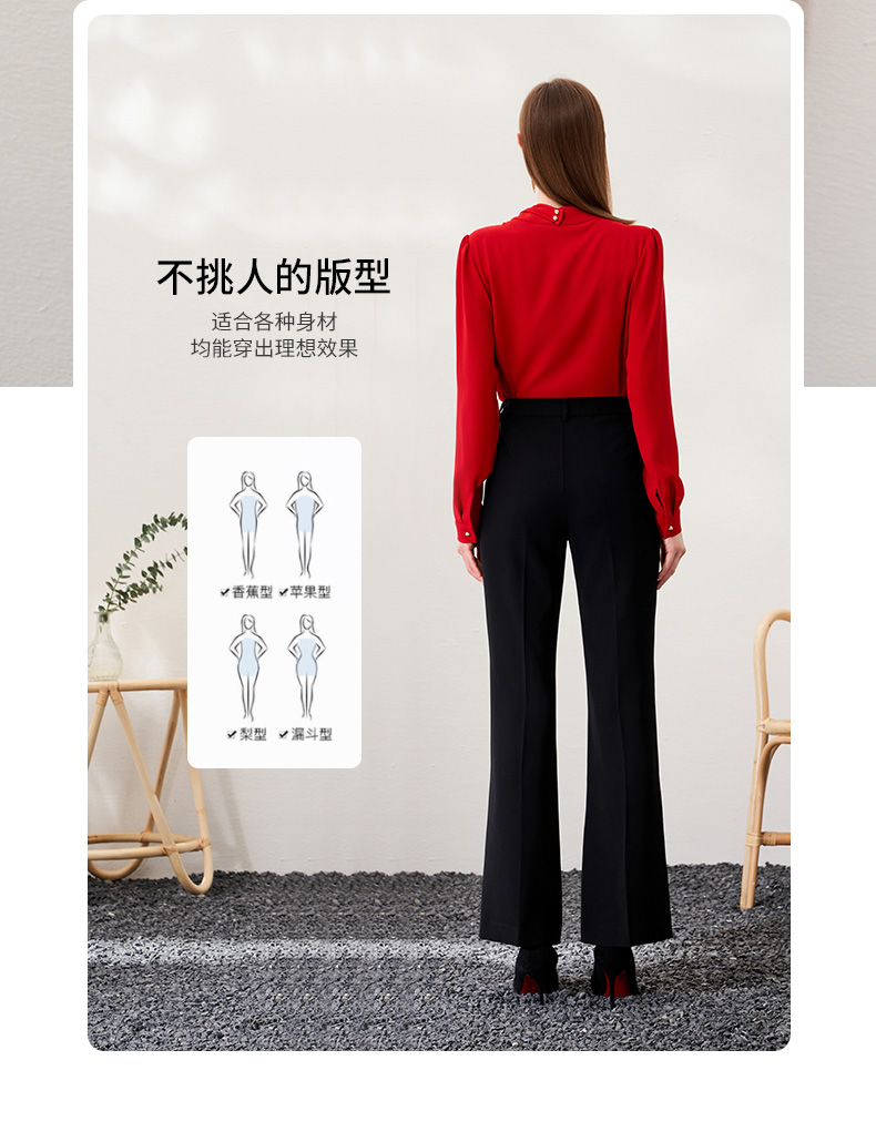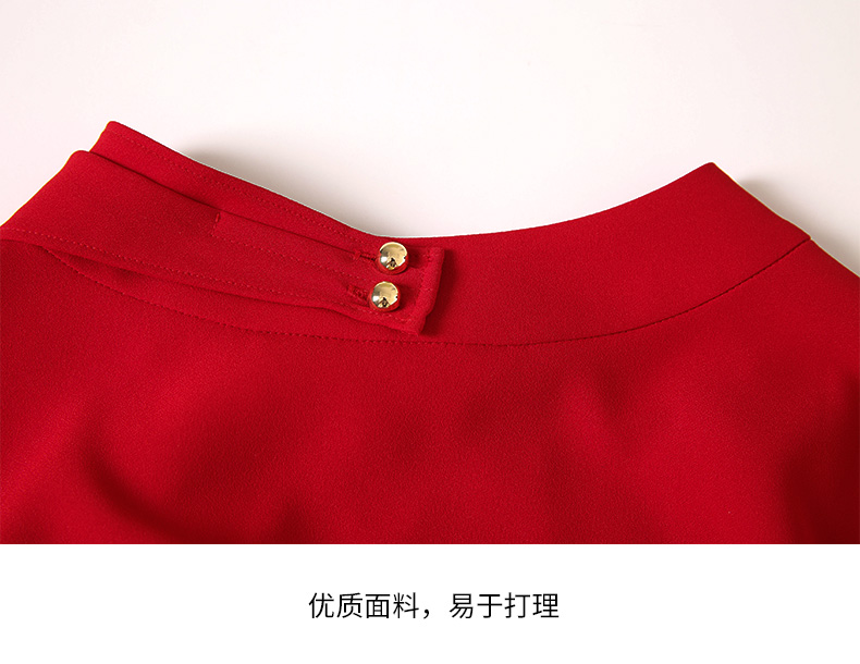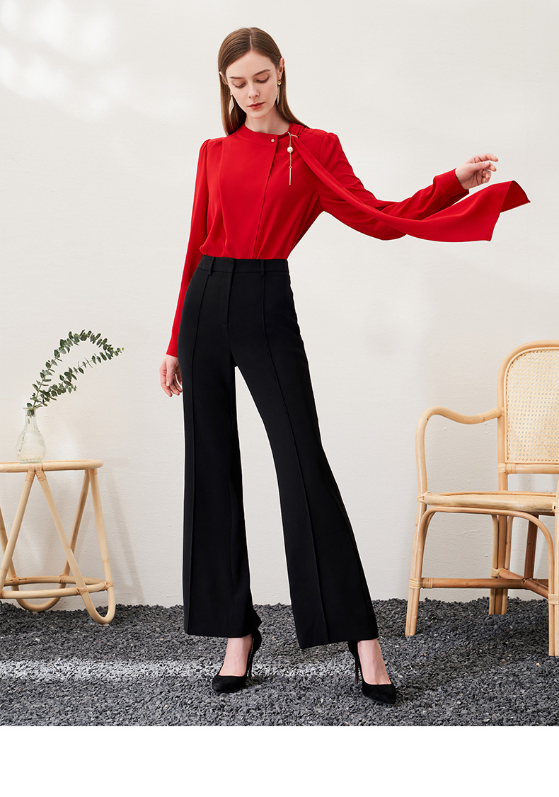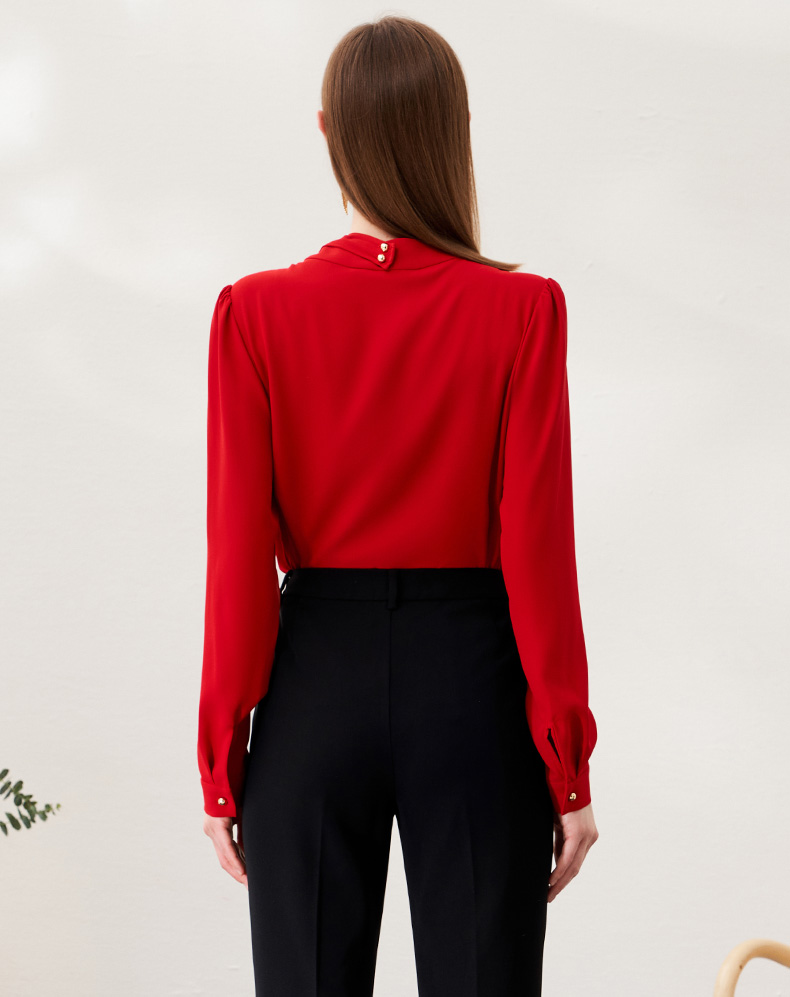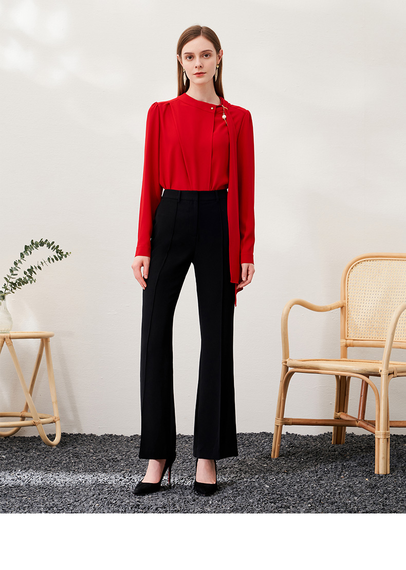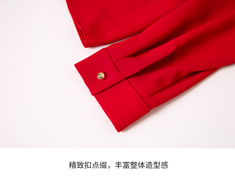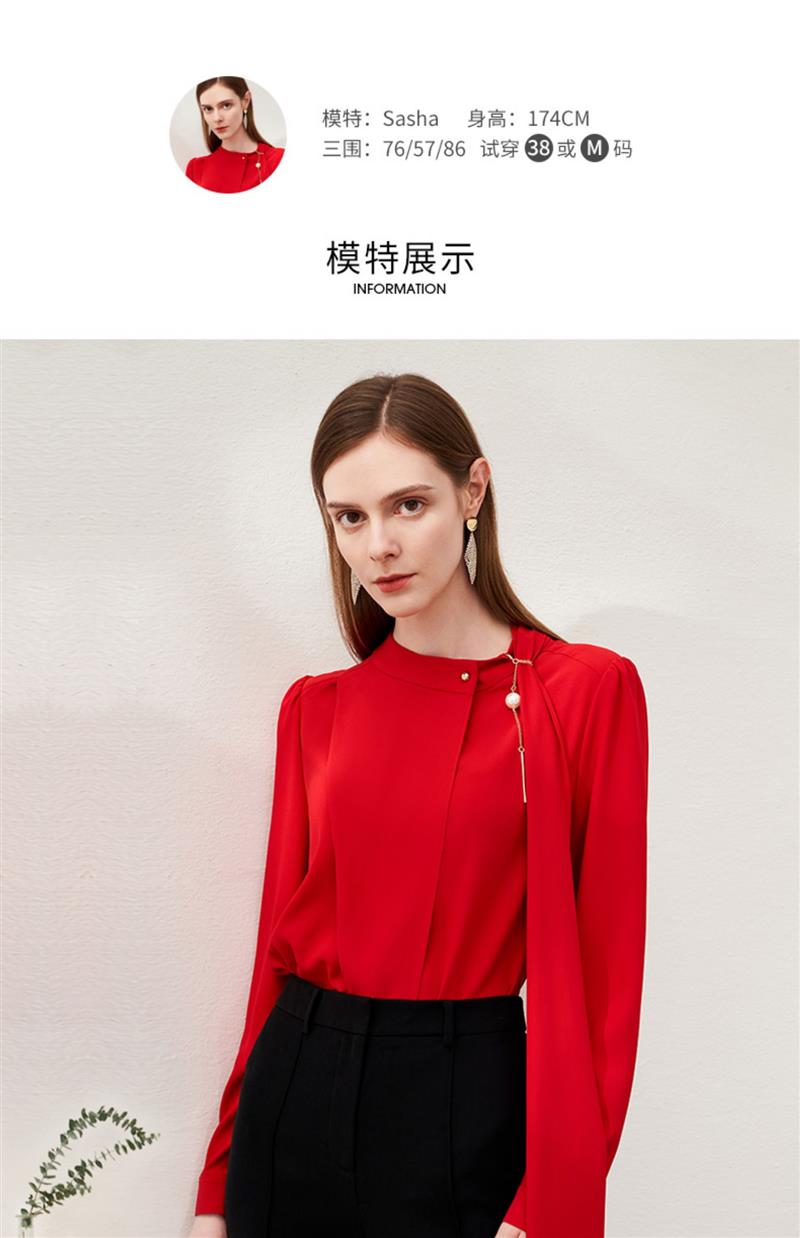 EITIE爱特爱春新款气质通勤复古直筒显瘦优雅飘带红色衫A2313101
