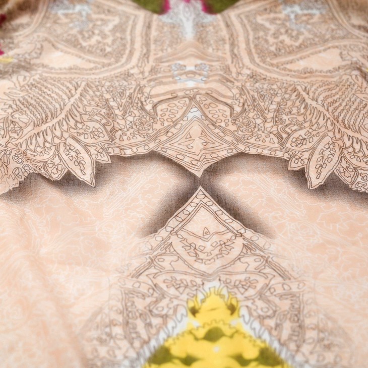 桑蚕丝古典对称花纹方巾(出口韩国余款)