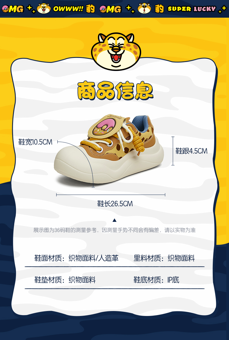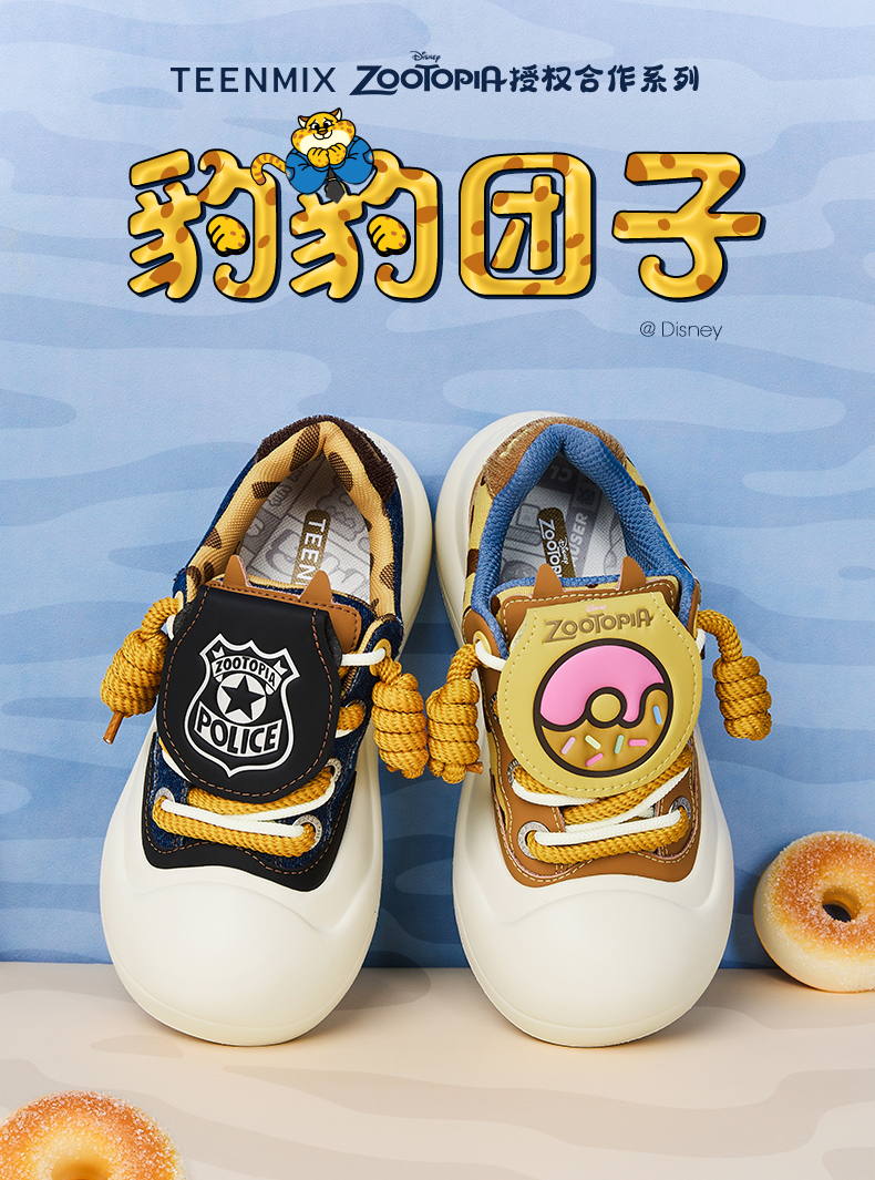 TEENMIX天美意 疯狂动物城联名 豹豹团子丑萌鞋女大头鞋运动板鞋2025春新款