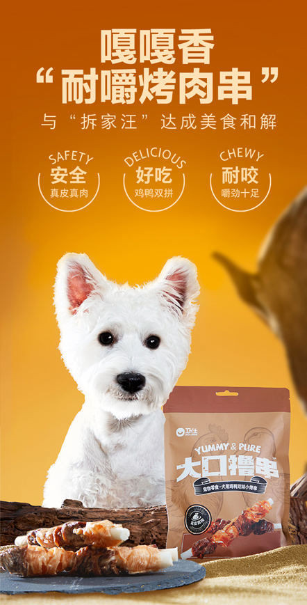 卫仕犬用磨牙棒鸡肉+鸭肉+牛皮芯大口撸串零食120g
