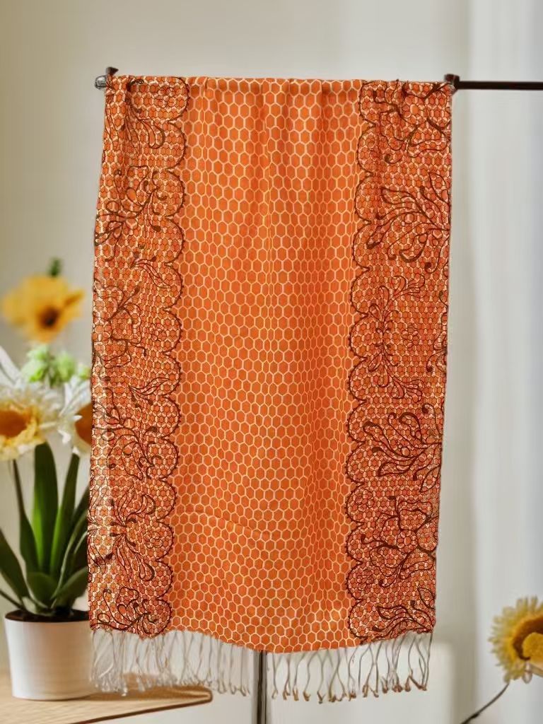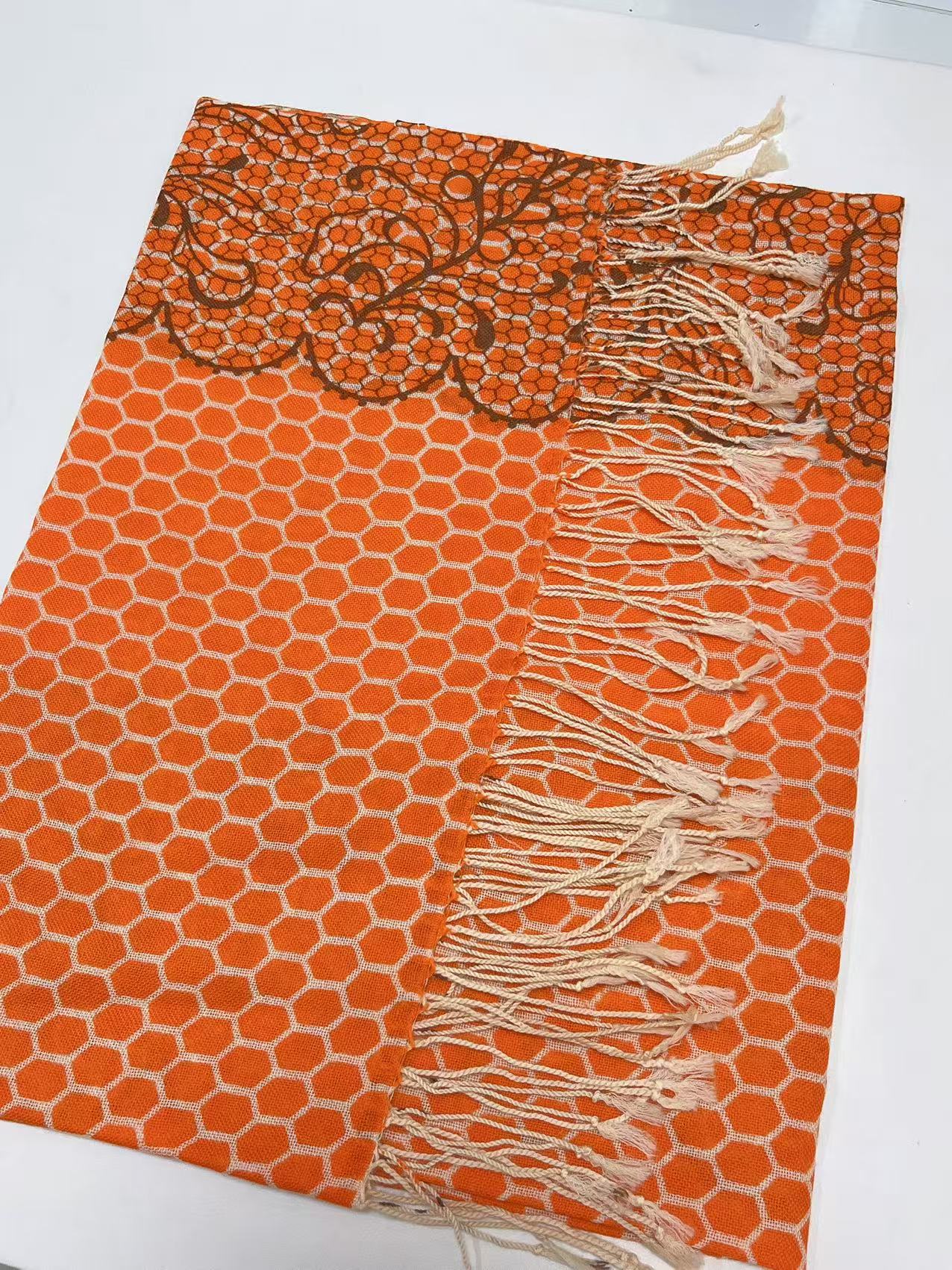 {特卖}100%羊毛围巾花型二十一桔色五边形~喜出