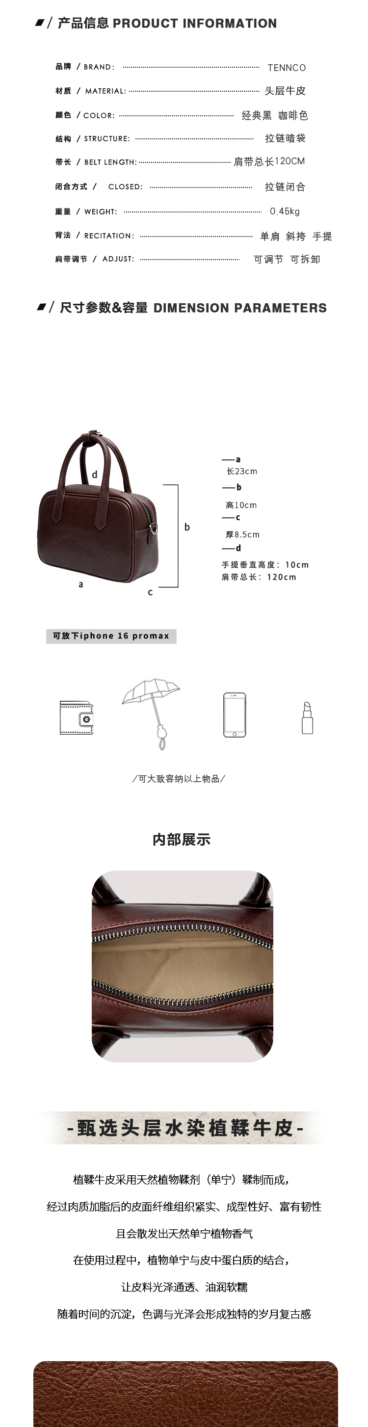 TENNCO 原创复古植鞣皮小方包单肩斜挎手提包保龄球包【预售10天】
