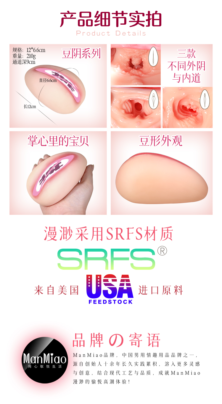 【产品名称】漫渺豆阴羊女【型号】MF44-1【产品材质】SRFS【规格尺寸】12*6.6cm【颜色】肉色【净重】210g【主要功能】男士解压(带通道)或收藏【保质期】24个月【生产日期】见包装袋【品牌名称】ManMiao漫渺【品牌商】上海漫渺国际贸易有限公司【执行标准】Q/MMBJ 002-2017【质检标准】GB/T 22048-2008 GB6675.4-2014 GB 4706.1-2005合格【气味】无香型【保存条件】置阴凉干燥处保存【使用方法】见视频【注意事项】1、本产品为成人用品,严禁未成年人使用 2、产品忌高温且易燃,应远离火源与高温 3、考虑个人卫生问题,使用前后需清洗。