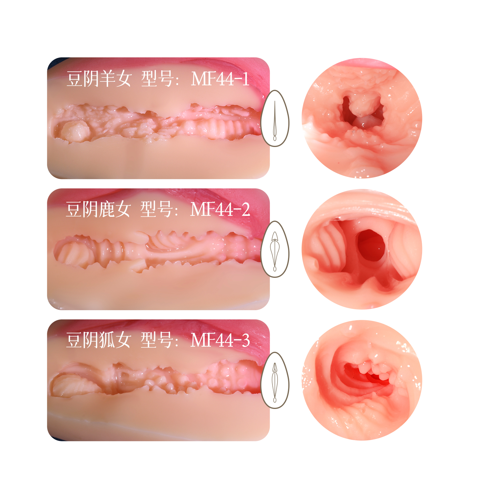 【产品名称】漫渺豆阴狐女【型号】MF44-3【产品材质】SRFS【规格尺寸】12*6.6cm【颜色】肉色【净重】210g【主要功能】男士解压(带通道)或收藏【保质期】24个月【生产日期】见包装袋【品牌名称】ManMiao漫渺【品牌商】上海漫渺国际贸易有限公司【执行标准】Q/MMBJ 002-2017【质检标准】GB/T 22048-2008 GB6675.4-2014 GB 4706.1-2005合格【气味】无香型【保存条件】置阴凉干燥处保存【使用方法】见视频【注意事项】1、本产品为成人用品,严禁未成年人使用 2、产品忌高温且易燃,应远离火源与高温 3、考虑个人卫生问题,使用前后需清洗。