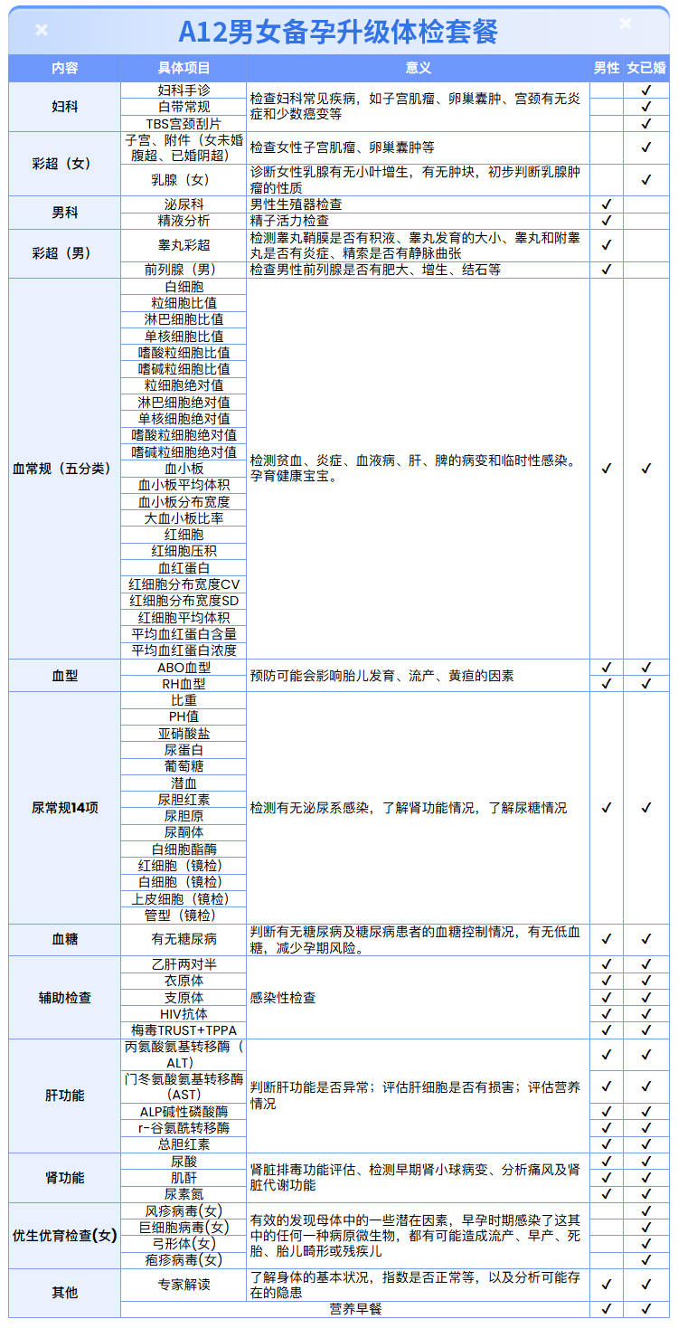 【中青年|备孕体检】含两彩超+感染性检测五项+微生物病毒四项+肝肾功能 A12