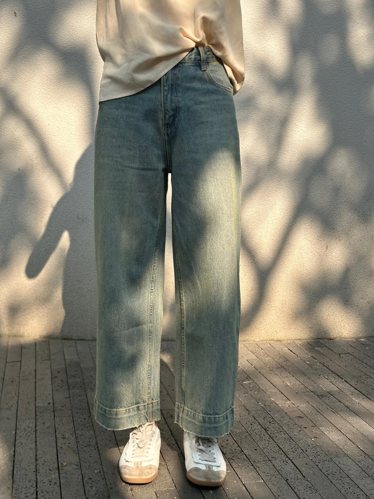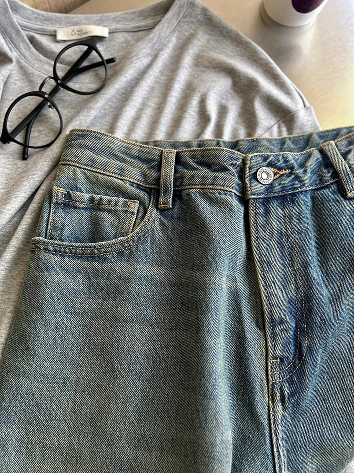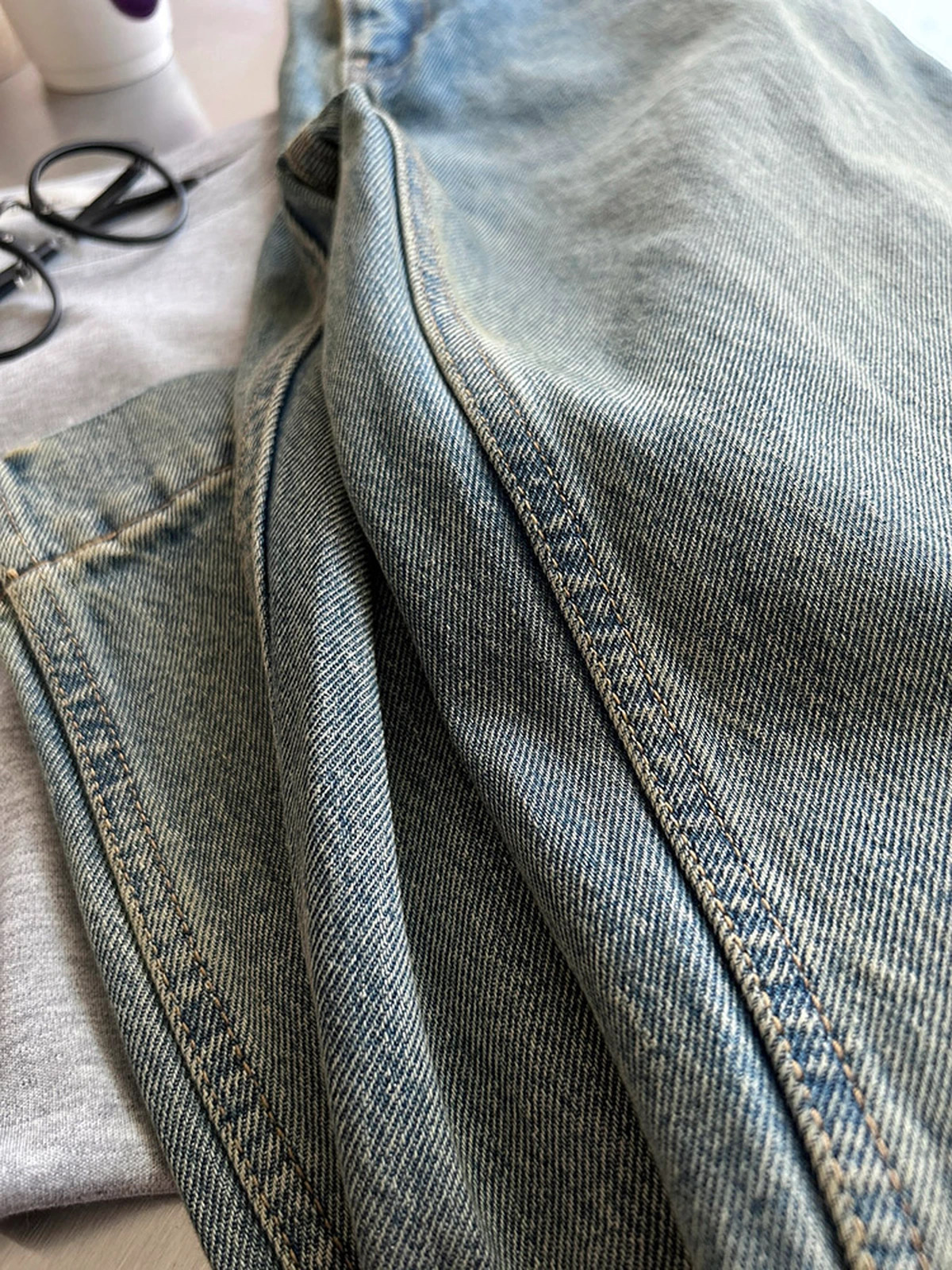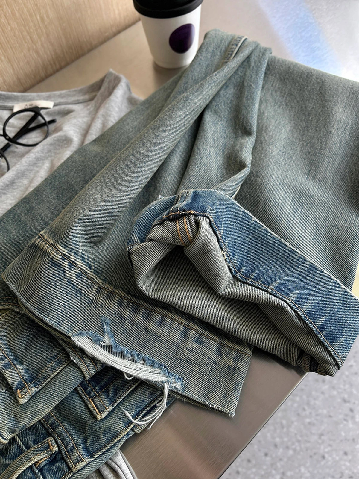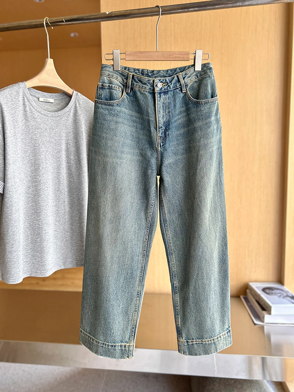 顺丰包邮洛诗琳34712洛诗琳纯棉做旧感九分牛仔裤女016