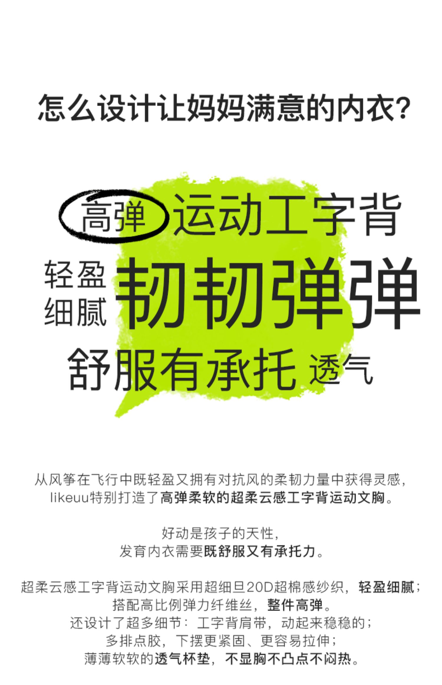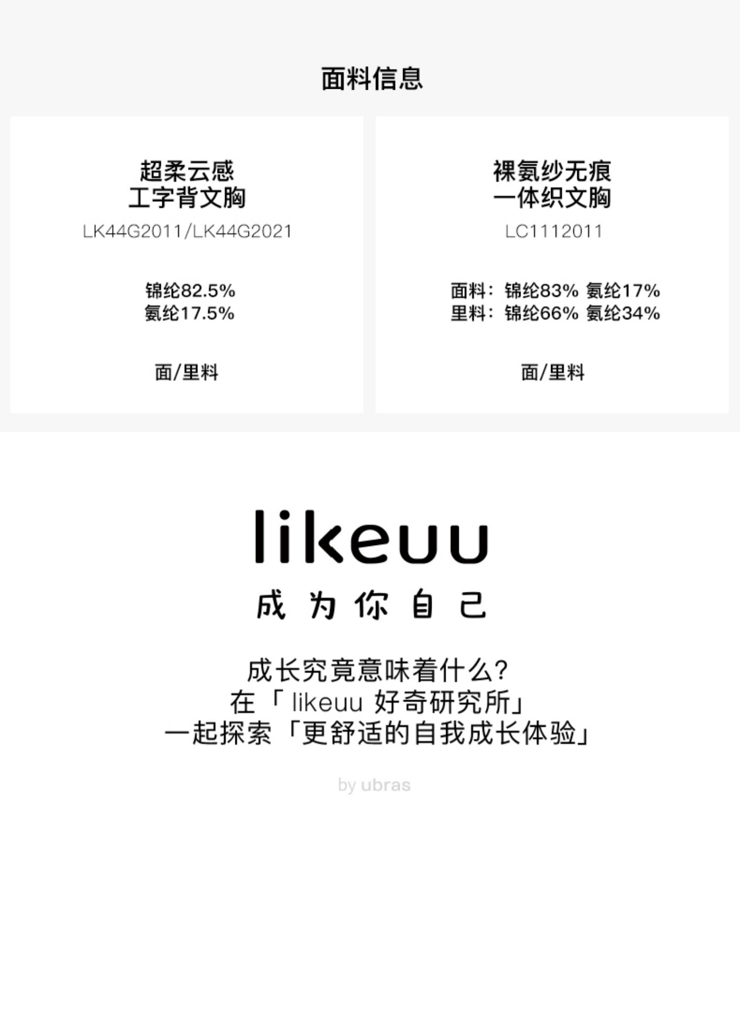 - likeuu是专注于为6~15岁的青少年创造柔软、无束缚的成长体验,以好奇心为灵感的成长发育期贴身衣物品牌。likeuu的产品覆盖内衣、内裤、保暖衣、家居服、运动等品类。