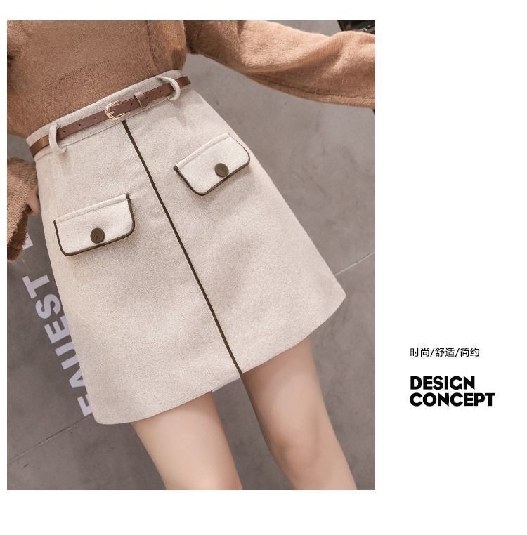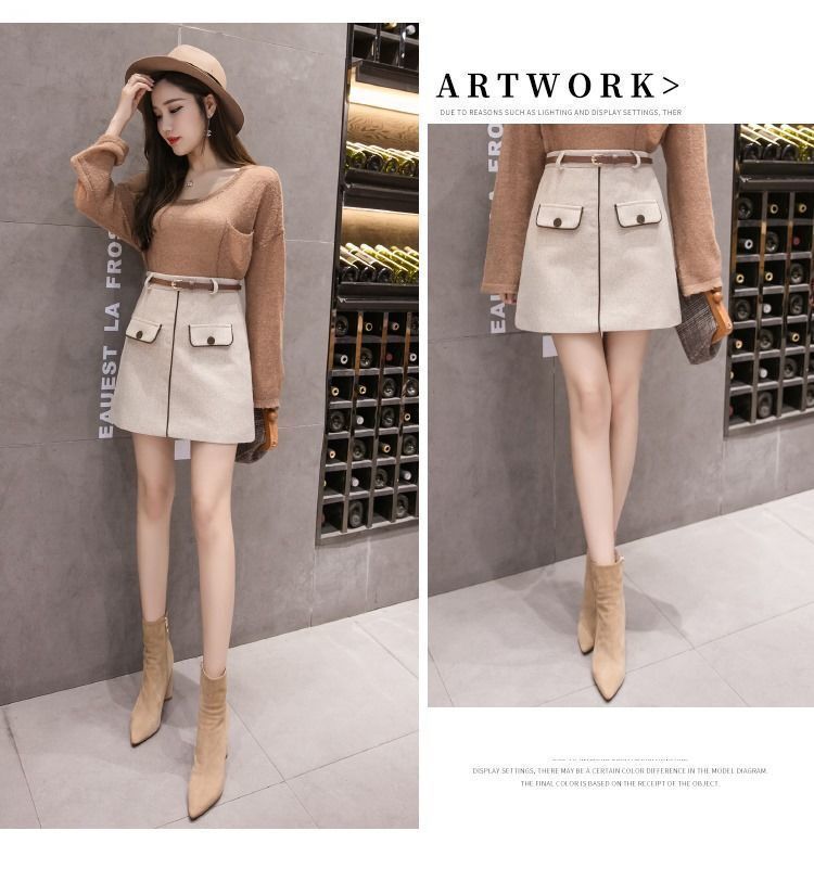 【送腰带】半身裙女秋冬2021新款毛呢ins超火的裙子包臀短裙A字裙