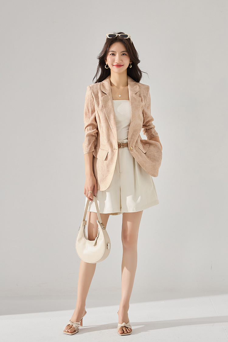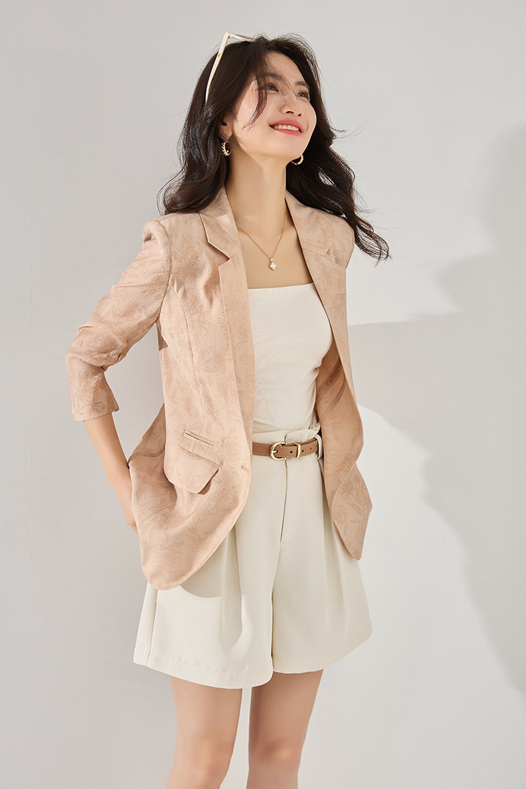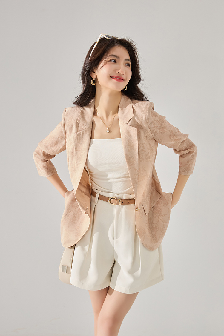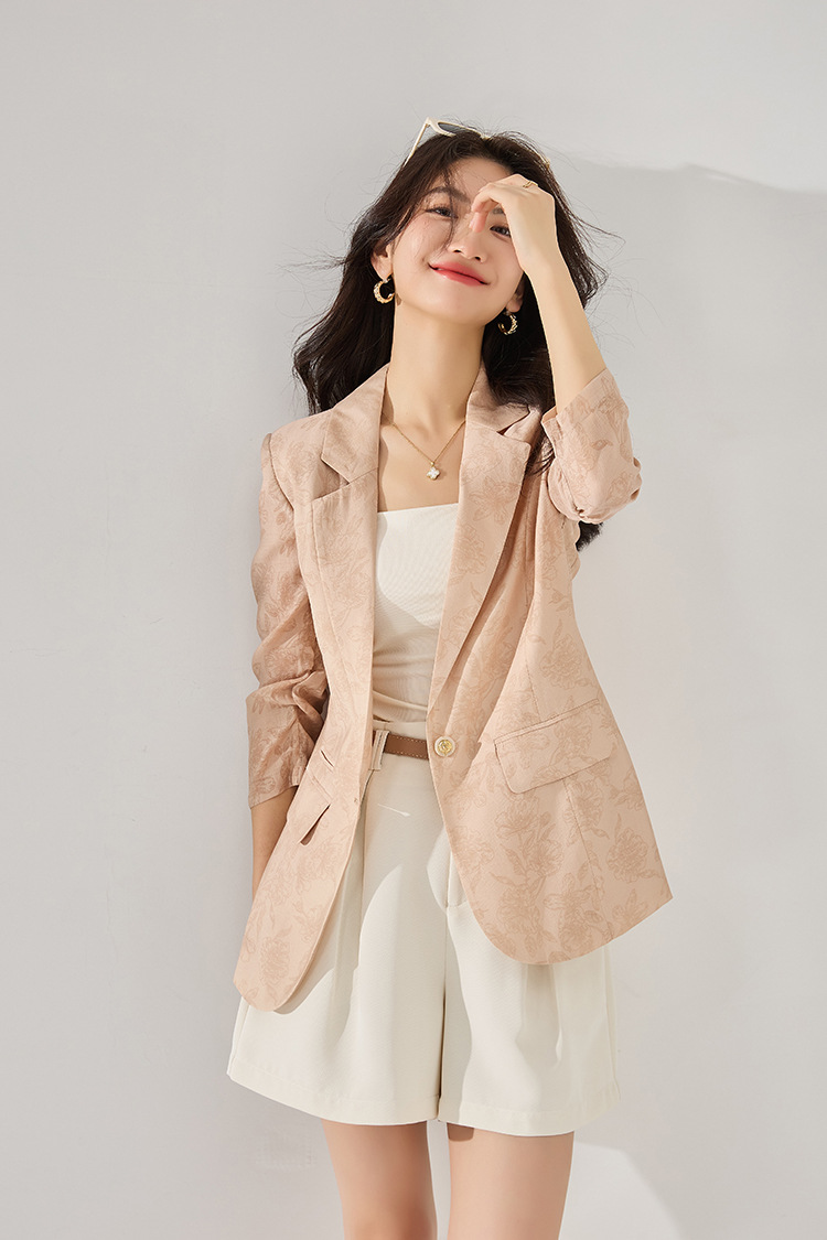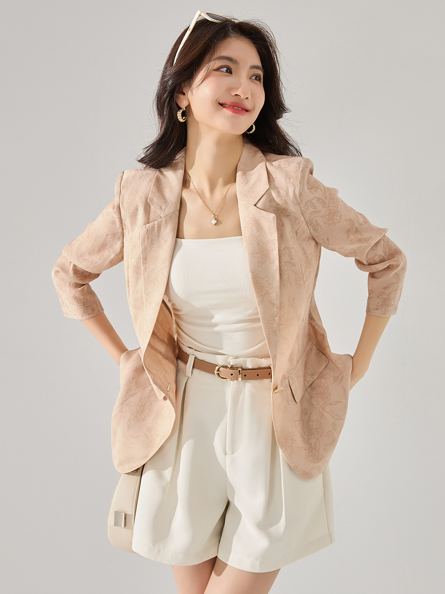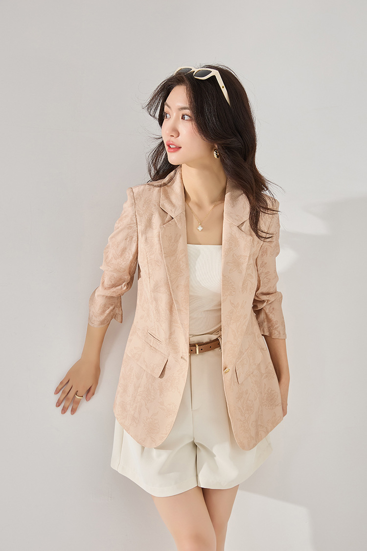 【高货sh】全新升级【铂金会员257/天猫339/差价82】(12838) 洛诗琳翻领印花小西装2025春季新款修身七分袖西装外套女