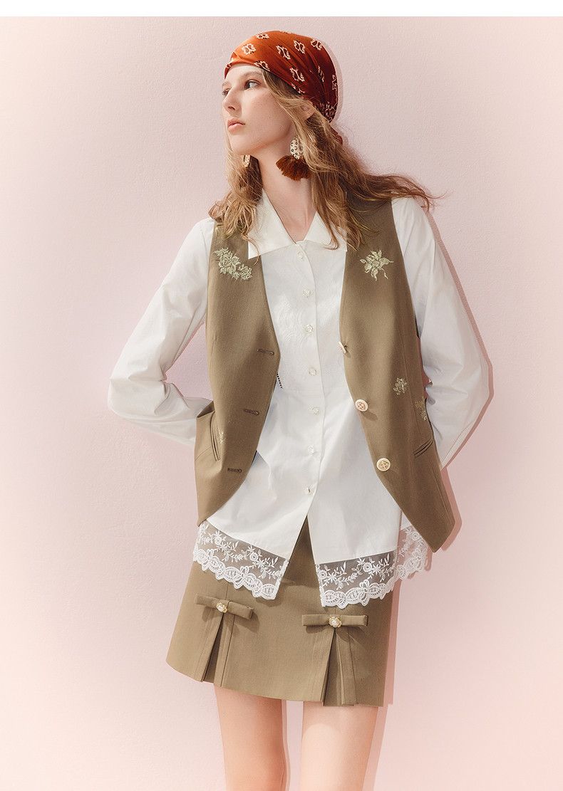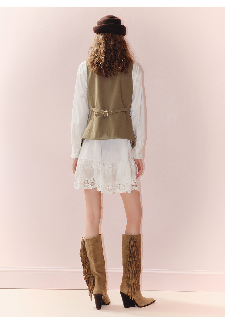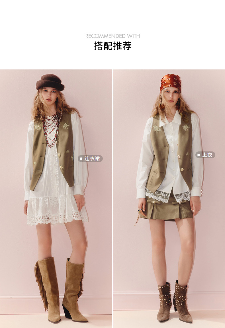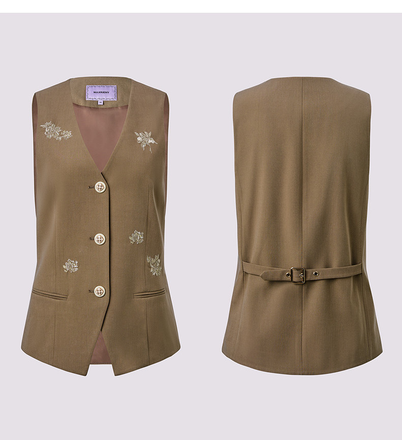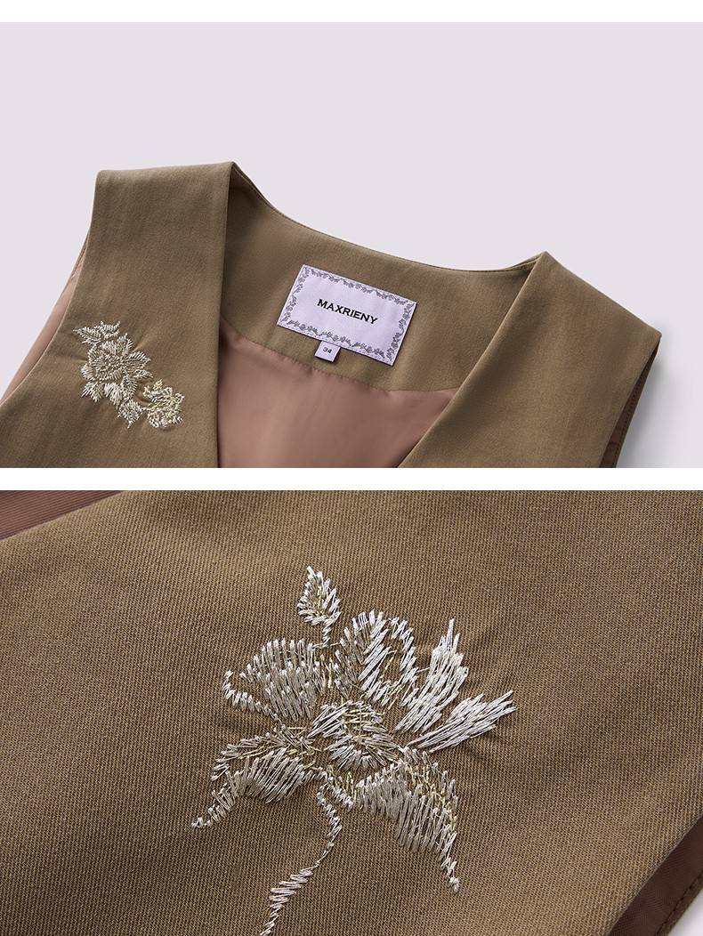 MAXRIENY老钱度假风V领马夹修身背心女2025秋款短款合身马甲外搭(货号:MS86VE251)