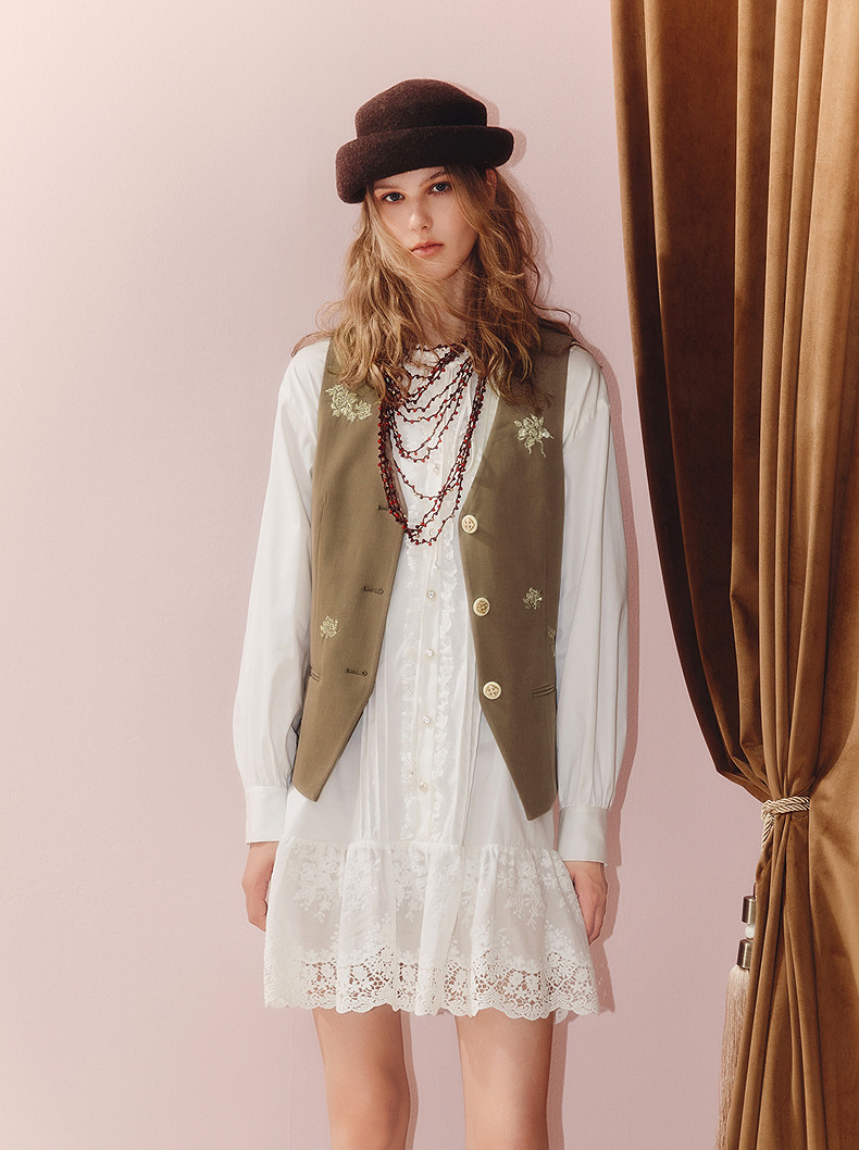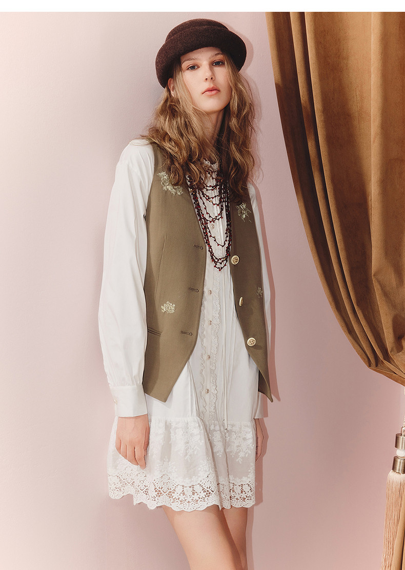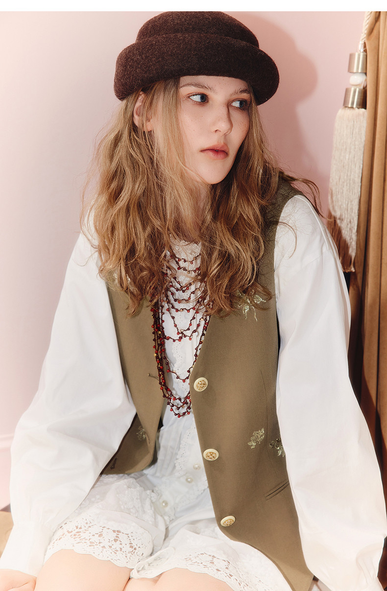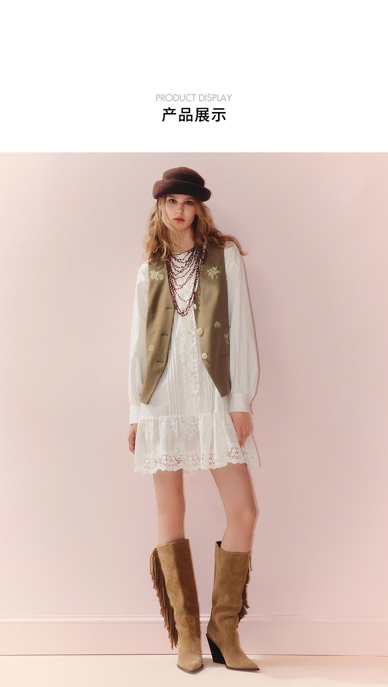 MAXRIENY老钱度假风V领马夹修身背心女2025秋款短款合身马甲外搭(货号:MS86VE251)